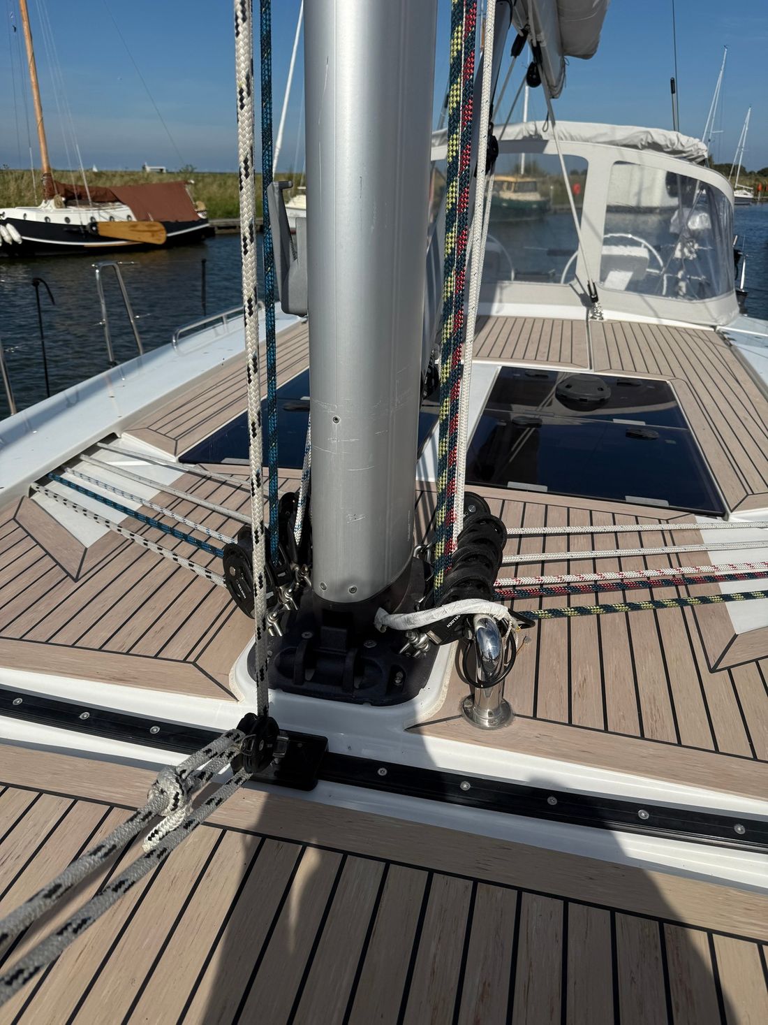 General Sailplan type fractional Number of masts 1 Spars material aluminium Type fixed Sail surface 108 m² Main and stern sails Main sail Sails manufacturer Quantum AC5 performance sails, doorgelat, triradiaal Headsails Jib Furling foresail Gennaker -