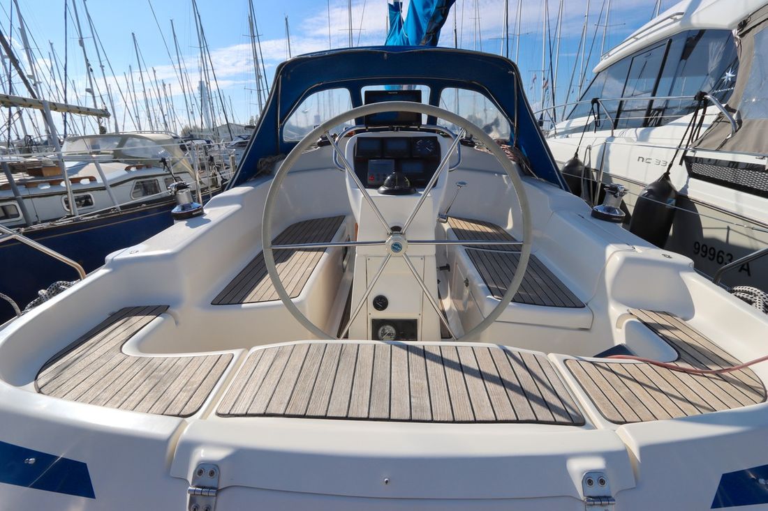 Delivered new Designer J&J Design Shipyard Bavaria Yachts Hull deck superstructure Hull shape roundbilge Hull colour white Deck colour white Deck construction grp (polyester) Cockpit aft cockpit Dimensions and weights Displacement 5300 centimetres Ballast 1750 centimetres Steering and Drift Limitation Keel/Lee board fixed keel -
