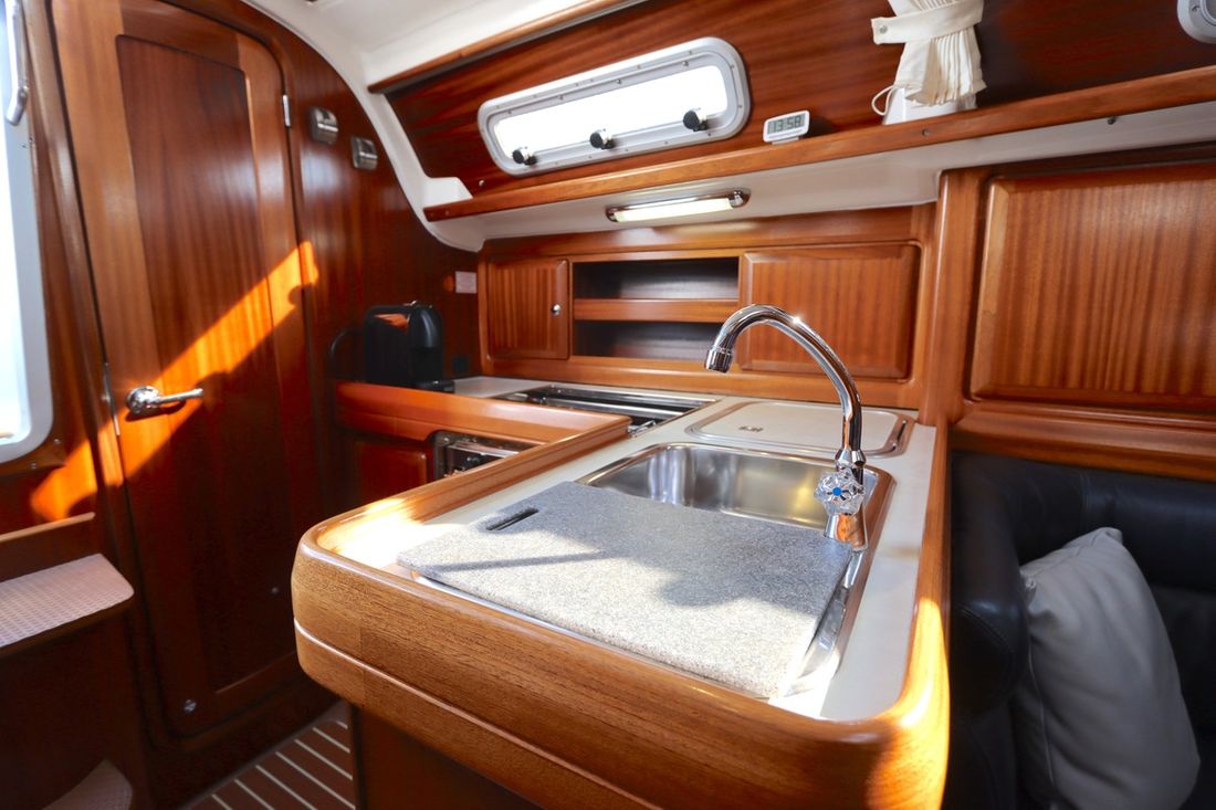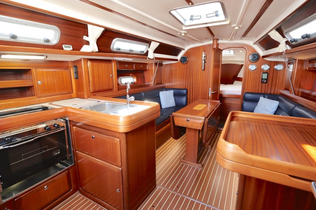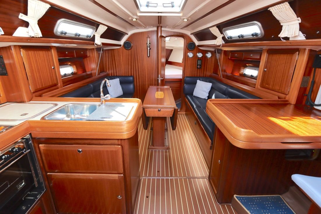 Spaces Saloon Cabins 2 Decoration Type interior Classic, warm Color upholstery blue Mattresses Cushions Curtains Water Water tank & material Capacity 300 litre Water tank material plastic Water tank gauge Water system pressure Plumbing Manual Kitchen Cooker & fuel Number 2 Cooking fuel gas Oven Climate control hot air -