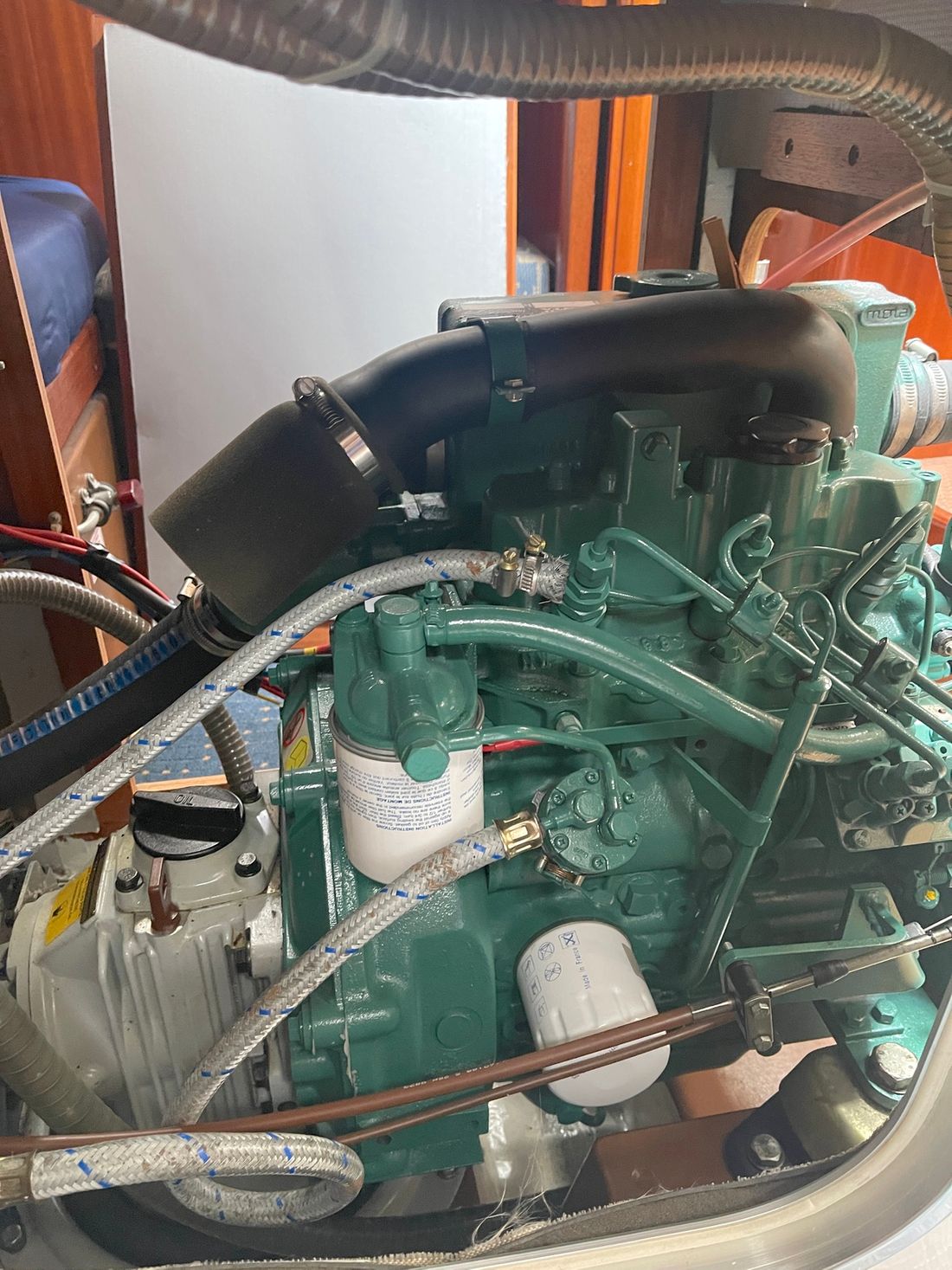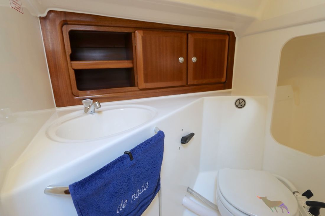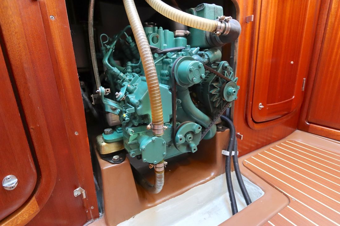 Main engine Brand Volvo Penta Model MD 2030 Year 1998 Number of cylinders 3 Power 29 hp Hours counter Engine hours 1370 Fuel diesel Drive Transmission saildrive Propulsion propellor Cooling system indirect Tank Fuel tanks Total fuel tank(s) capacity 150 litre Measuring instruments Fuel tank gauge Tachometer Temperature gauge Electricity Battery Battery charger Alternator Voltmeter Shore power Shore power cable 12V -