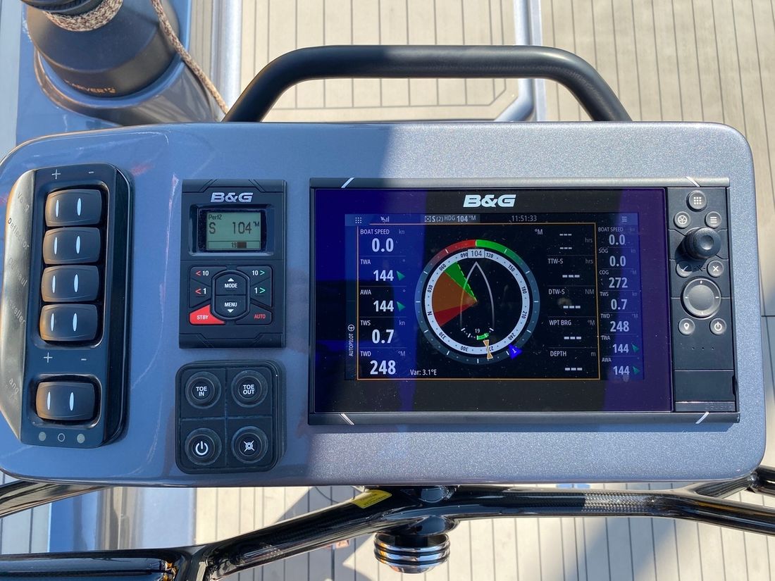 Basic tools Compass Brand kompas Precision 9 Log/speed Brand log/speed B&G Depth gauge Brand depth gauge B&G Wind gauge Brand wind gauge B&G Navigation lights Rudder position indicator Modern electronics Autopilot Brand autopilot B&G GPS Brand GPS B&G Chart plotter Brand chart plotter B&G Brand AIS B&G V3100 SOTDMA Communication VHF Brand VHF B&G V90S Blackbox -