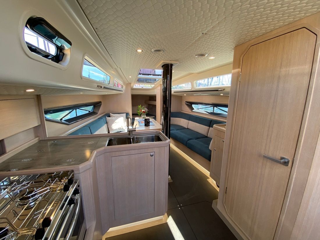 Engines Number of identical engines 1 Starting type electric Main engine Type inboard Brand Volvo Penta Model D1-30 Year 2023 Number of cylinders 3 Power 30 hp Hours counter Fuel diesel Fuel consumption 2 litre/hour Drive Transmission saildrive Propulsion Folding propellor Cooling system indirect Tank Fuel tanks Number 1 Total fuel tank(s) capacity 140 litre Fuel tank material stainless steel Measuring instruments Fuel tank gauge Tachometer Brand tachometer Volvo Oil pressure gauge Brand oil pressure gauge Volvo Temperature gauge Brand temperature gauge Volvo Electricity Battery Number 3 Battery charger Capacity 70 Alternator Capacity 120 Battery monitor Inverter Voltmeter Shore power Shore power cable Consumption monitor 12V 220V -