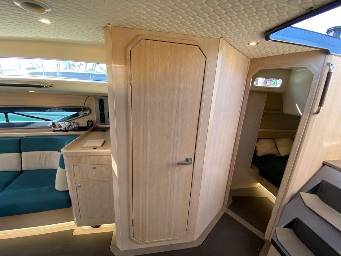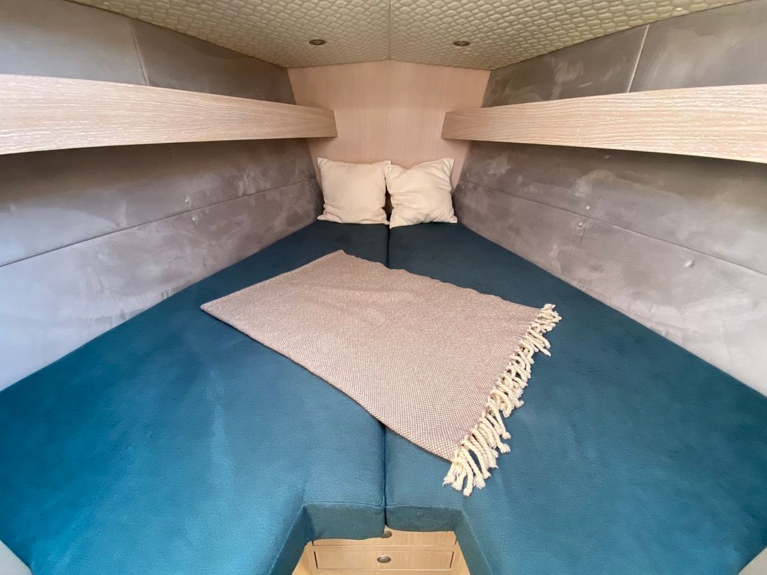 Spaces Separate Dining area Engine room Cabins 3 Saloon Decoration Type interior Modern, wood look Mattresses Cushions Water Water tank & material Capacity 260 litre Water tank material stainless steel Water tank gauge Inhoud 60 litre Waste water tank material stainless steel Waste water tank Waste water tank gauge Water system Pressure system Hot water Deck Shower Plumbing Number of showers 1 Toilets 1 Electric Entertainment Radio/CD player Kitchen Cooker & fuel Number 2 Cooking fuel gas Oven Fridge & power source Capacity 75 litre Power source electric Climate control hot air -