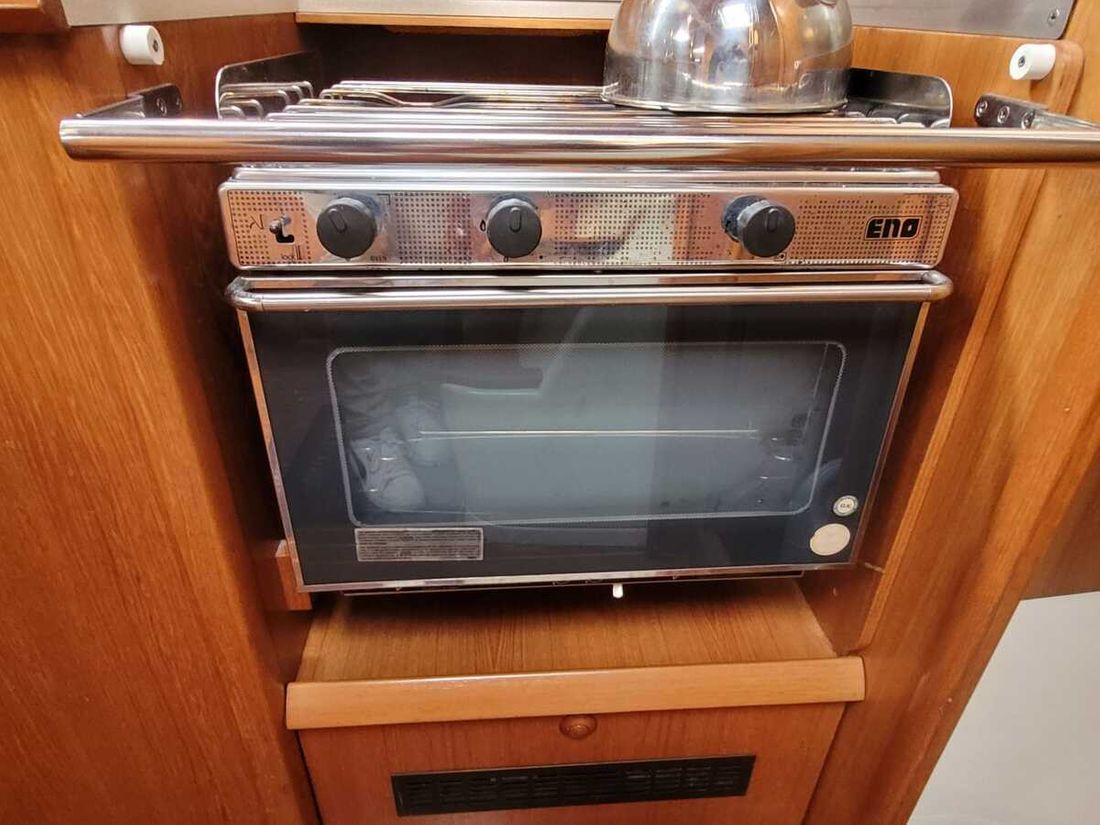 Spaces Saloon Cabins 3 Saloon Decoration Type interior Classic, warm Color upholstery beige Mattresses Cushions Curtains Water Water tank & material Capacity 320 litre Water tank material plastic Water maker Water system pressure Hot water Comments Hot water Boiler 40 liters Plumbing Number of showers 2 Comments Number of showers Outdoor shower cold water only Toilets 1 Manual Entertainment Radio/CD player Comments Radio/CD player Radio RCD - Sony Kitchen Cooker & fuel Comments Cooker & fuel Flexible gas pipe to be replaced - thermocouples to be checked Number 2 Cooking fuel gas Oven Fridge & power source Capacity 200 litre Power source electric Climate control Heating Webasto hot air Comments Heating There are air vents in every living space -