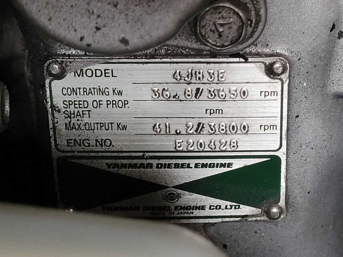 Engines Number of identical engines 1 Starting type electric Main engine Type inboard Brand Yanmar Model 4JH3E Serial number E20428 Year 1999 Number of cylinders 4 Power 55 hp Hours counter Comments Engine hours Not readable Fuel diesel Drive Transmission shaft Propulsion propellor Cooling system indirect Tank Fuel tanks Number 1 Total fuel tank(s) capacity 136 litre Fuel tank material polyethyleen Performance Max speed 8 knots Cruising speed 6 knots Measuring instruments Fuel tank gauge Tachometer Oil pressure gauge Temperature gauge Bow and stern thruster Bow thruster electric Comments Bow thruster (2019) - installation by Delta Yacht (Colijnsplaat) Electricity Battery Comments Battery 1x bow thruster (2019), 1x starter battery and 1x service battery - battery condition not checked with diagnostic device Number 3 Battery charger Inverter Comments Inverter 1 220v socket for laptop use, limited power Shore power Shore power cable 12V 220V -