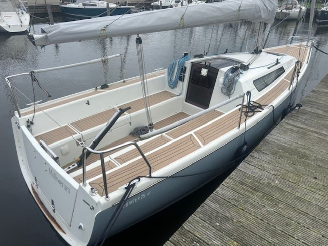 Category Reference number 16 Category Sailing Yacht Additional category Sailing Yacht Brand Pointer Model 25 The WIN (Watercraft Identification Number) NL-JWHP2074G121 Ship's name Grigio Vaio Berth Type Office Country Netherlands Latitude 52.97457841 Longitude 5.61650812 General Status Available New or used Used Boat type Sailboat Year of construction 2021 Latest refit 2024 Hull material GRP (polyester) Account manager Jochum van Tuinen Short description Discover the Pointer 25 Grigio Vaio: an elegant sailboat that effortlessly combines sportiness and comfort. With her stylish Grigio Vaio color scheme and sleek lines, she's a real eye-catcher on the water. Agile, stable, and designed for pure sailing pleasure – perfect for relaxed cruises and active sailing days. The Pointer 25 Grigio Vaio guarantees freedom, performance, and enjoying every gust of wind. Motorization summary Electric Torqeedo 4.0 kW POD motor with folding propeller Broker yacht URL https://ottenhome.yachtshift.nl/16/pointer-25 Dimensions Length 770 centimetres Width 250 centimetres Draught 110 centimetres Vertical clearance 1080 centimetres Berths fixed 4 -