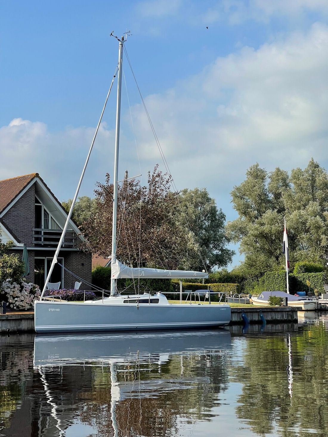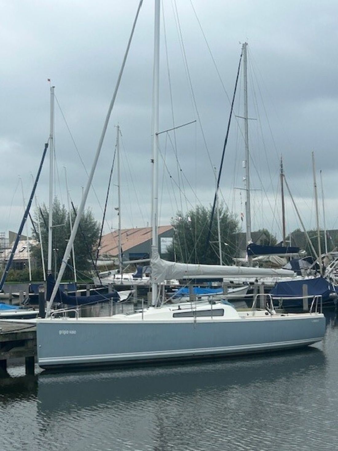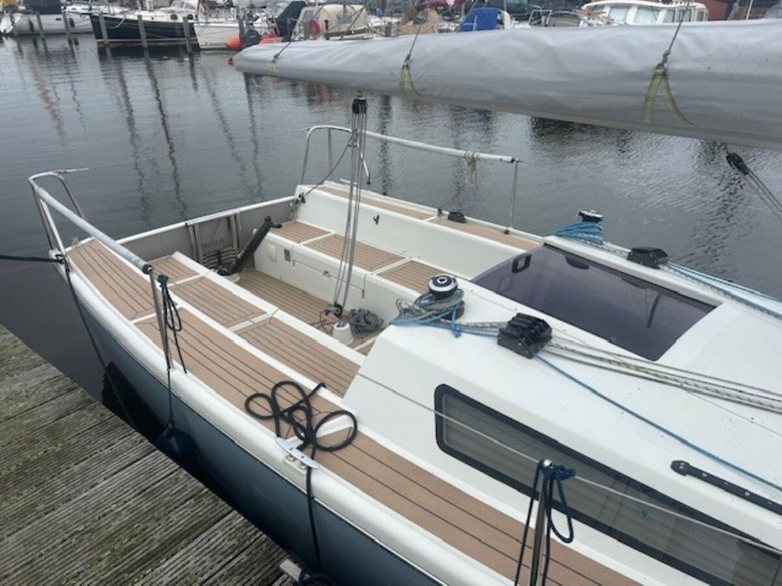 Delivered new Designer van de Stadt Design Shipyard Jachtwerf Heeg CE-category B Inspection certificate Hull deck superstructure Hull shape roundbilge Hull colour grey Deck colour white Deck construction grp (polyester) Comments Deck construction In addition, Esthec has been applied to the deck, bench and cockpit floor. Cockpit aft cockpit Open cockpit Windows Two windows and one deck hatch Dimensions and weights Waterline length 770 cm Steering and Drift Limitation Steering system helm Comments Steering system Including mounted joystick Position steering system outside control Rudder single Keel/Lee board fixed keel Comments Keel/Lee board Weight of bulb keel: 700 kg -