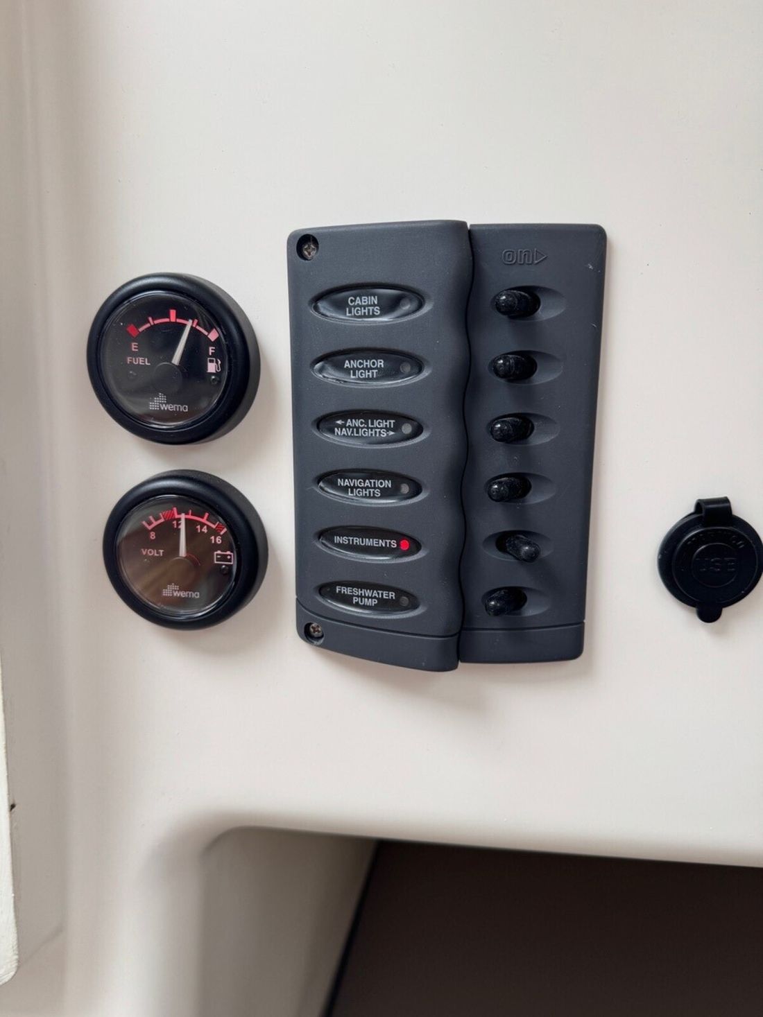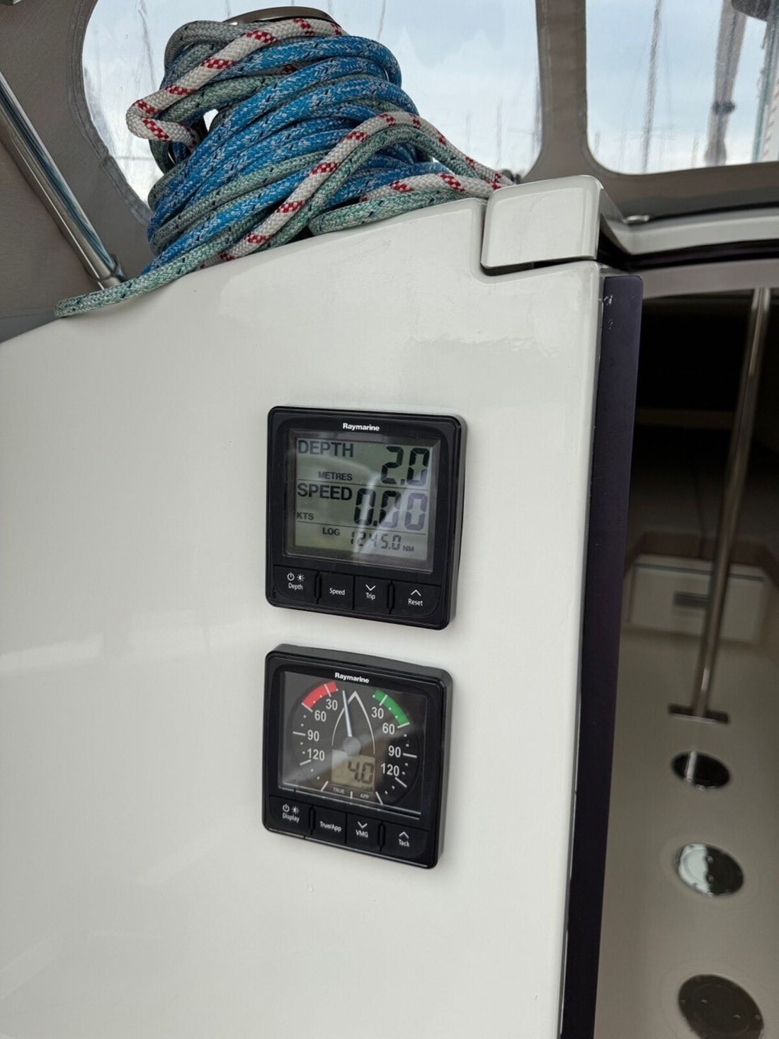 Basic tools Compass Log/speed Brand log/speed Raymarine i50 Depth gauge Brand depth gauge Raymarine i50 Wind gauge Brand wind gauge Raymarine i60 Navigation lights Windvane steering -