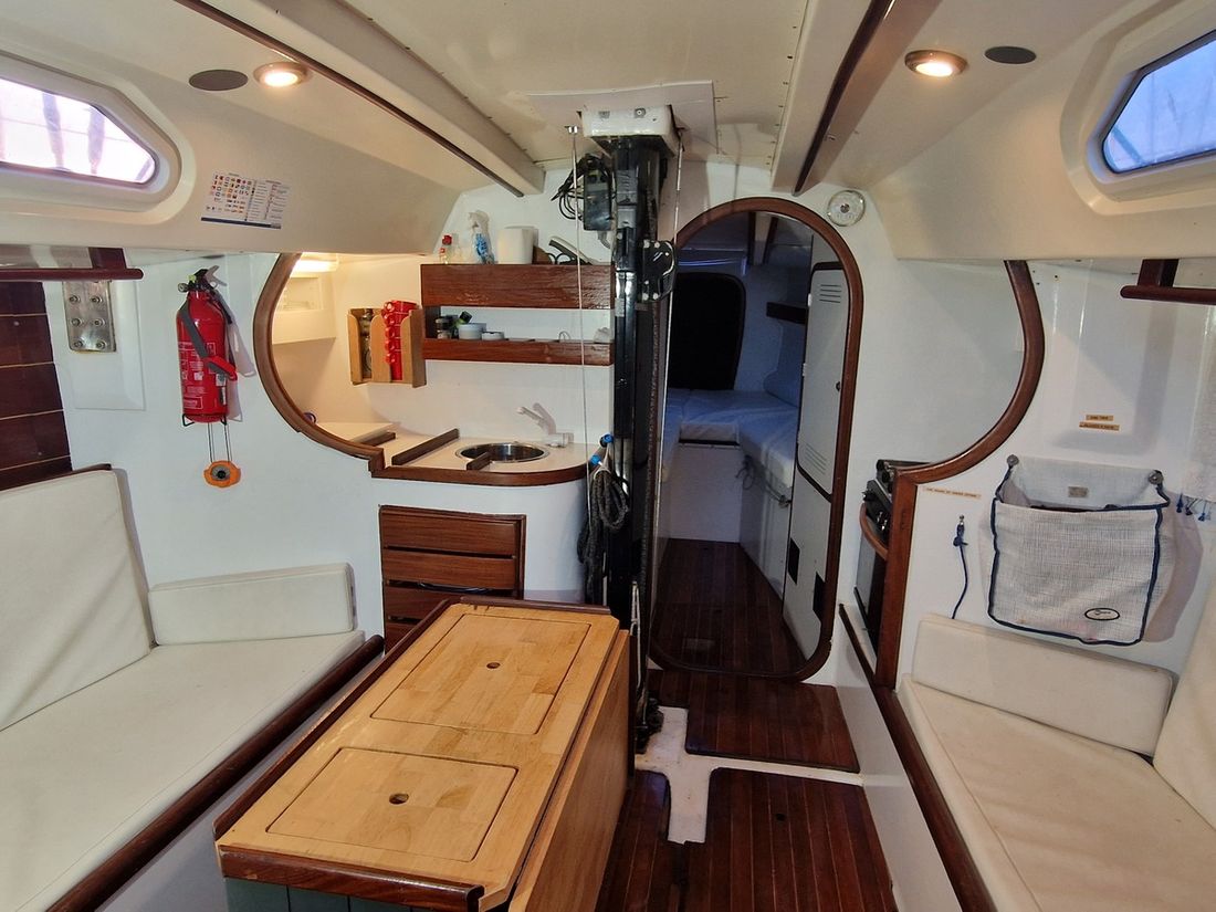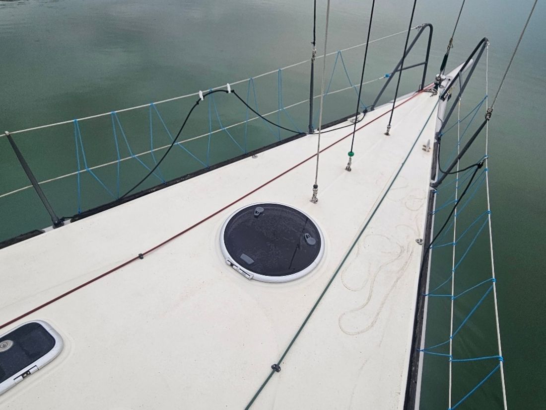 General Sailplan type fractional Number of masts 1 Spars material carbon Comments Spars material hydraulic mast jack Standing rig ROD rigging Main and stern sails Main sail Comments Main sail 2023 heavy, carbon Winning sails / 2017 dacron / 2014 light north carbon / Storm dacron headsail Headsails Genoa Comments Genoa J1.5 light north / J2 2023 Winning sails / J3/J4 2025 Winning Jib Storm jib Comments Storm jib Storm jib Spinnaker Gennaker Comments Gennaker A1 winning sails 2025 155 m² 0.9 / A2 north 2013 165 m² / A4 winning sails 2023 135 m² 1.3 / A4 winning sails 2025 165 m² 1.3 / A5 north 2013 125 m² 1.5 / Delivery code 0 Winches Winches Harken 6x selftailing -