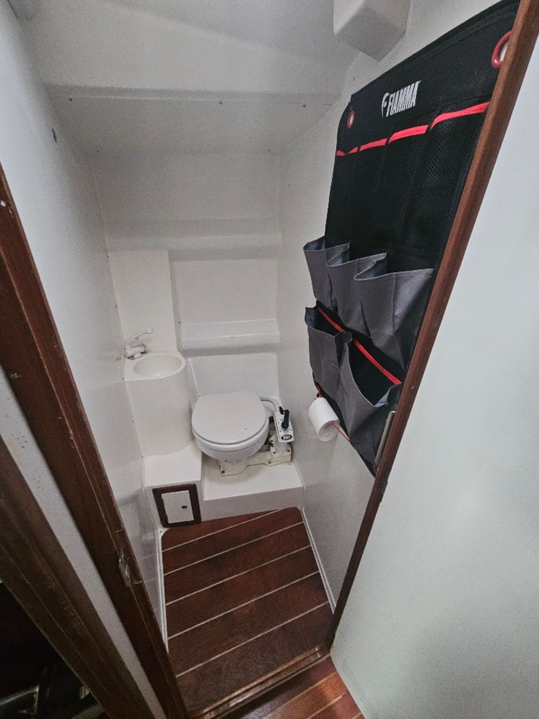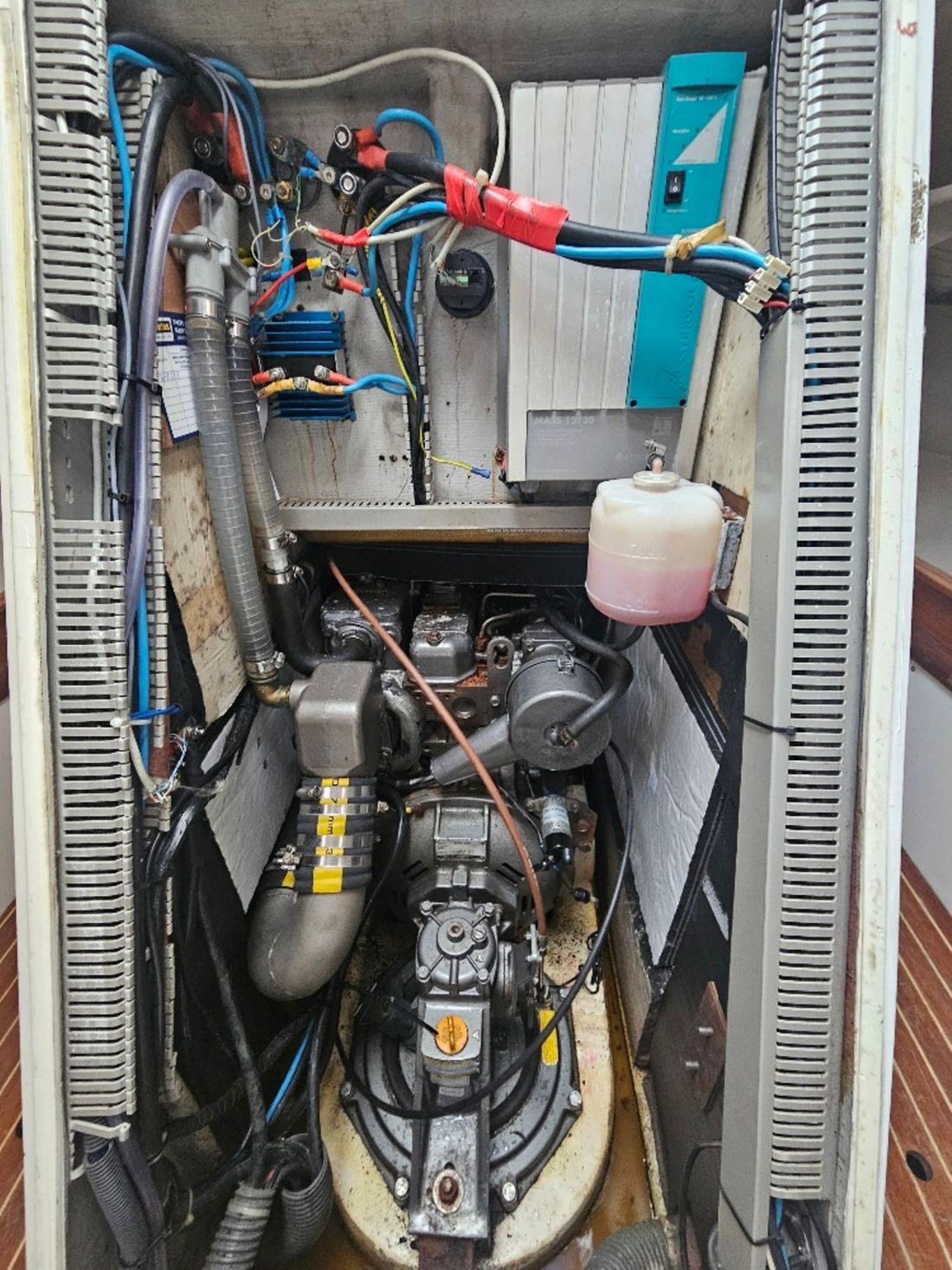 Main engine Type inboard Brand Yanmar 3JH3E Serial number A03693 Year 2003 Number of cylinders 3 Power 40 hp Fuel diesel Drive Transmission saildrive Propulsion propellor Comments Propulsion folding propeller 2-blade Gori Cooling system indirect Tank Fuel tanks Total fuel tank(s) capacity 82 litre Measuring instruments Tachometer Electricity Battery Battery charger Alternator Inverter Voltmeter Shore power Shore power cable 12V -