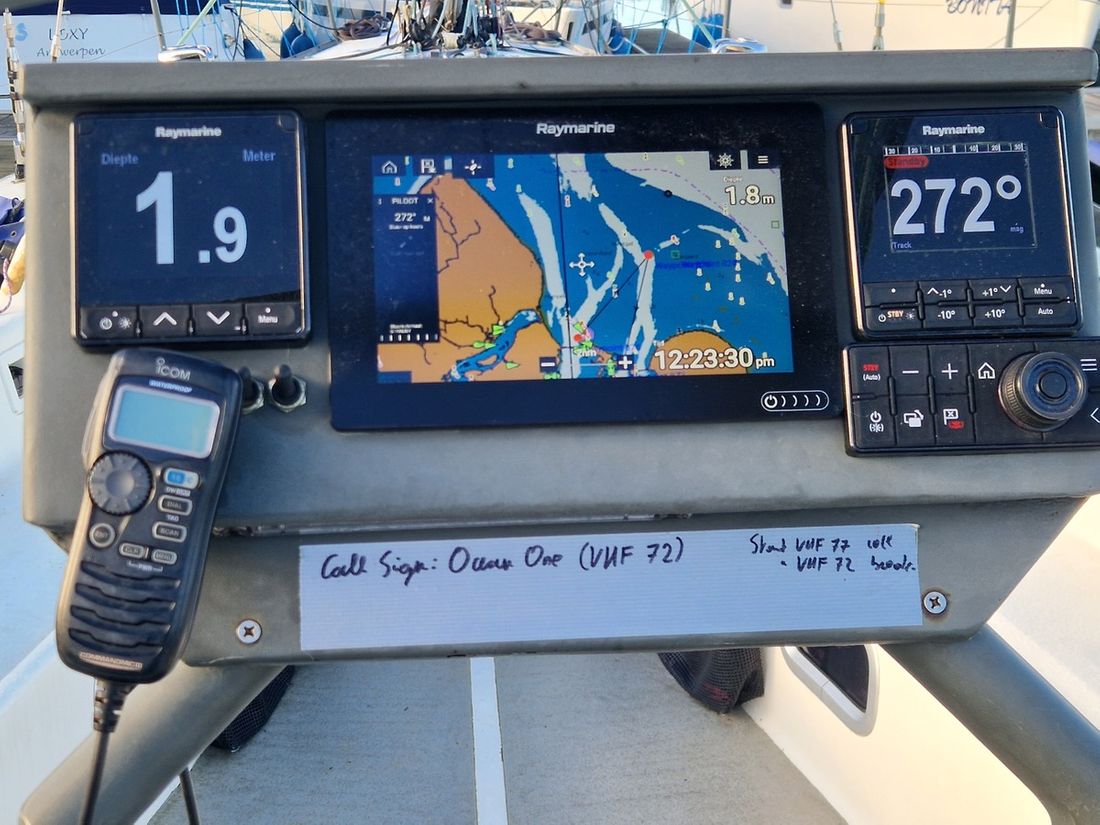 Basic tools Compass Log/speed Brand log/speed raymarine i70 (2020) Depth gauge Brand depth gauge raymarine i 70 (2020) Wind gauge Brand wind gauge raymarine i 70 ( 2020) Navigation lights Charts, guides Rudder position indicator Modern electronics Autopilot Brand autopilot raymarine EV-200 sail ( 2020) GPS Brand GPS raymarine axiom 9+ (2020) Chart plotter Brand chart plotter raymarine axiom 9+ Brand AIS raymarine class B (2020) Communication VHF Brand VHF icom -