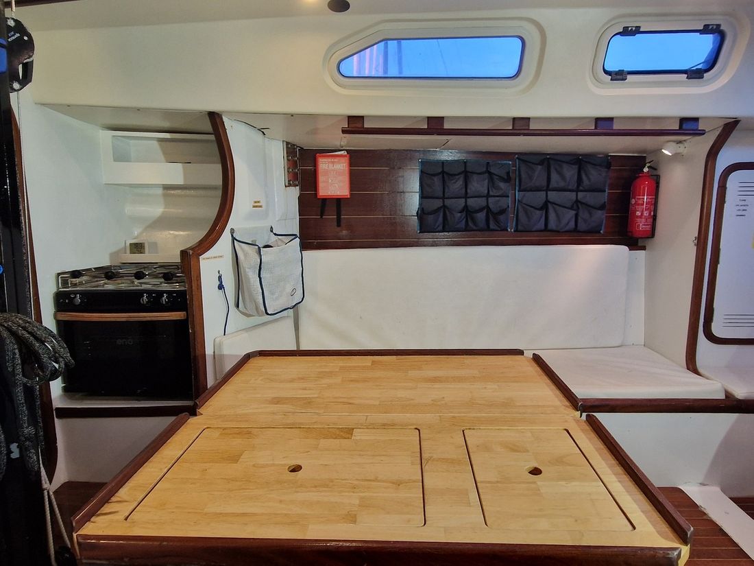 Spaces Berths 6 Decoration Type interior Modern, light Color upholstery white Cushions Water Water tank & material Capacity 130 litre Water tank gauge Water system pressure Plumbing Comments Toilets Jabsco hand pump Entertainment Radio/CD player Kitchen Cooker & fuel Comments Cooker & fuel (new 2022) Number 2 Cooking fuel gas Oven Comments Oven (new 2022) Fridge & power source Comments Fridge & power source isotherm (new 2022) Power source electric Climate control stove Comments Heating webasto (new 2019) -