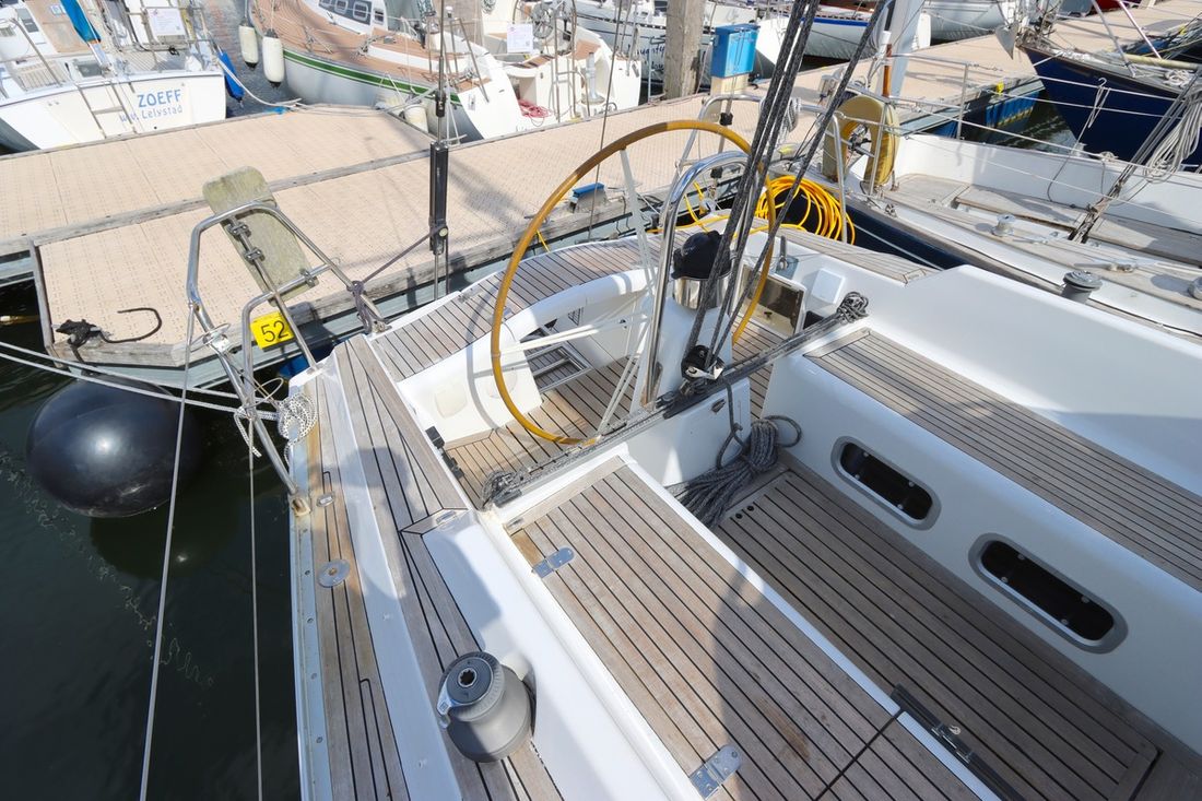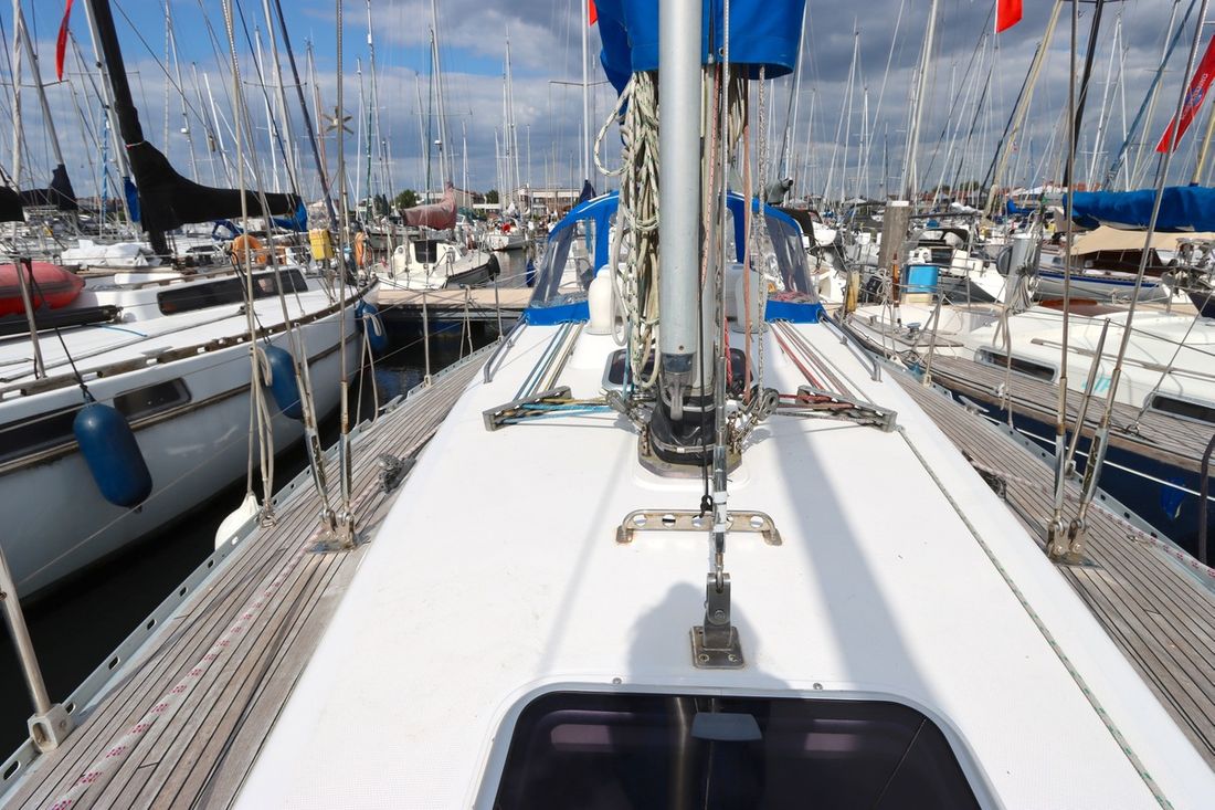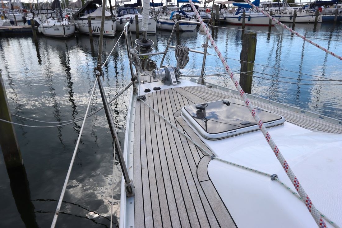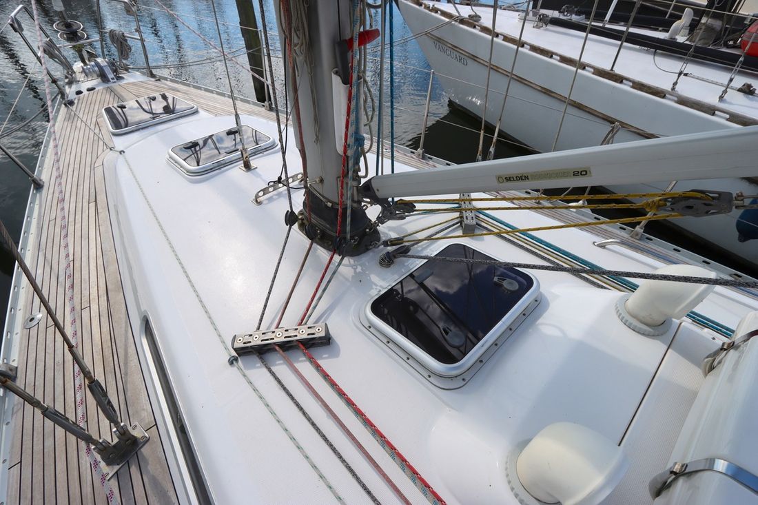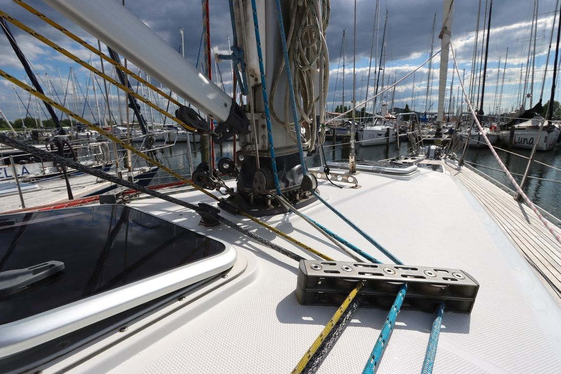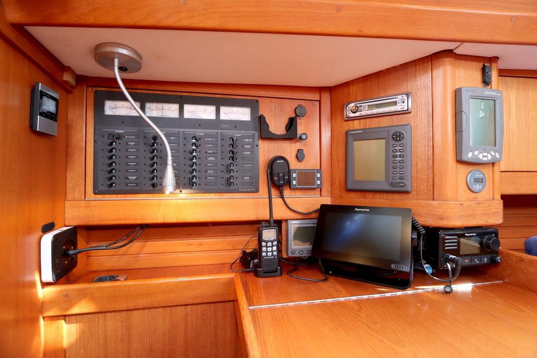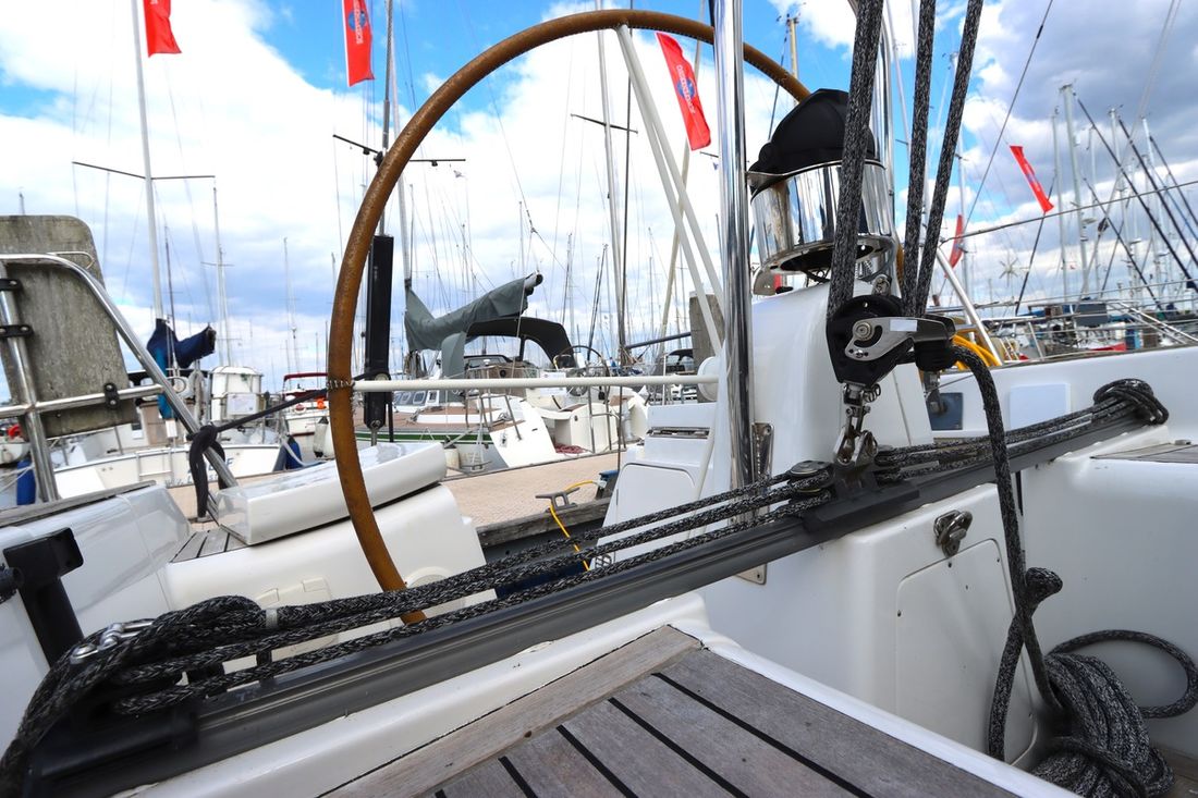 Delivered new Designer Ed Dubois Shipyard Wauquiez Hull deck superstructure Deck construction grp (polyester) Cockpit aft cockpit Dimensions and weights Displacement 6700 kg Ballast 2700 kg Steering and Drift Limitation Steering system wheel Keel/Lee board fixed keel -