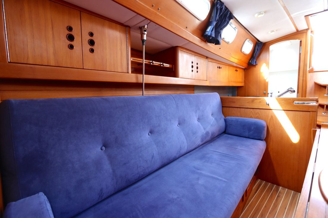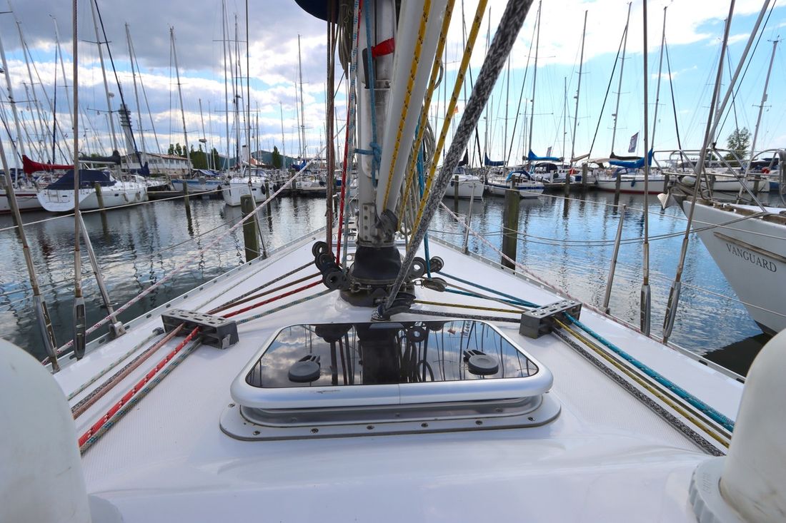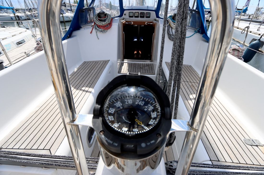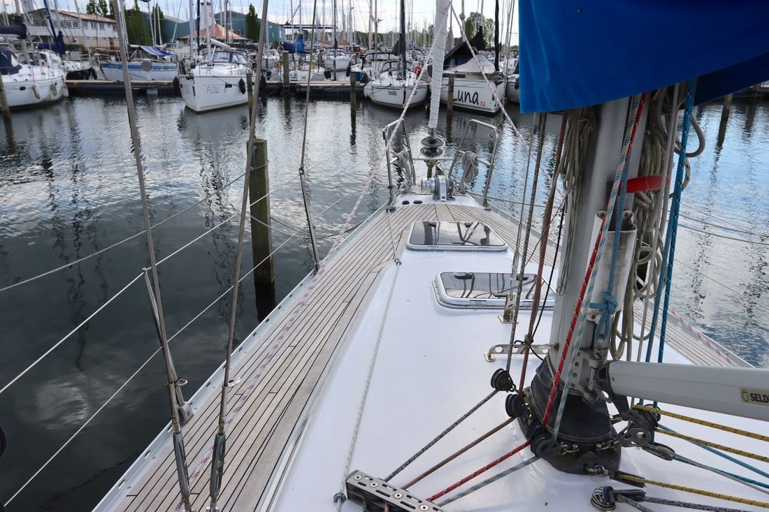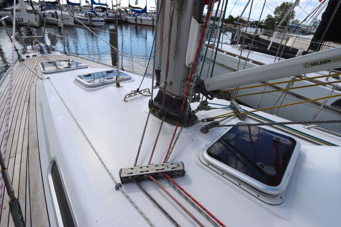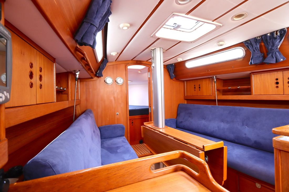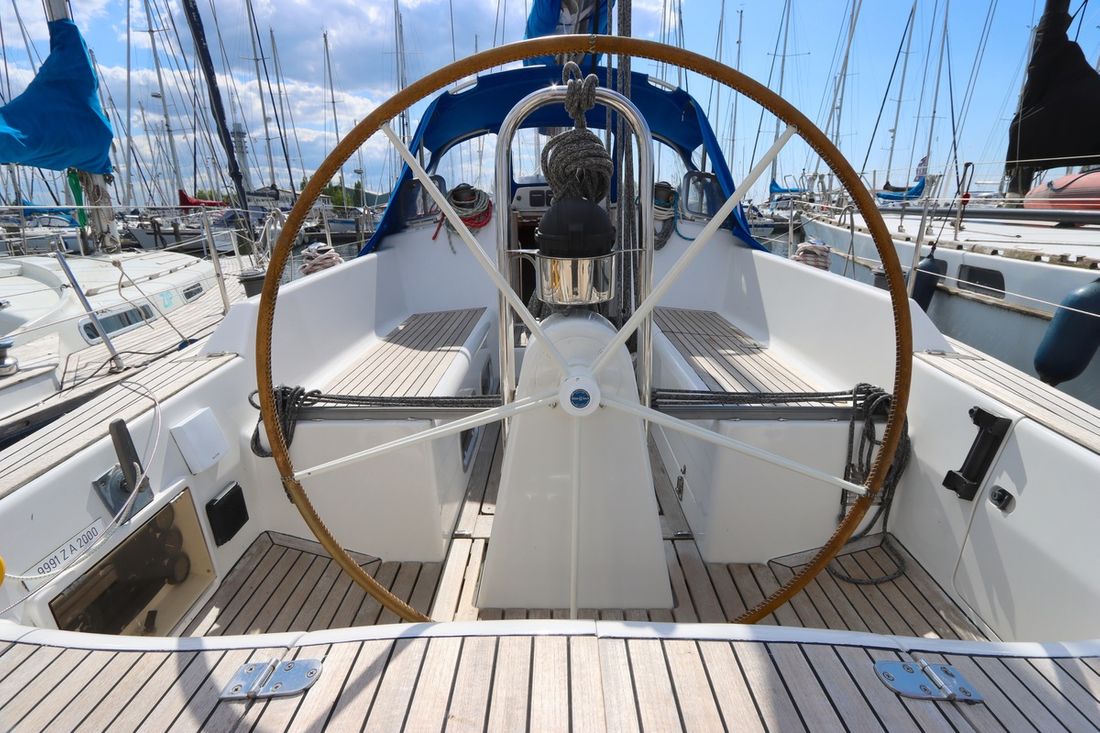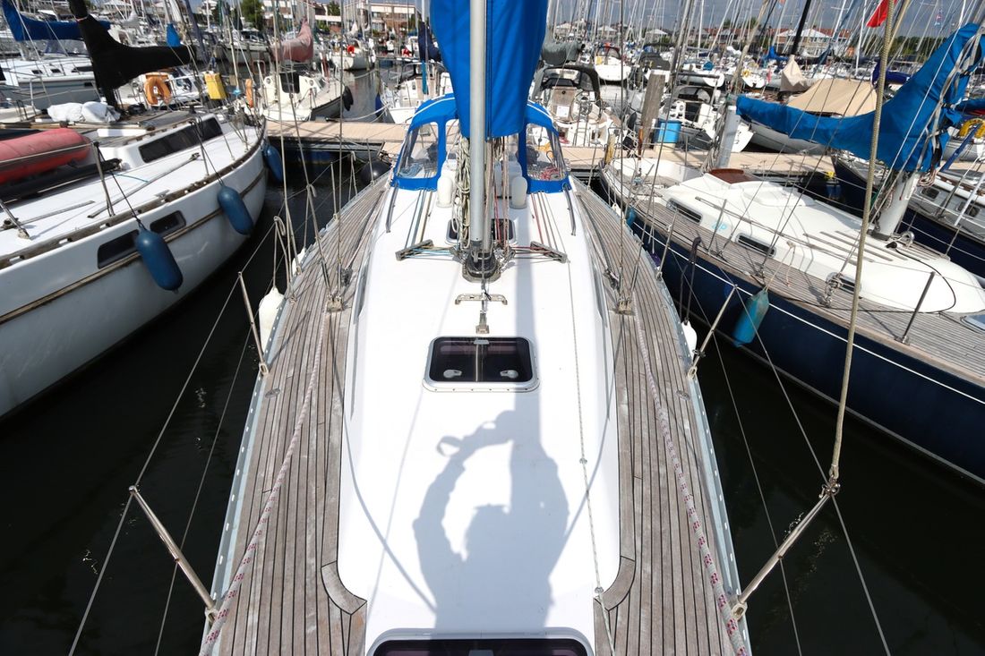Delivered new Designer Ed Dubois Shipyard Wauquiez Hull deck superstructure Deck construction grp (polyester) Cockpit aft cockpit Dimensions and weights Displacement 6700 kg Ballast 2700 kg Steering and Drift Limitation Steering system wheel Keel/Lee board fixed keel -