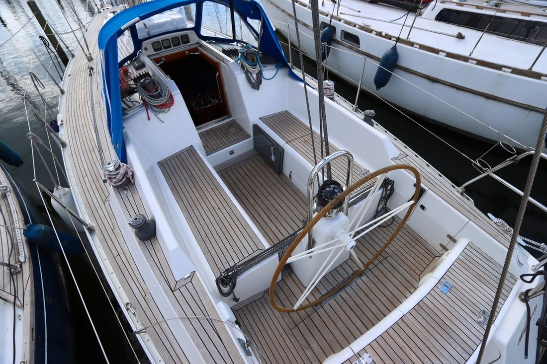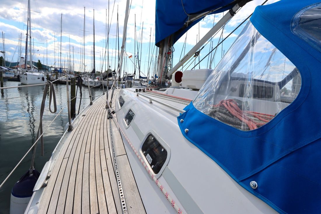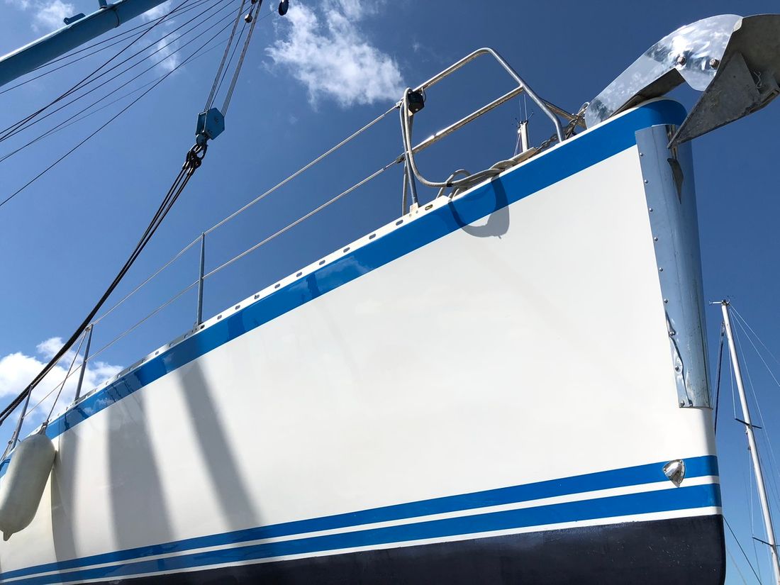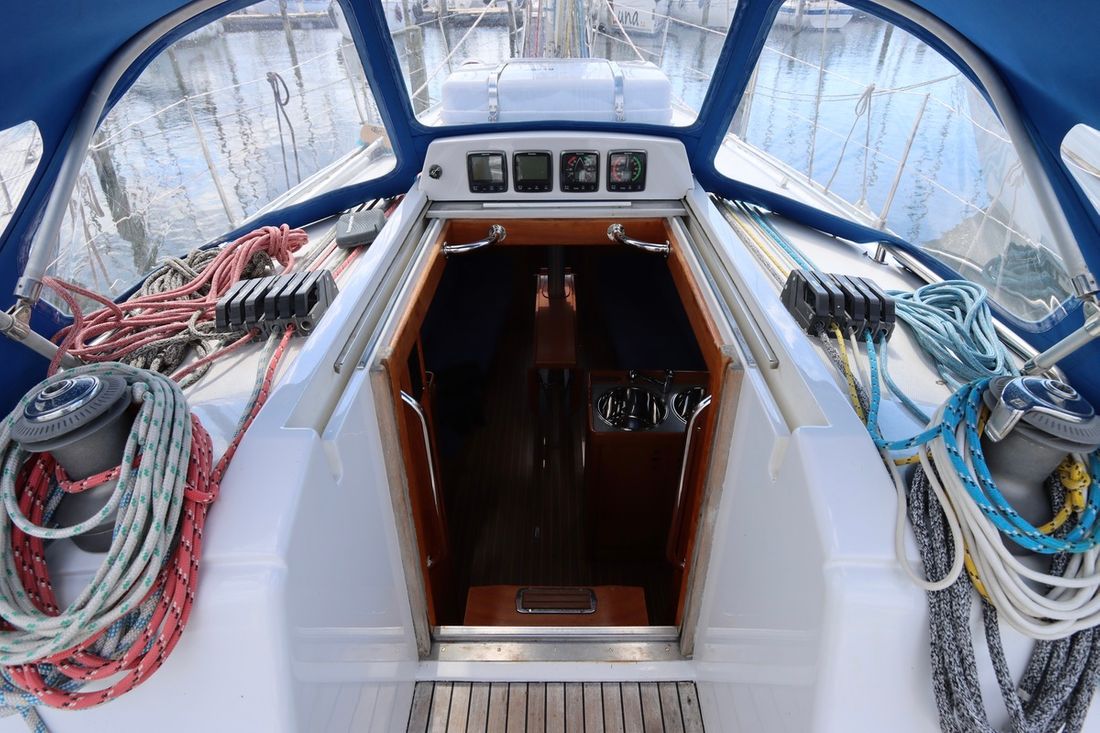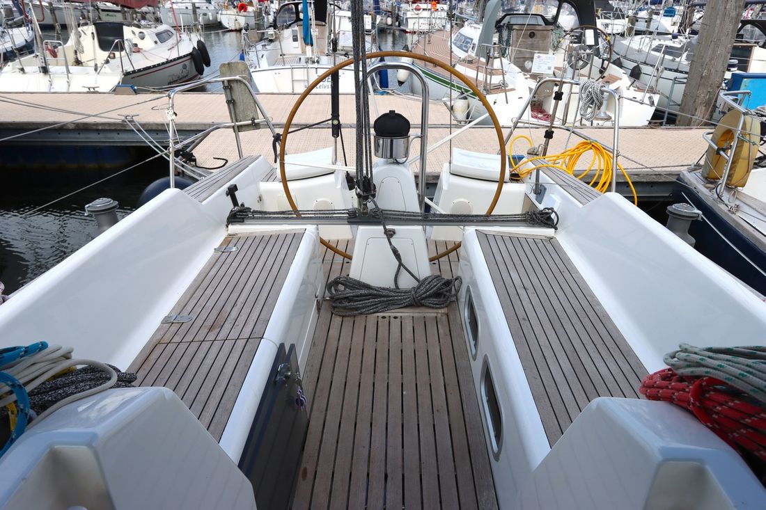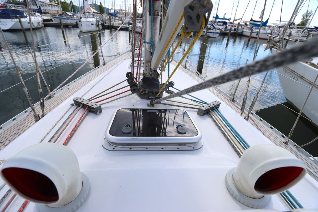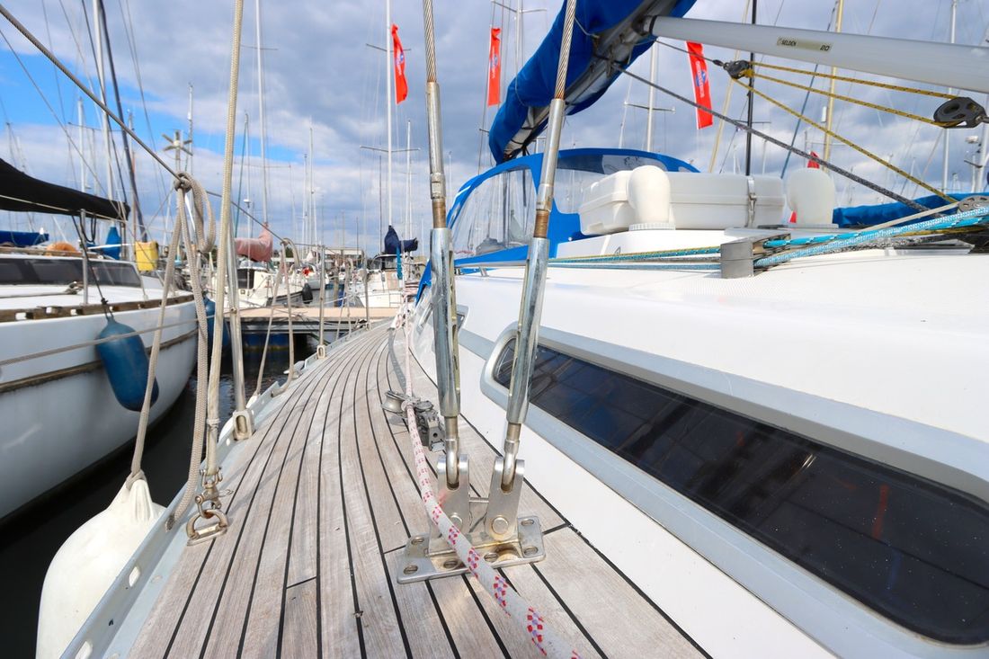 Delivered new Designer Ed Dubois Shipyard Wauquiez Hull deck superstructure Deck construction grp (polyester) Cockpit aft cockpit Dimensions and weights Displacement 6700 kg Ballast 2700 kg Steering and Drift Limitation Steering system wheel Keel/Lee board fixed keel -