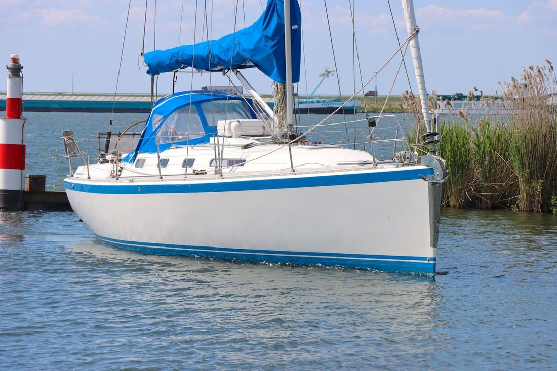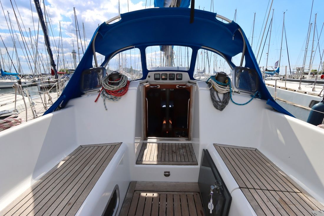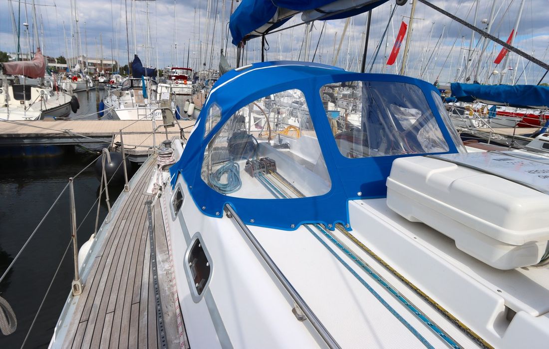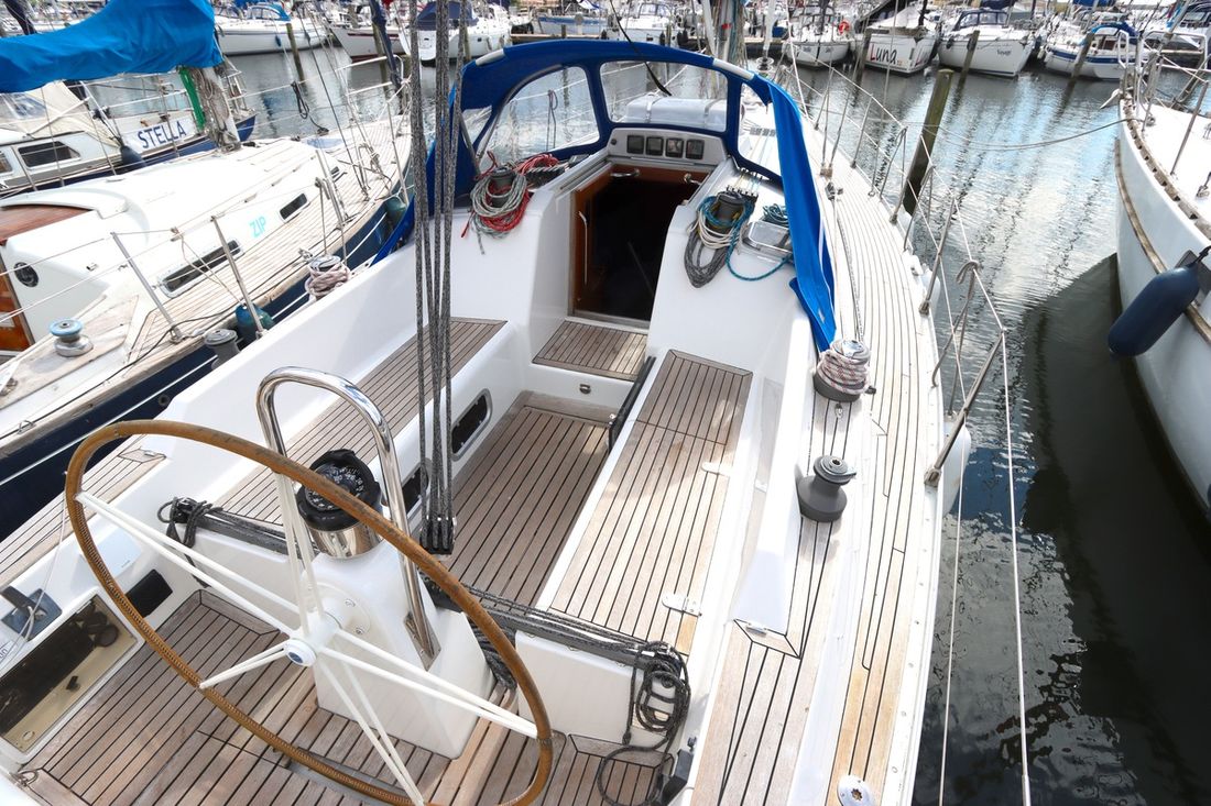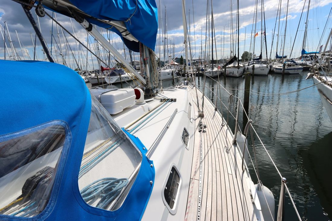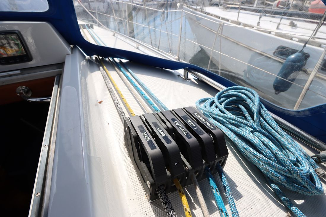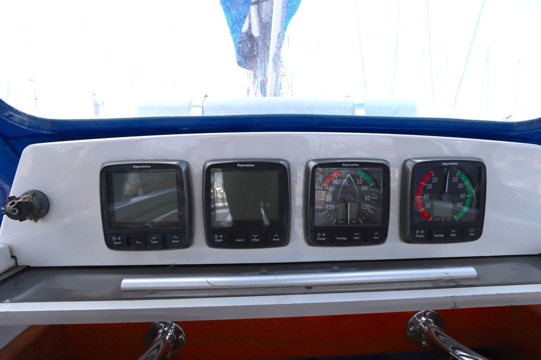 Delivered new Designer Ed Dubois Shipyard Wauquiez Hull deck superstructure Deck construction grp (polyester) Cockpit aft cockpit Dimensions and weights Displacement 6700 kg Ballast 2700 kg Steering and Drift Limitation Steering system wheel Keel/Lee board fixed keel -