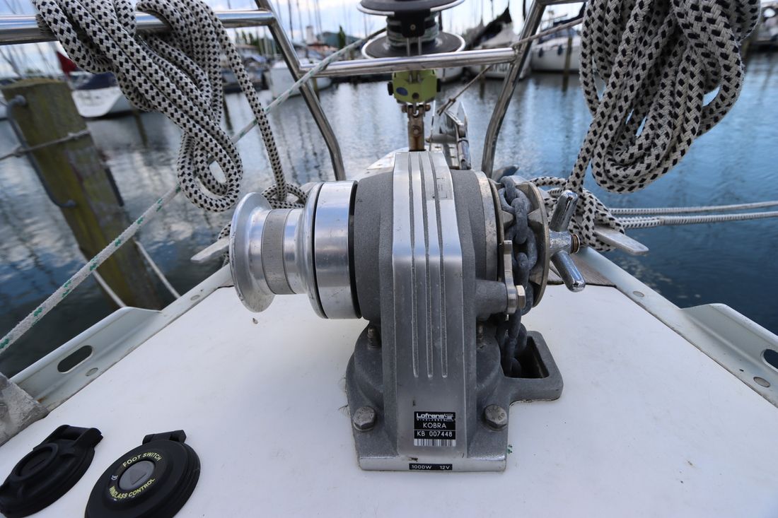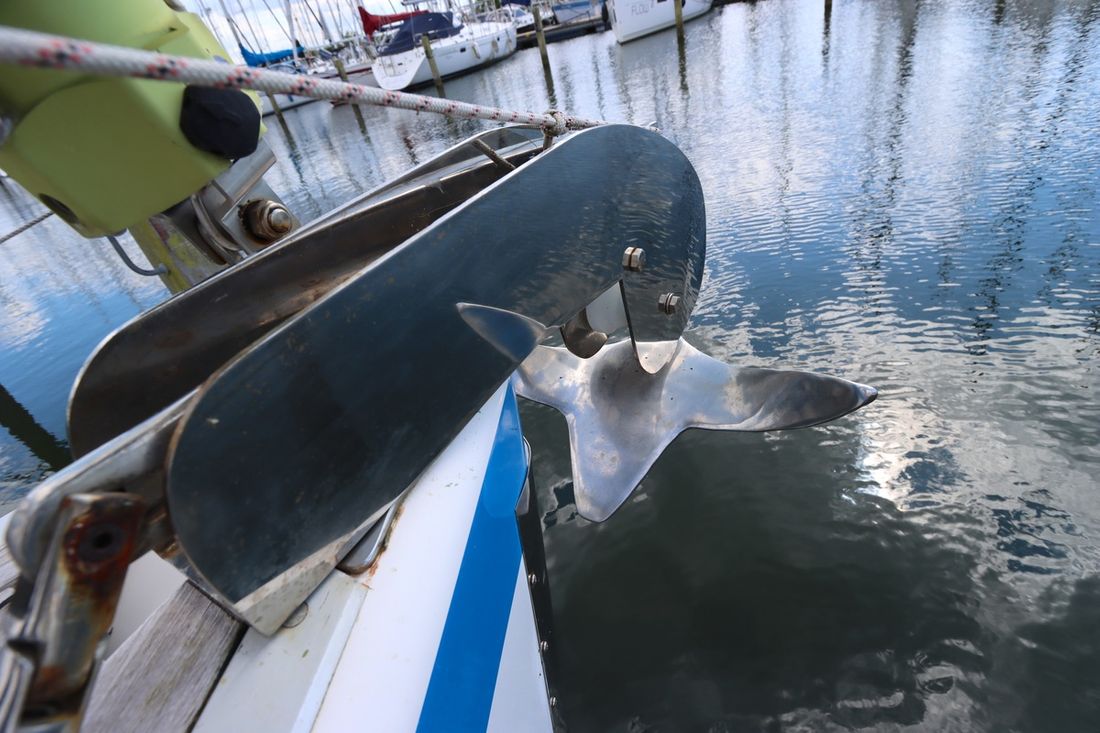 Main engine Brand Yanmar Serial number 19483 Year 1997 Power 27 hp Hours counter Engine hours 2300 Fuel diesel Fuel consumption 2 litre/hour Drive Transmission saildrive Propulsion propellor Cooling system indirect Tank Total fuel tank(s) capacity 150 litre Fuel tank material stainless steel Measuring instruments Fuel tank gauge Tachometer Electricity Battery Battery charger Alternator Battery monitor Voltmeter Shore power Shore power cable Consumption monitor 12V -