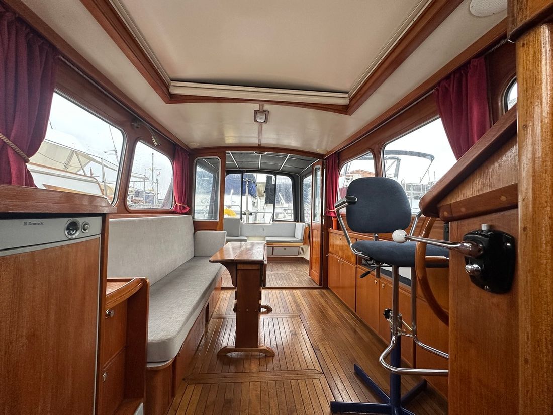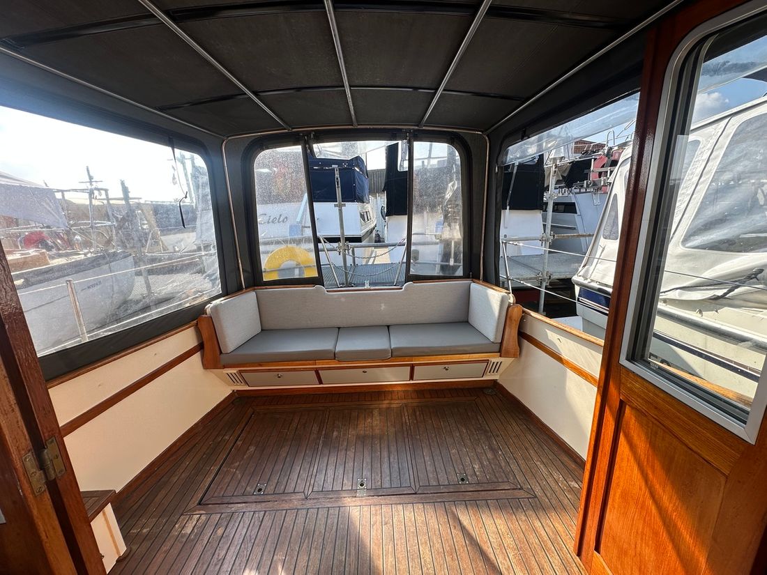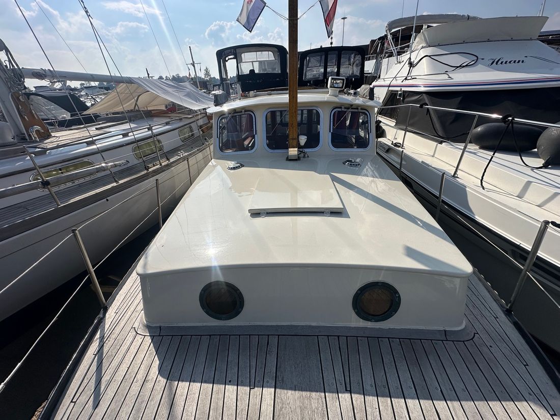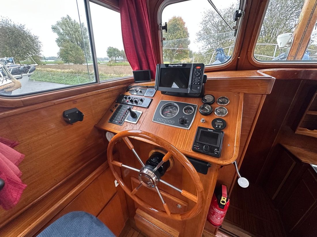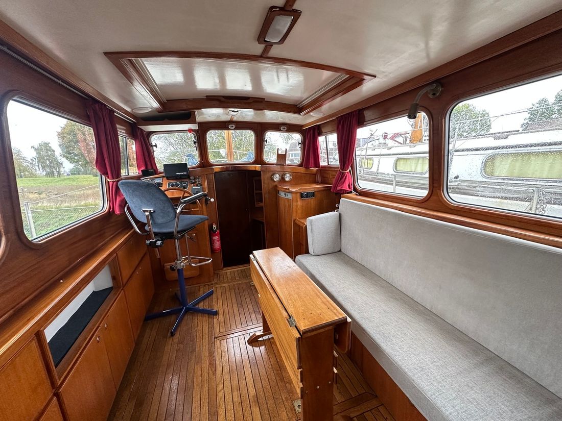 Delivered new Shipyard Nederland Hull deck superstructure Hull shape multi-chine Deck construction steel Cockpit aft cockpit Open cockpit Dimensions and weights Displacement 8000 kg Steering and Drift Limitation Steering system wheel Position steering system inside control -