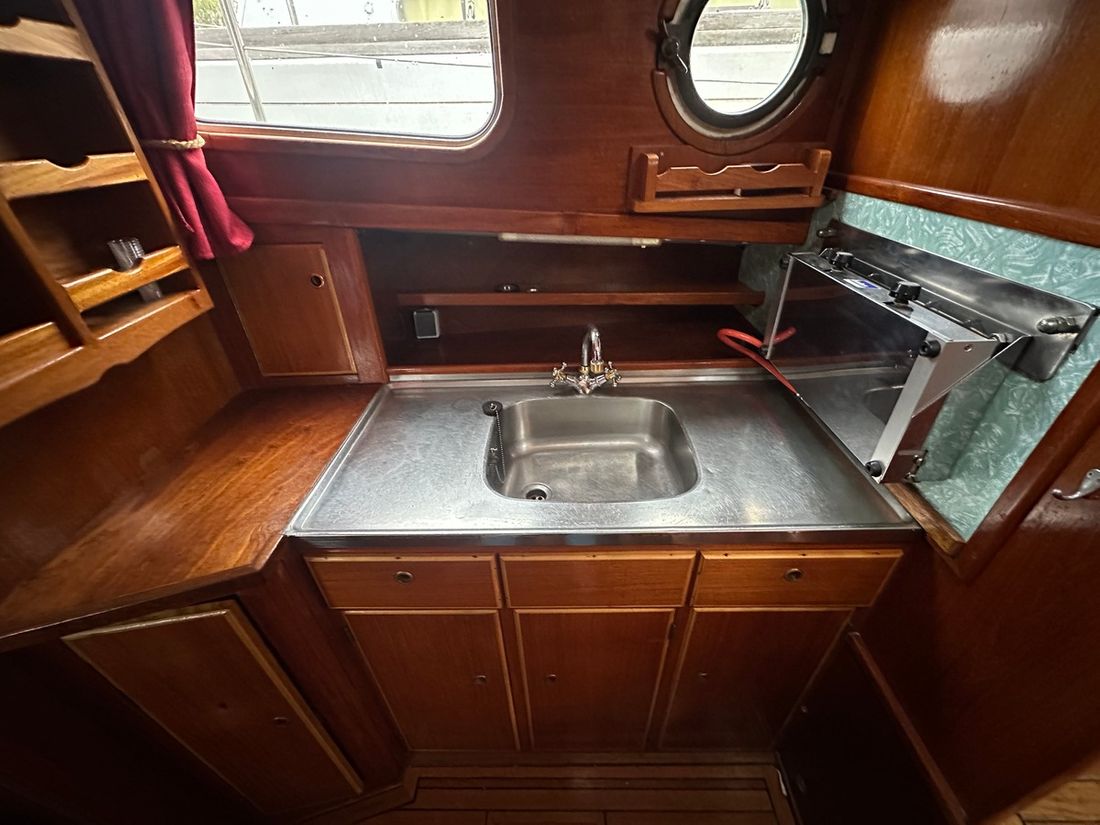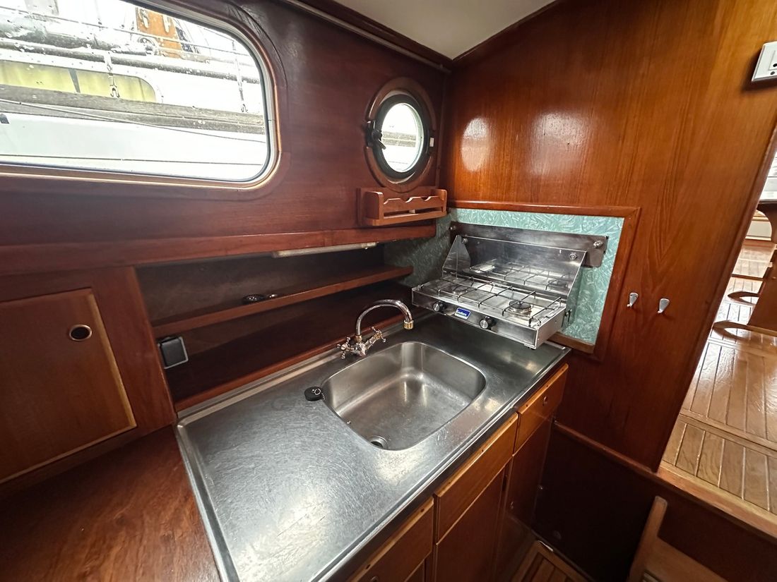 Spaces Saloon Cabins 1 Decoration Type interior Classic, warm Mattresses Cushions Curtains Water Water tank & material Capacity 350 litre Water tank gauge Water system pressure Plumbing Toilets 2 Manual Entertainment Radio/CD player Kitchen Cooker & fuel Number 2 Cooking fuel gas Fridge & power source Power source gas + electric Freezer Climate control hot air -