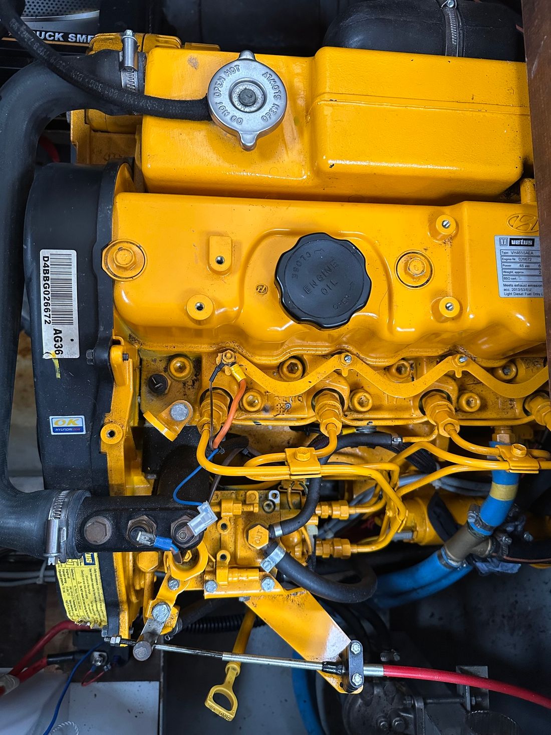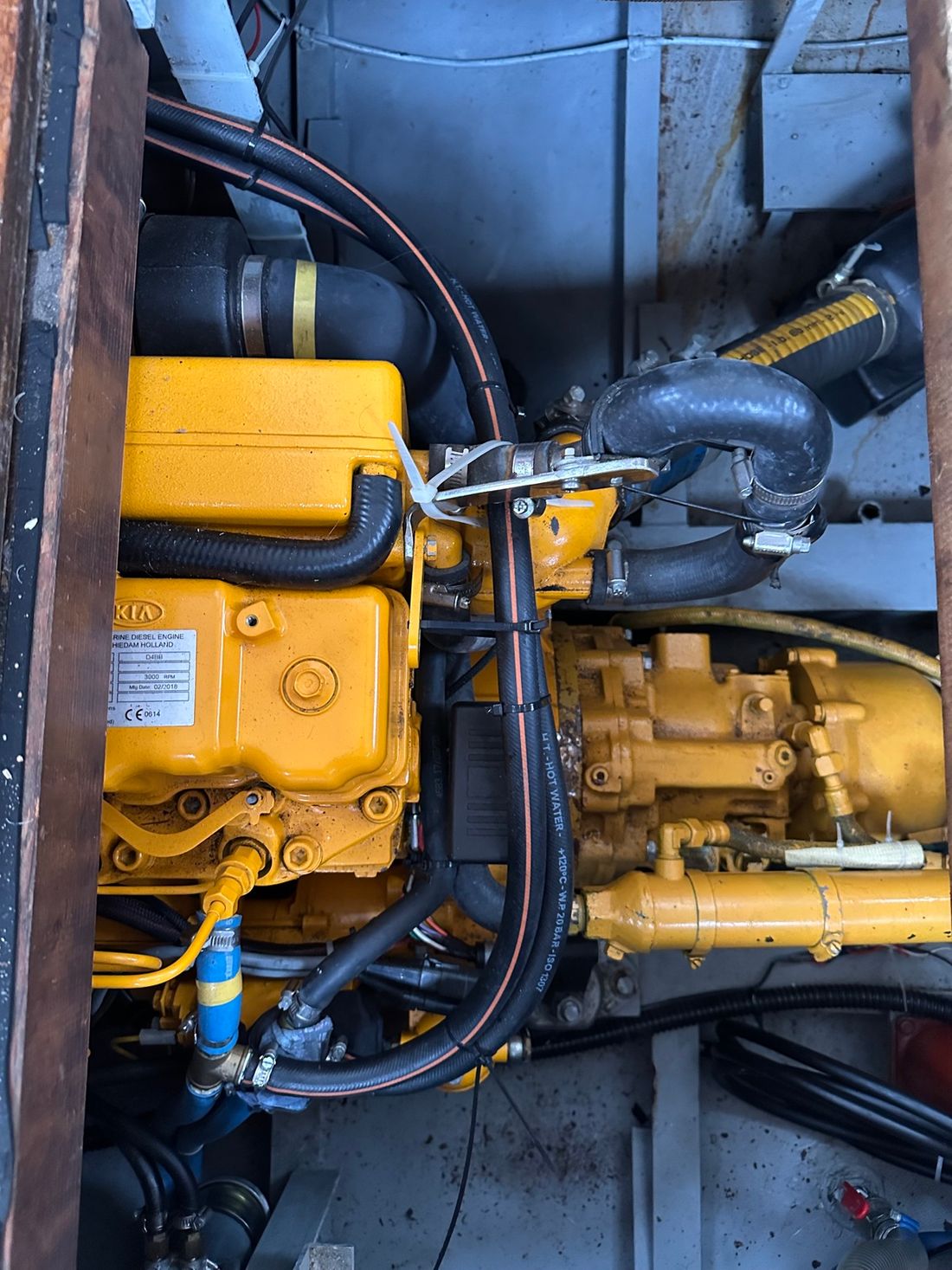 Engines Number of identical engines 1 Starting type electric Main engine Type inboard Brand Vetus Model VH465SAEA Serial number 026672 Year 2018 Number of cylinders 4 Power 65 hp Hours counter Fuel diesel Drive Transmission shaft Propulsion propellor Cooling system indirect Tank Fuel tanks Number 1 Total fuel tank(s) capacity 500 litre Fuel tank material steel Measuring instruments Fuel tank gauge Tachometer Brand tachometer Vetus Temperature gauge Bow and stern thruster Bow thruster electric Electricity Voltmeter Solar panel 12V -