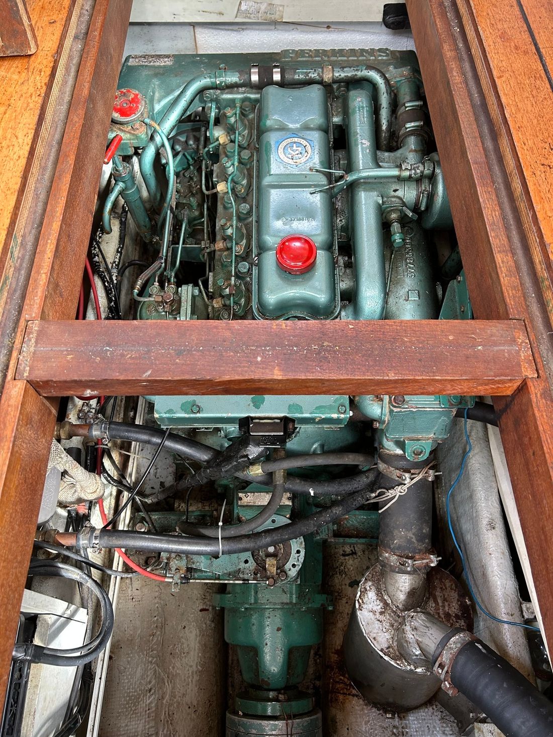 Engines Number of identical engines 1 Starting type electric Main engine Type inboard Brand Perkins Model 4236 Serial number 42364115477 Year 1975 Number of cylinders 4 Power 72 hp Hours counter Engine hours 4701 Fuel diesel Fuel consumption 3 litre/hour Drive Transmission shaft Propulsion screw Comments Propulsion 3-blade Cooling system indirect Tank Fuel tanks Comments Fuel tanks 2 x 200 liter Number 2 Total fuel tank(s) capacity 400 litre/hour Fuel tank material steel Performance Max speed 15 km/h Cruising speed 12 km/h Measuring instruments Fuel tank gauge Tachometer Oil pressure gauge Temperature gauge Electricity Battery Comments Battery Starter battery 180 Ah new 2025 and Service battery 180 Ah 2023 Battery charger Comments Battery charger Mastervolt Capacity 25 Alternator Shore power Shore power cable Solar panel Comments Solar panel 2 x 70 Capacity 140 12V 220V -