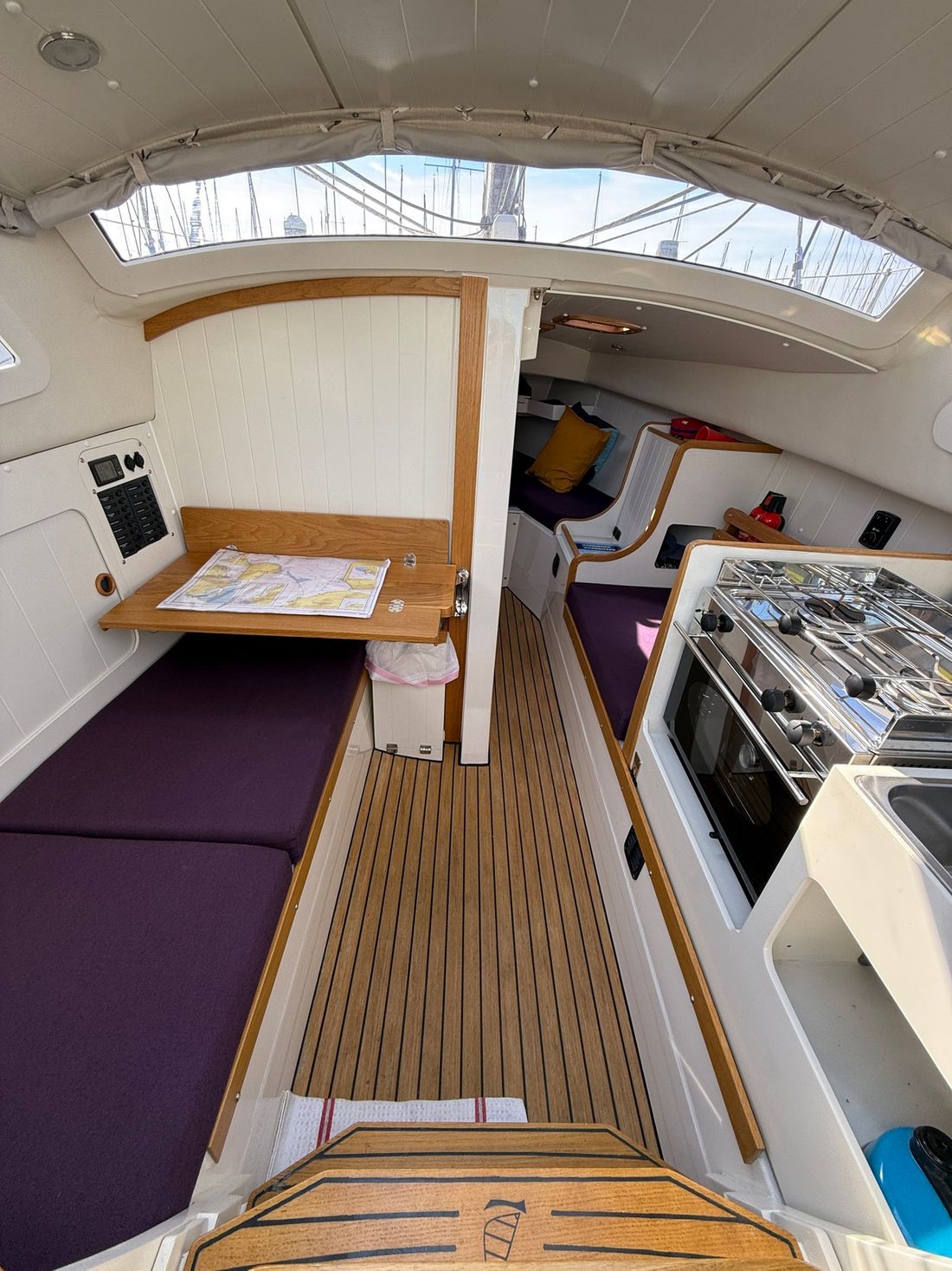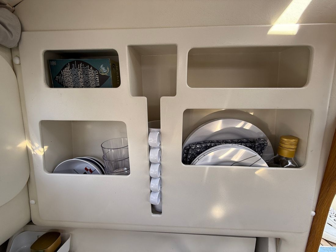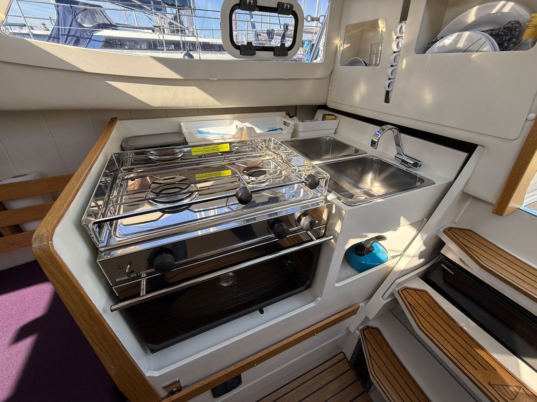 Spaces Saloon Decoration Type interior Modern, light Mattresses Cushions Curtains Water Water tank & material Capacity 80 litre Water tank material plastic Waste water tank material plastic Waste water tank Waste water tank gauge Waste water tank drainpump Deck suction Water system pressure Deck Shower Plumbing Number of showers 1 Toilets 1 Manual Kitchen Cooker & fuel Number 2 Cooking fuel gas Oven Amount 1 Fridge & power source Capacity 47 litre Power source electric Climate control Heating 1 hot air -
