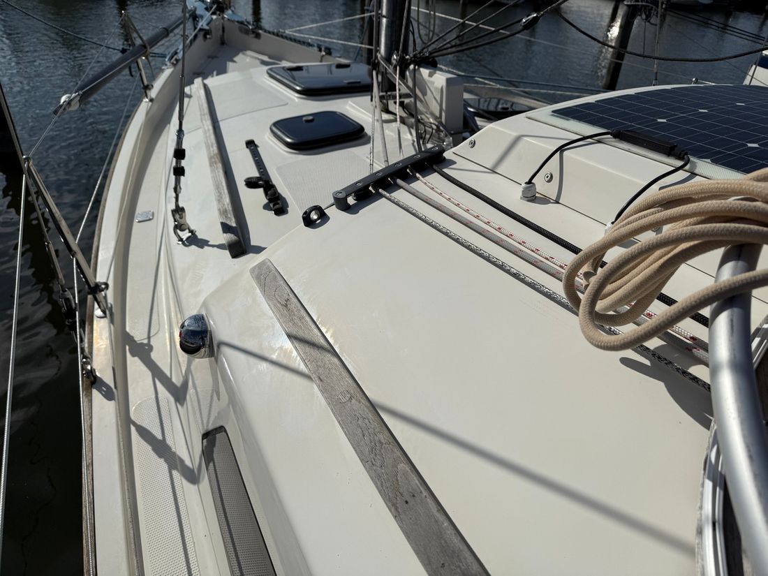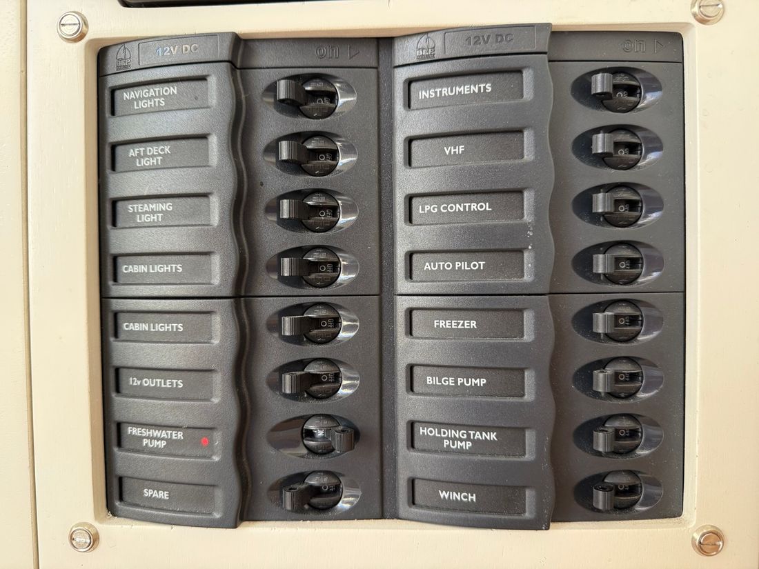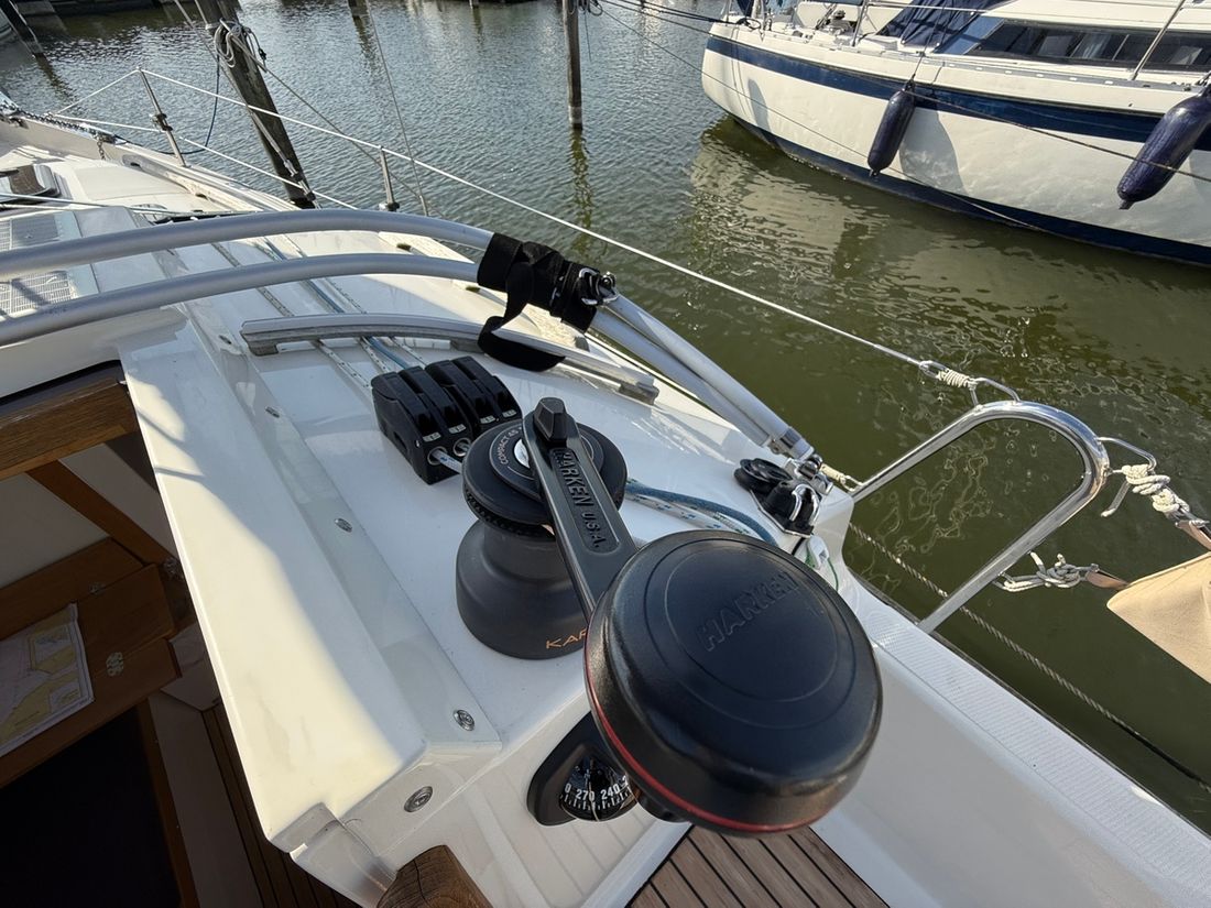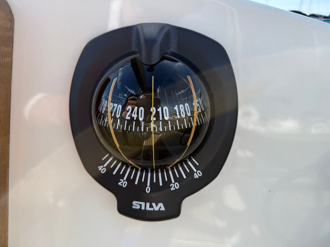 Basic tools Compass Brand kompas Silva Log/speed Brand log/speed Airmar Depth gauge Brand depth gauge Airmar Wind gauge Brand wind gauge Garmin Navigation lights Charts, guides Modern electronics Autopilot Brand autopilot Raymarine ST2000 tiller pilot GPS Chart plotter Brand chart plotter Garmin 723 plotter Communication VHF Brand VHF Icom -