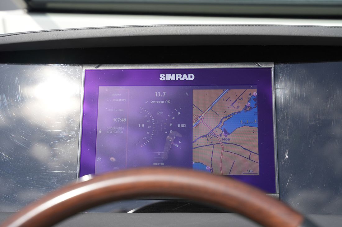 Basic tools Log/speed Brand log/speed Simrad 9" met vessel view Depth gauge Brand depth gauge Simrad 9" met vessel view Navigation lights Modern electronics GPS Brand GPS Simrad 9" met vessel view Chart plotter Brand chart plotter Simrad 9" met vessel view Brand fishfinder Simrad 9" met vessel view -