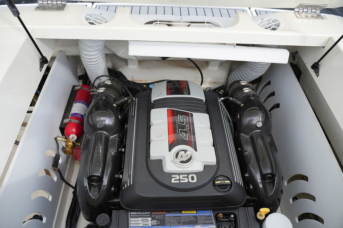 Engines Number of identical engines 1 Starting type electric Main engine Type inboard Brand Mercruiser Model 4.5 MPI 250 pk Bravo III DTS Year 2018 Number of cylinders 6 Power 250 hp Hours counter Engine hours 108 Fuel gasoline Drive Transmission stern drive Propulsion screw Comments Propulsion DUO PROP Cooling system direct Tank Fuel tanks Number 1 Total fuel tank(s) capacity 189 hp Fuel tank material polyethyleen Measuring instruments Fuel tank gauge Brand fuel tank gauge Simrad 9" met vessel view Tachometer Brand tachometer Simrad 9" met vessel view Temperature gauge Brand temperature gauge Simrad 9" met vessel view Electricity Battery Number 2 Voltmeter Brand Voltmeter Simrad 9" met vessel view 12V -