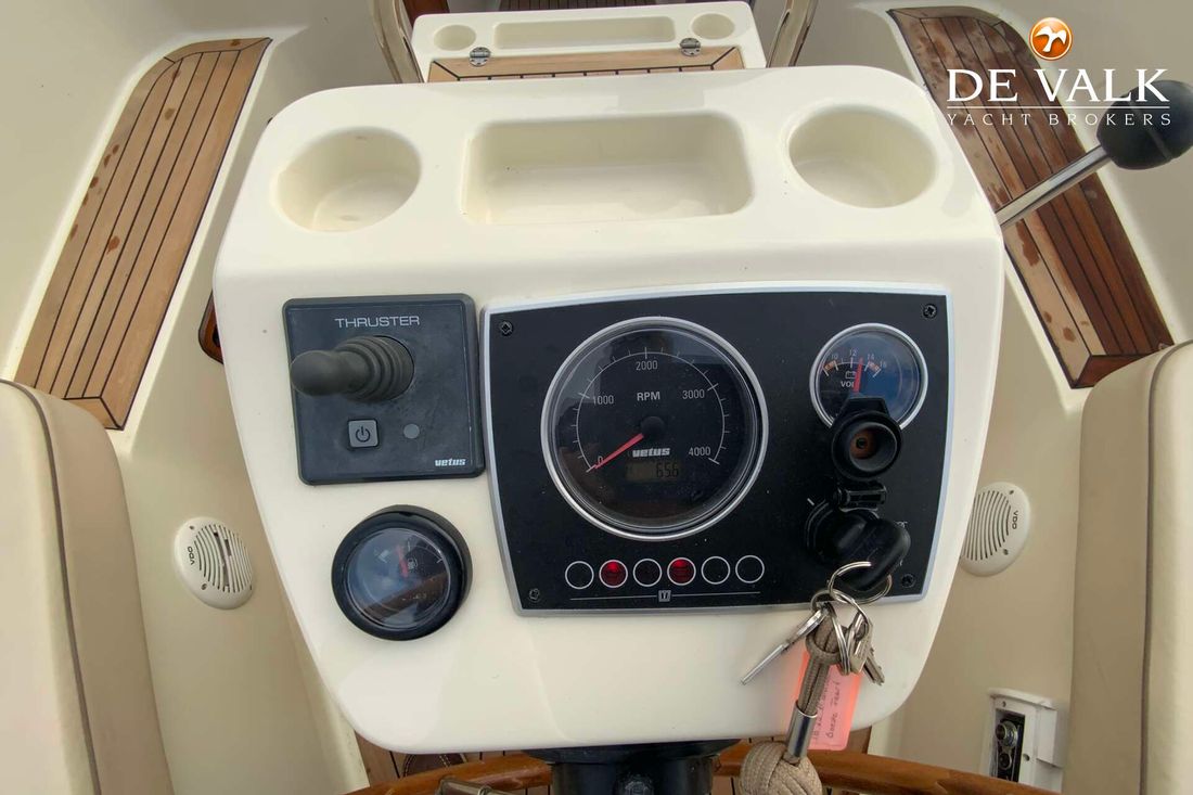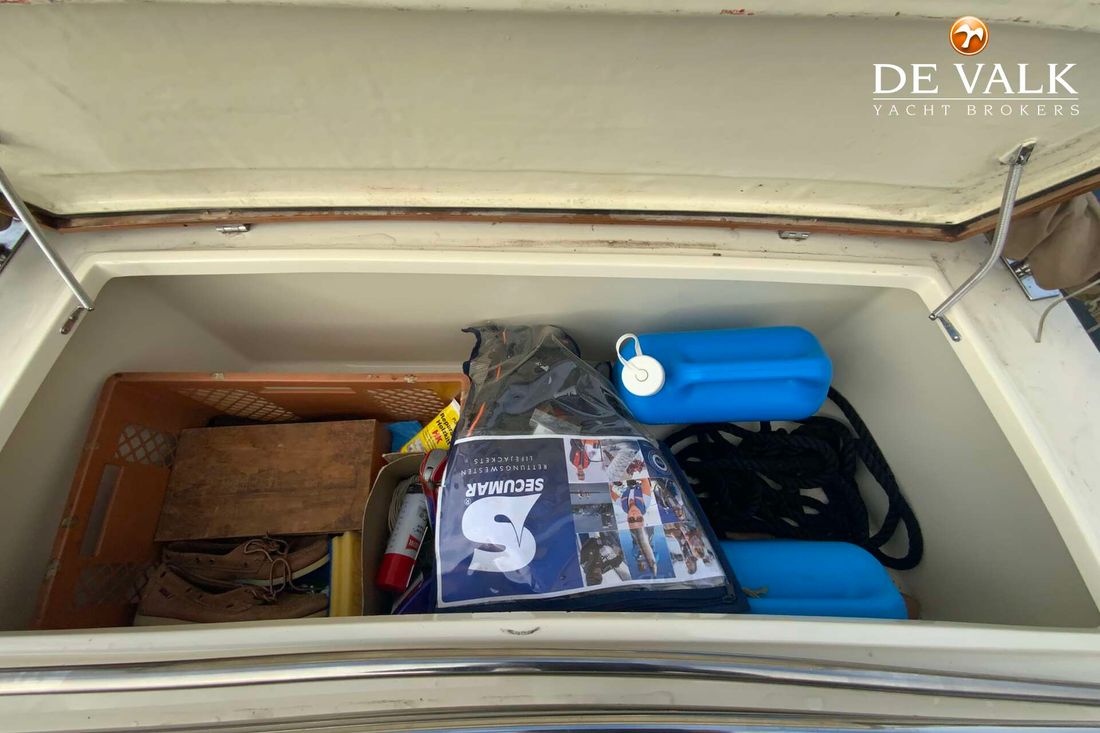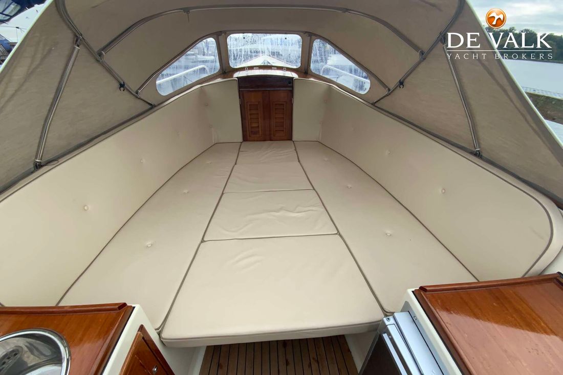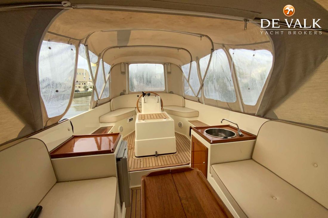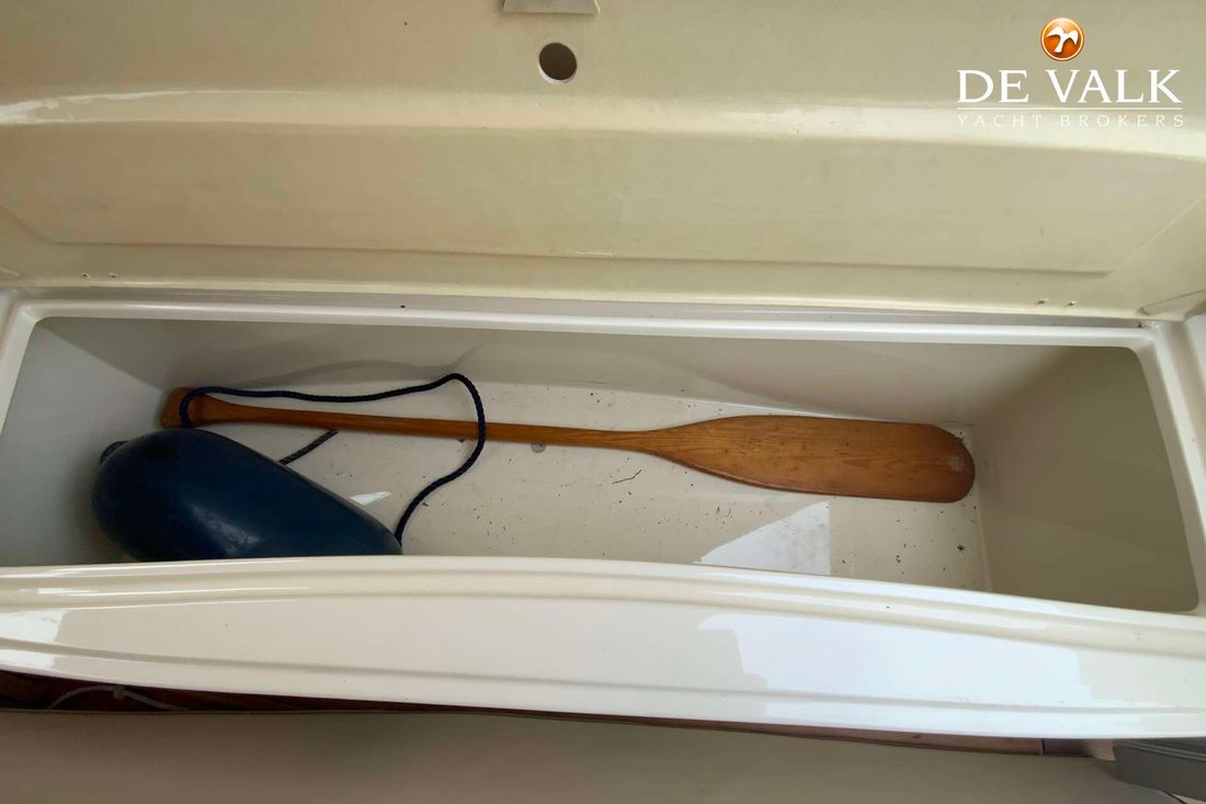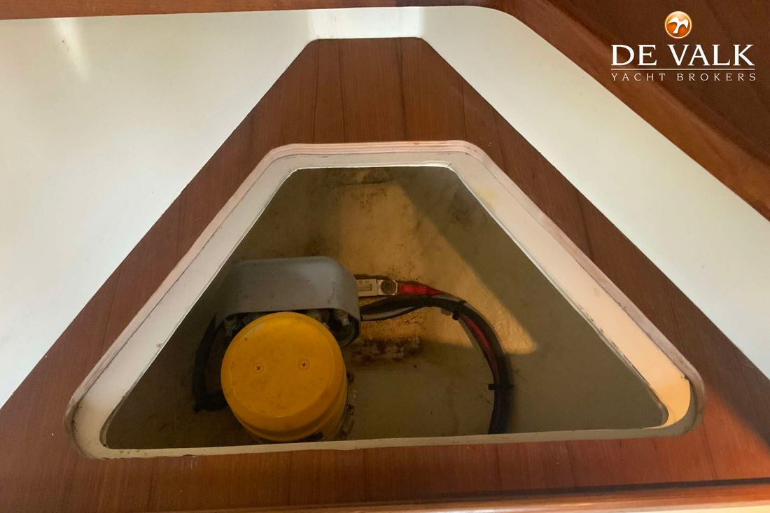 Attached wooden rudder, teak throughout, refrigerator, enclosed toilet, fuel-efficient diesel engine, sink, swim ladder, bow thruster, and a new sprayhood with a raised stern and bimini. This equipment also makes the "Goede Vaart" suitable for multi-day trips.