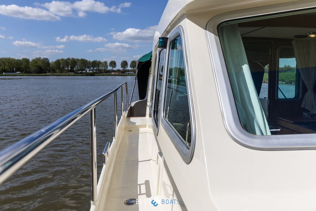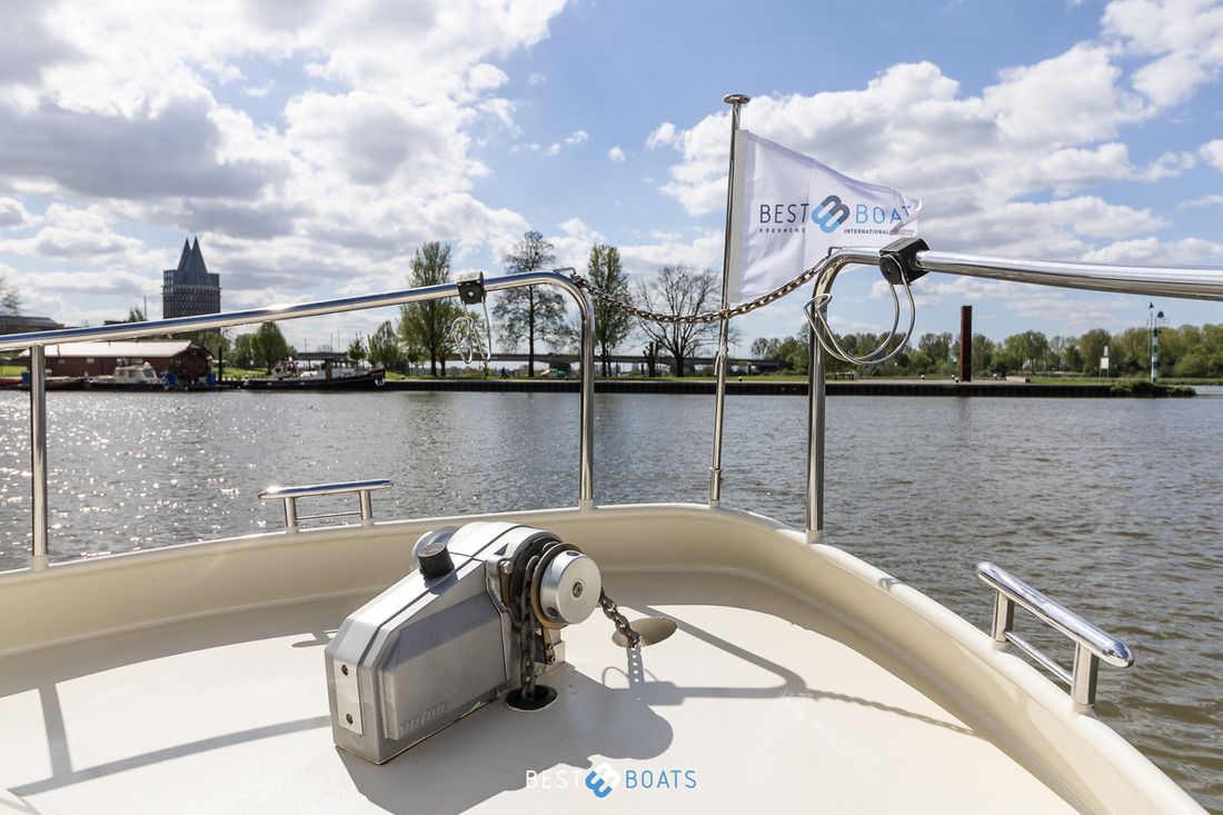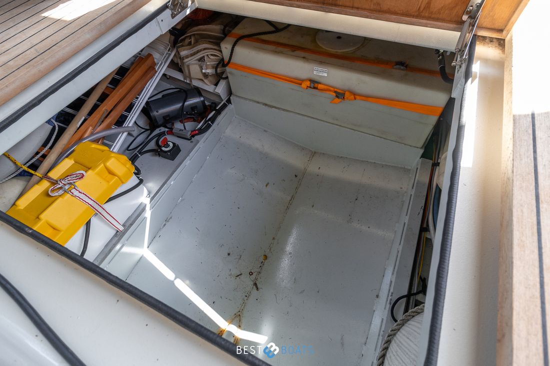 Anchor Anchors & material Comments Anchors & material 15 kg Galvanized Number 1 Anchors material galvanized Anchor connection chain Anchor windlass electric Comments Anchor windlass Vetus Deck equipment Cockpit tent Outdoor cushions Sea rails Comments Sea rails Completely stainless steel all around Swimming platform Comments Swimming platform Integrated into hull Swimming ladder Comments Swimming ladder Integrated in swim platform Miscellaneous Teak deck Fenders, lines Comments Fenders, lines Complete set -