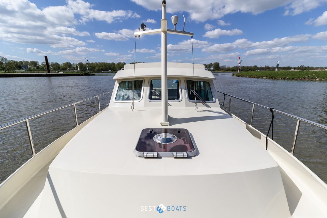 Engines Number of identical engines 1 Starting type electric Main engine Type inboard Brand Volvo Penta Comments Brand Volvo Penta is a leading manufacturer of marine engines and propulsion systems. The brand is known for its reliable and powerful engines for both recreational and commercial vessels. Volvo Penta delivers innovative technologies that improve vessel performance and efficiency. Model D2-55 Serial number 5103945792 Year 2006 Number of cylinders 4 Power 55 hp Hours counter Fuel diesel Brand gearbox ZF Hurth Drive Transmission shaft Propulsion propellor Cooling system indirect Comments Cooling system A Volvo Penta engine uses indirect cooling, where the engine is cooled by a separate coolant that transfers heat to seawater via a heat exchanger. Tank Fuel tanks Number 1 Total fuel tank(s) capacity 250 litre Fuel tank material steel Measuring instruments Fuel tank gauge Brand fuel tank gauge Wema Tachometer Brand tachometer Volvo Penta Oil pressure gauge Brand oil pressure gauge Geeft alarm wanneer oliedruk niet goed is Temperature gauge Brand temperature gauge Geeft alarm wanneer tempratuur te hoog is Bow and stern thruster Bow thruster electric Comments Bow thruster Vetus: The bow thruster can be operated with both the joystick and the remote control. The bow and stern thrusters are controlled with the same remote control, but the stern thruster doesn't have a joystick. Mobile remote control Comments Stern thruster Vetus, the stern thruster can only be operated with the remote control. Both the bow and stern thrusters can be operated with the same remote control. However, the stern thruster doesn't have a joystick, while the bow thruster does. Mobile remote control Electricity Battery Comments Battery 4x service 12V 105ah en 1x start 12V 105ah Number 5 Battery charger Comments Battery charger Mastervolt Mass Combi 12/2000-100 Capacity 100 Alternator Inverter Comments Inverter Mastervolt Mass Combi 12/2000-100 Capacity 2000 Shore power Shore power cable 12V 220V Control panel Mastervolt -