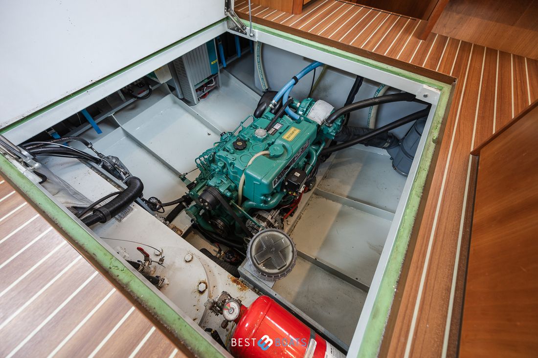 Engines Number of identical engines 1 Starting type electric Main engine Type inboard Brand Volvo Penta Comments Brand Volvo Penta is a Swedish brand known worldwide for its reliable and powerful marine engines and propulsion systems. They supply both diesel and gasoline engines for recreational and commercial vessels, focusing on innovation, sustainability, and ease of use. Model D2-75F Serial number 5103905908X Year 2014 Number of cylinders 4 Power 75 hp Hours counter Engine hours 840 Comments Engine hours The boat has relatively few engine hours for its age and therefore shows little wear and tear. Fuel diesel Fuel consumption 5 litre/hour Comments Fuel consumption Average diesel consumption depends on sailing speed, vessel load and conditions. Brand gearbox ZF25 Drive Transmission shaft Propulsion propellor Comments Propulsion Water-lubricated propeller shaft, 3-bladed propeller Cooling system indirect Comments Cooling system Indirect cooling is a cooling system where the engine is cooled via a heat exchanger, preventing external cooling water (e.g., river or seawater) from flowing directly through the engine. This prevents corrosion and extends the engine's lifespan. Tank Fuel tanks Number 1 Total fuel tank(s) capacity 240 litre Fuel tank material steel Performance Max speed 14 km/h Cruising speed 11 km/h Measuring instruments Fuel tank gauge Brand fuel tank gauge Wema Tachometer Comments Tachometer (acoustic and optical) Brand tachometer Volvo Penta Oil pressure gauge Comments Oil pressure gauge (acoustic and optical) Brand oil pressure gauge Volvo Penta Temperature gauge Comments Temperature gauge (acoustic and optical) Brand temperature gauge Volvo Penta Bow and stern thruster Bow thruster electric Comments Bow thruster Vetus, 12V 55KGF (3kw/4ps) with remote control Mobile remote control Stern thruster electric Comments Stern thruster Vetus, 12V 55KGF (3kw/4ps) with remote control Mobile remote control Electricity Battery Comments Battery 5x 12V 125Ah Heavy Duty Number 5 Battery charger Comments Battery charger Mastervolt Mass Combi 12/2000-100 Capacity 2000 Alternator Comments Alternator Dynamo on engine Capacity 115 Inverter Comments Inverter Mastervolt Mass Combi 12/2000-100 Capacity 100 Voltmeter Comments Voltmeter (acoustic and optical) Shore power Shore power cable 12V 220V -