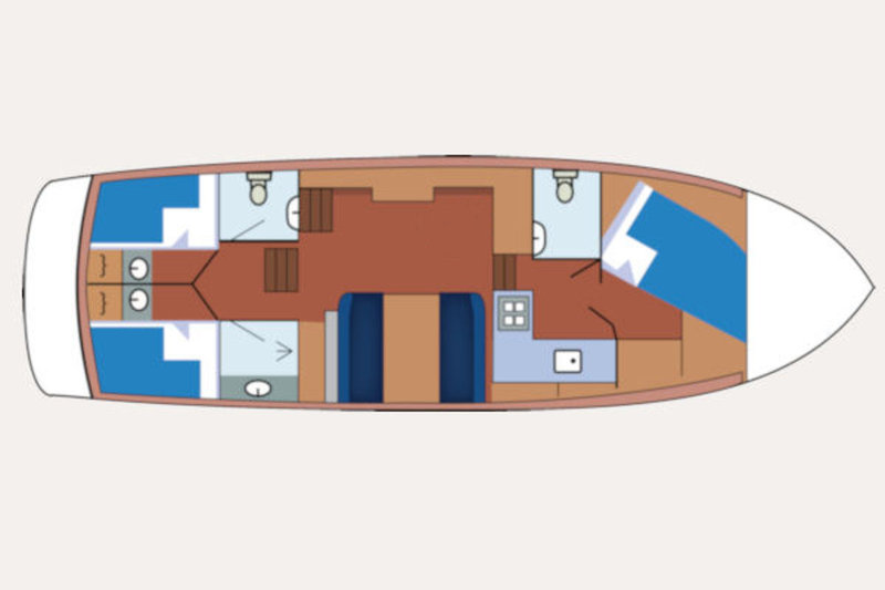 Als u voor de eerste keer een boot huurt en geen ervaring hebt is de Carla, onder andere vanwege haar geringe afmetingen, een mooie boot om het varen te leren. De boot beschikt over boeg- en hekschroeven en dat maakt het manoeuvreren, in bijvoorbeeld een drukke haven, een stuk eenvoudiger. Maar ook als u vaker gevaren hebt en met maximaal 8 personen wilt huren is de Carla een goede keus. Met haar lengte van 11.00 meter en breedte van 4.05 meter vindt u altijd wel een mooie ligplaats in een haven of ergens “in the middle of nowhere”. Ook in het drukkere hoogseizoen.