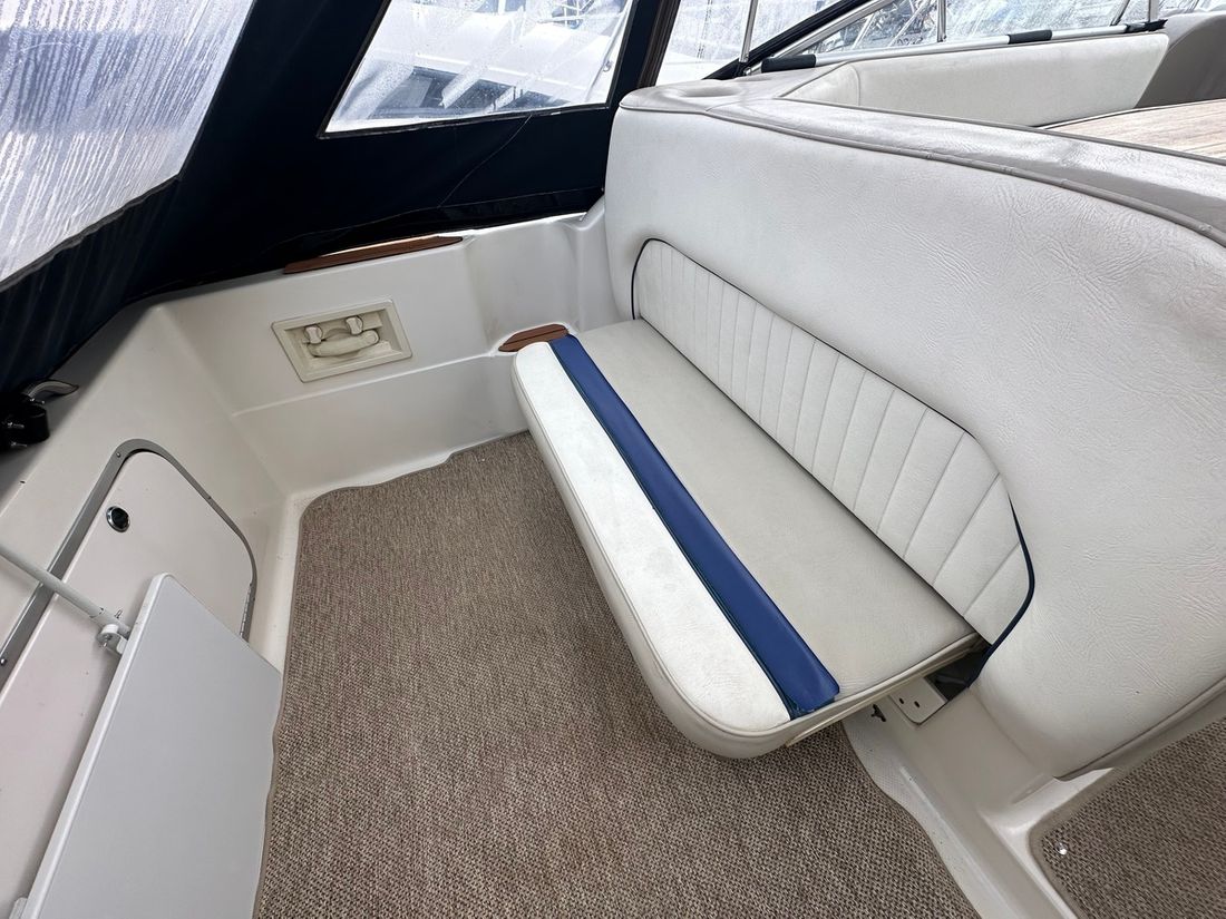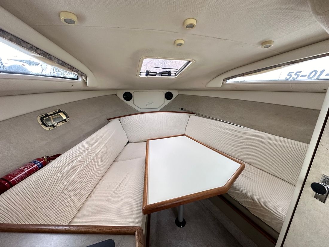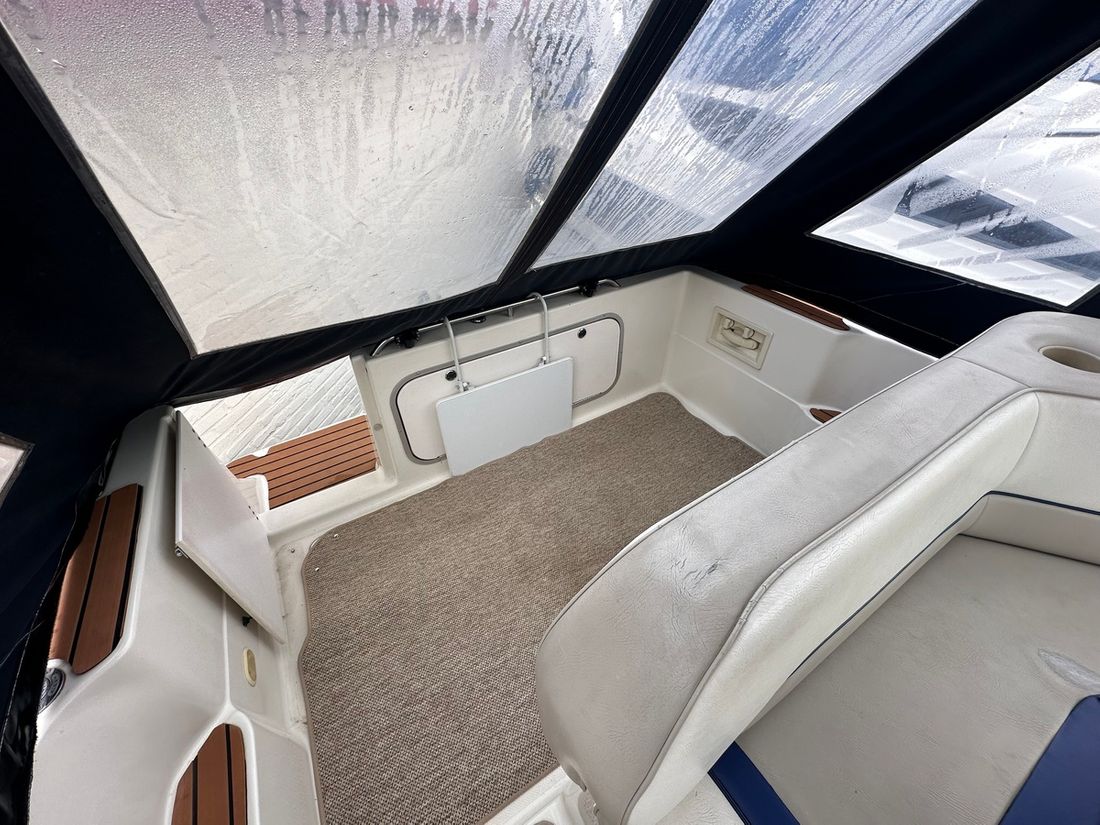 Motorisatie Aantal identieke motoren 1 Start type elektrisch Hoofdmotor Type binnenboord Merk Mercruiser Model 5,7 LX Serienummer OF795658 Aantal cilinders 8 Vermogen 233 pk Brandstof benzine Aandrijving Overbrenging hekdrive Voortstuwing schroef Koeling indirect Tank Brandstoftank aantal Aantal 1 Meetinstrumenten motor Brandstoftankmeter Toerenteller Oliedrukmeter Temperatuurmeter Boeg- en hekschroef Boegschroef elektrisch Opmerkingen Boegschroef 45KG/F met afstandsbediening ( 2018 ) Elektriciteit Accu Opmerkingen Accu 1 x 180 AH ( 2018 ) Acculader Voltmeter Walstroom 12V Bedieningspaneel Ja -