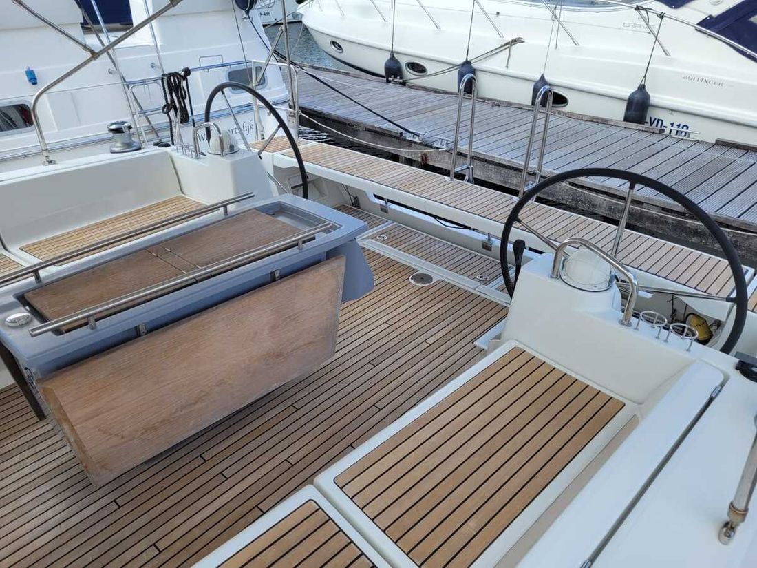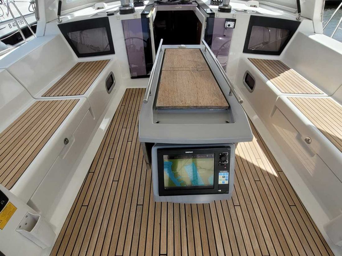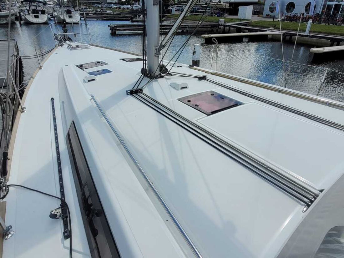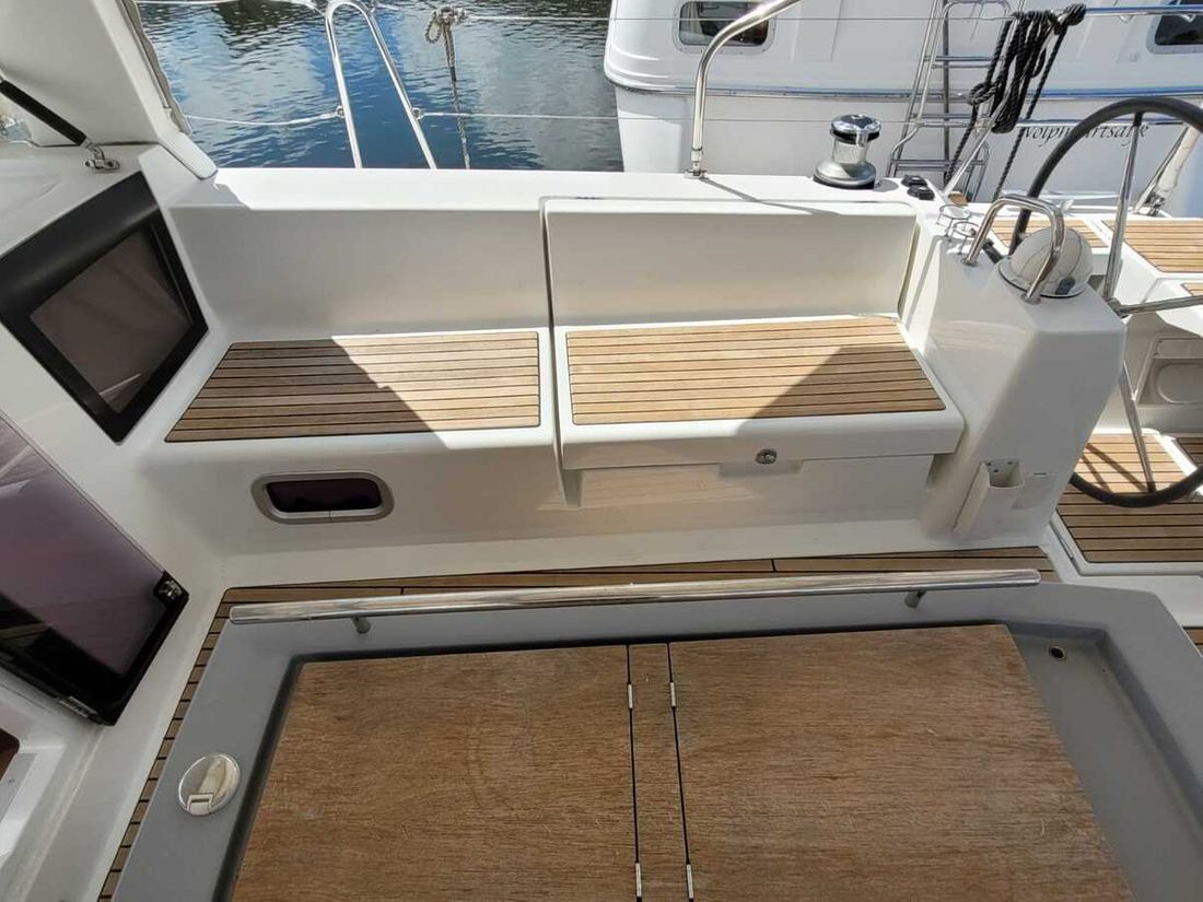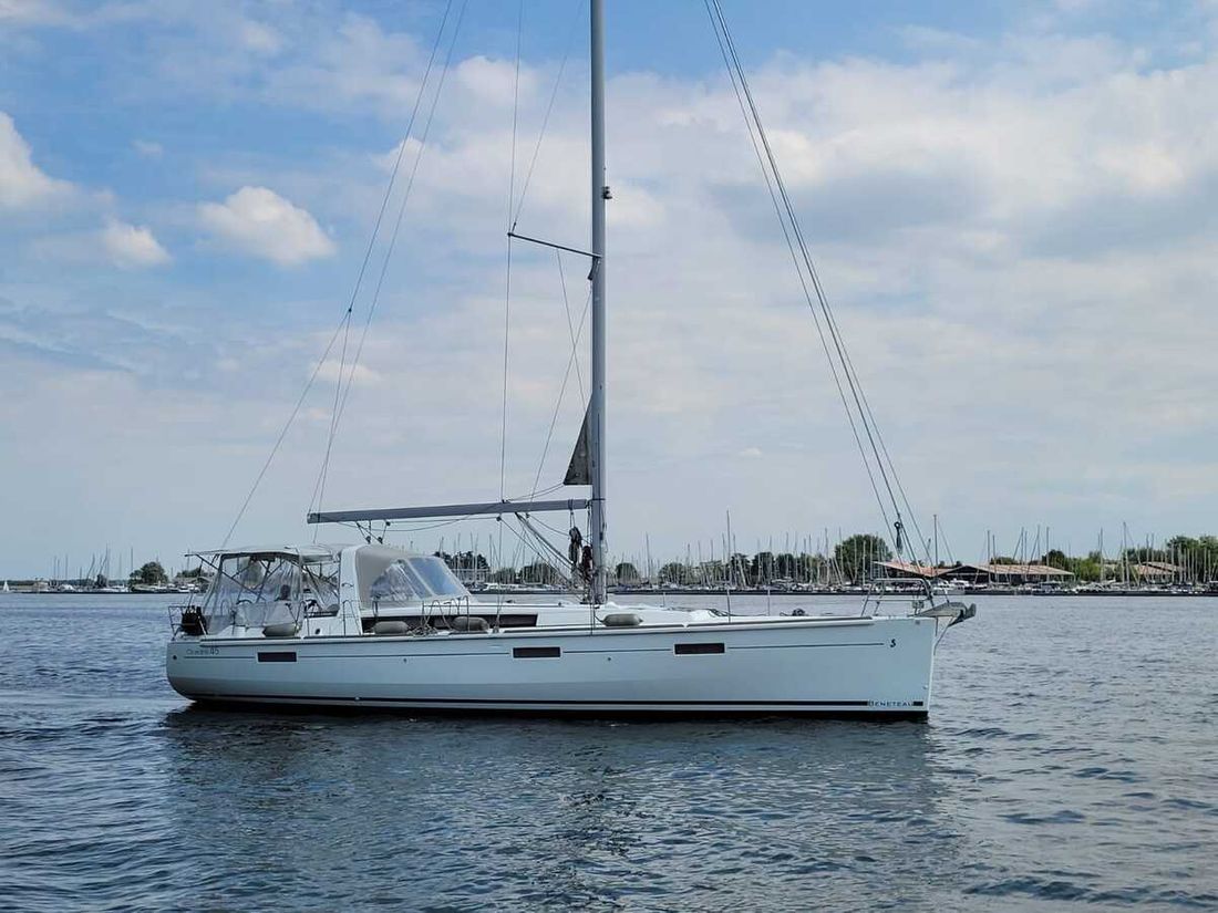Nieuw geleverd Ontwerper Chantiers Beneteau SA Werf SPBI S.A. Bouwnummer 178 CE A CE max motor 39 kW CE aantal opvarenden 10 Romp, dek en opbouw Rompvorm rondspant Rompkleur wit Dek en opbouw kleur wit Dek en opbouw materiaal polyester Kuip achterkuip Afmetingen en gewichten Diepgang maximaal 175 kW Diepgang minimaal 175 kW Waterverplaatsing 10549 kg Besturing en driftbeperking Besturing stuurwiel Plek besturing buiten Roer enkel Kiel/zwaard vaste kiel -