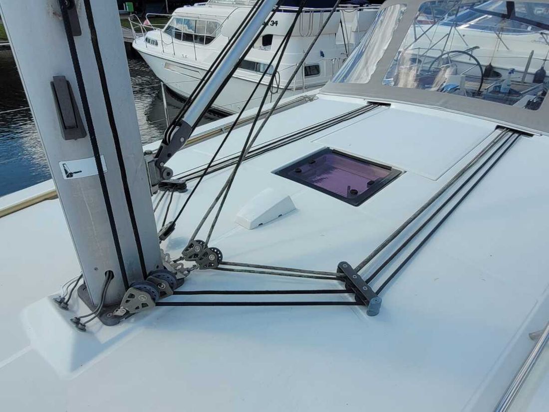 Algemeen Type tuigage sloep Aantal masten 1 Mast materiaal aluminium Verstaging staaldraad Aantal zeilen 3 Zeilen materiaal dacron Groot- en achterzeilen Rolgrootzeil Opmerkingen Rolgrootzeil origineel van 2013 Voorzeilen Voorzeil rolsysteem Opmerkingen Voorzeil rolsysteem Rolgenua Halfwinder, bollejan Opmerkingen Halfwinder, bollejan Code Zero van 2013 Lieren Aantal 3 Aantal 1 -
