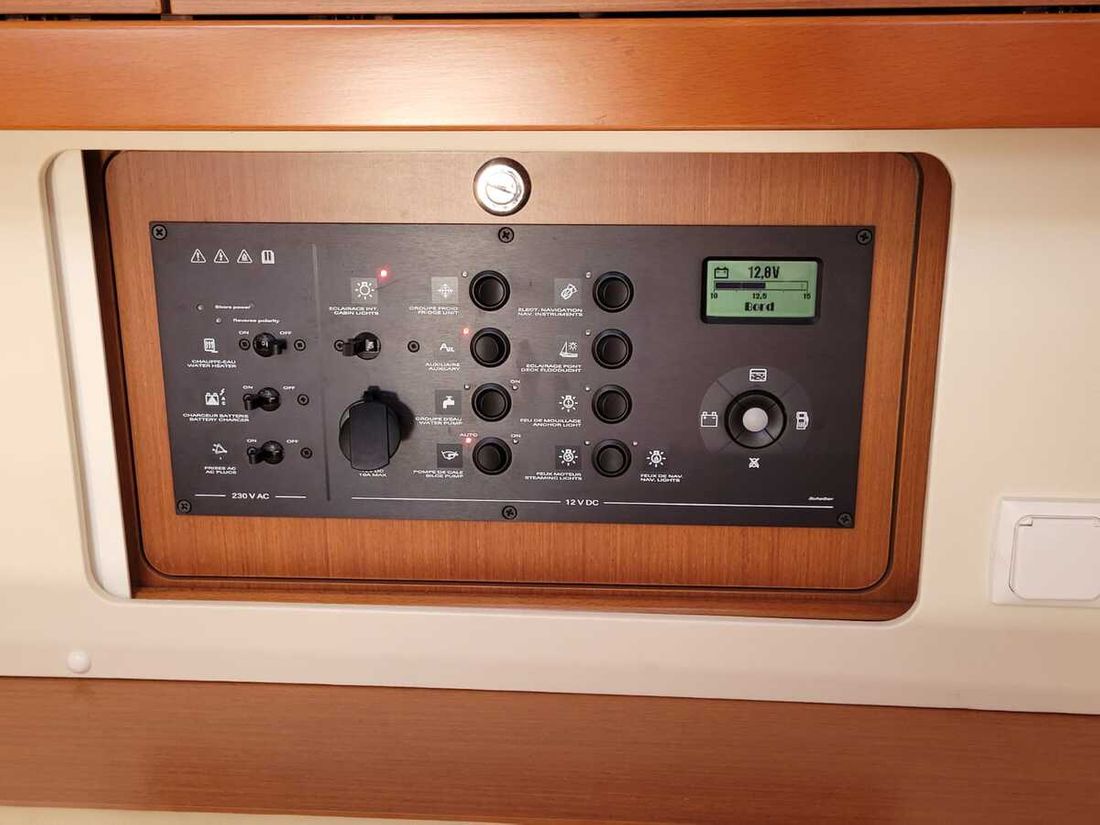 Motorisatie Aantal identieke motoren 1 Start type elektrisch Hoofdmotor Type binnenboord Merk Yanmar Model 4JH5E Serienummer E14201 Bouwjaar 2013 Aantal cilinders 4 Vermogen 54 pk Urenteller Draaiuren 102 Brandstof diesel Verbruik 3 liter/uur Aandrijving Overbrenging saildrive Voortstuwing schroef Koeling indirect Tank Brandstoftank aantal Aantal 1 Totale inhoud brandstoftank(s) 200 liter Materiaal brandstoftank Polyethyleen Meetinstrumenten motor Toerenteller Merk toerenteller Yanmar Oliedrukmeter Merk oliedrukmeter Yanmar Temperatuurmeter Merk temperatuurmeter Yanmar Boeg- en hekschroef Boegschroef elektrisch Elektriciteit Accu Opmerkingen Accu De batterijen zijn functioneel, maar niet met een diagnoseapparaat getest. De exacte staat is onbekend. Aantal 3 Acculader Opmerkingen Acculader werking via walstroom of motor Voltmeter Walstroom Walstroomkabel 12V 220V -
