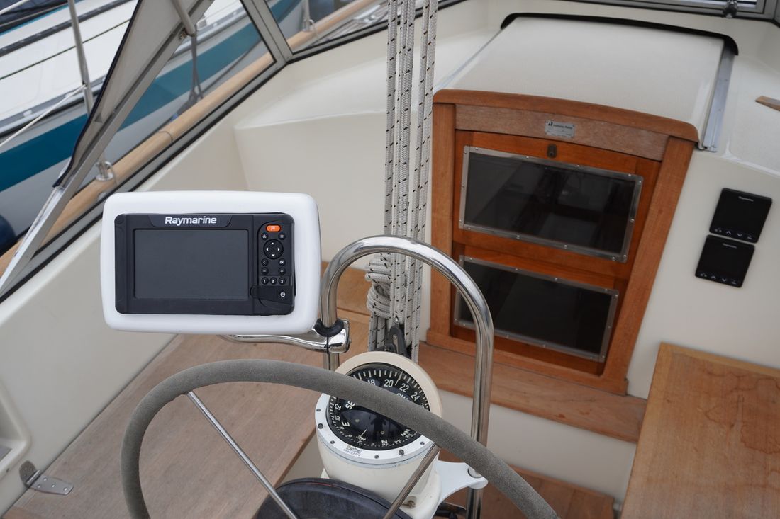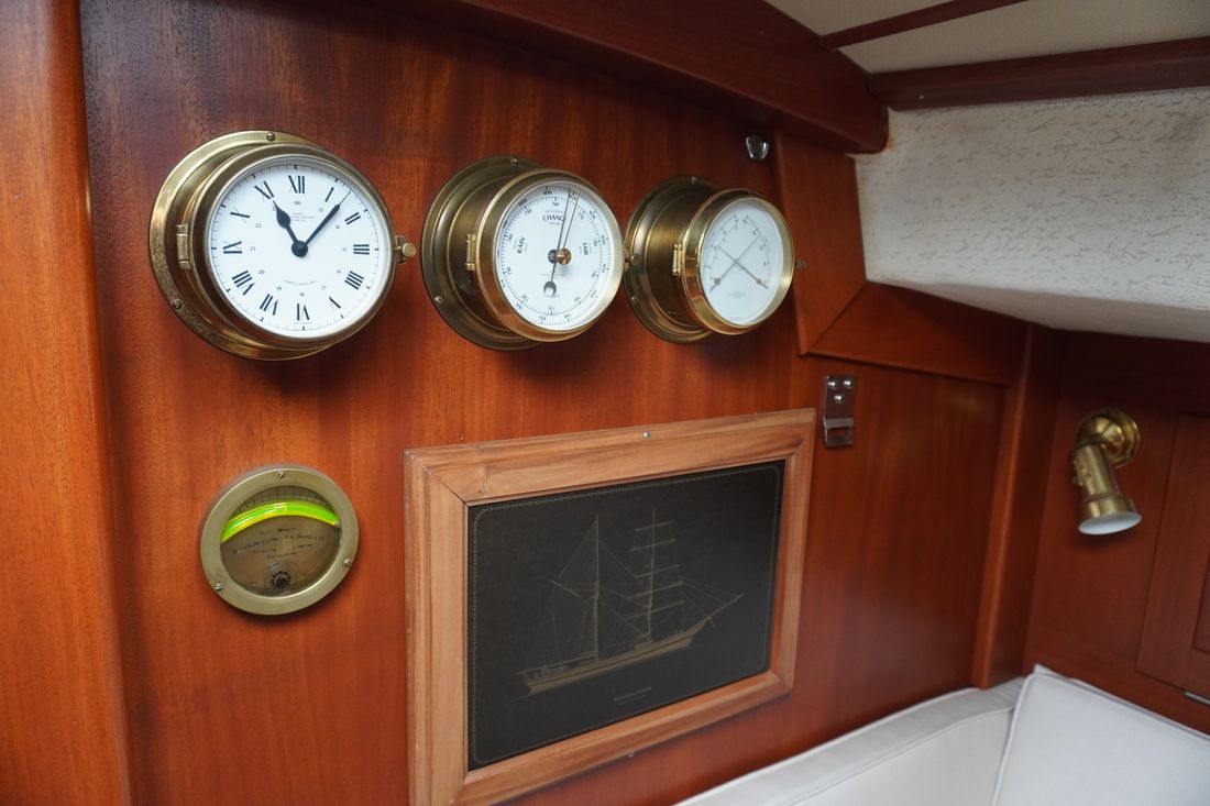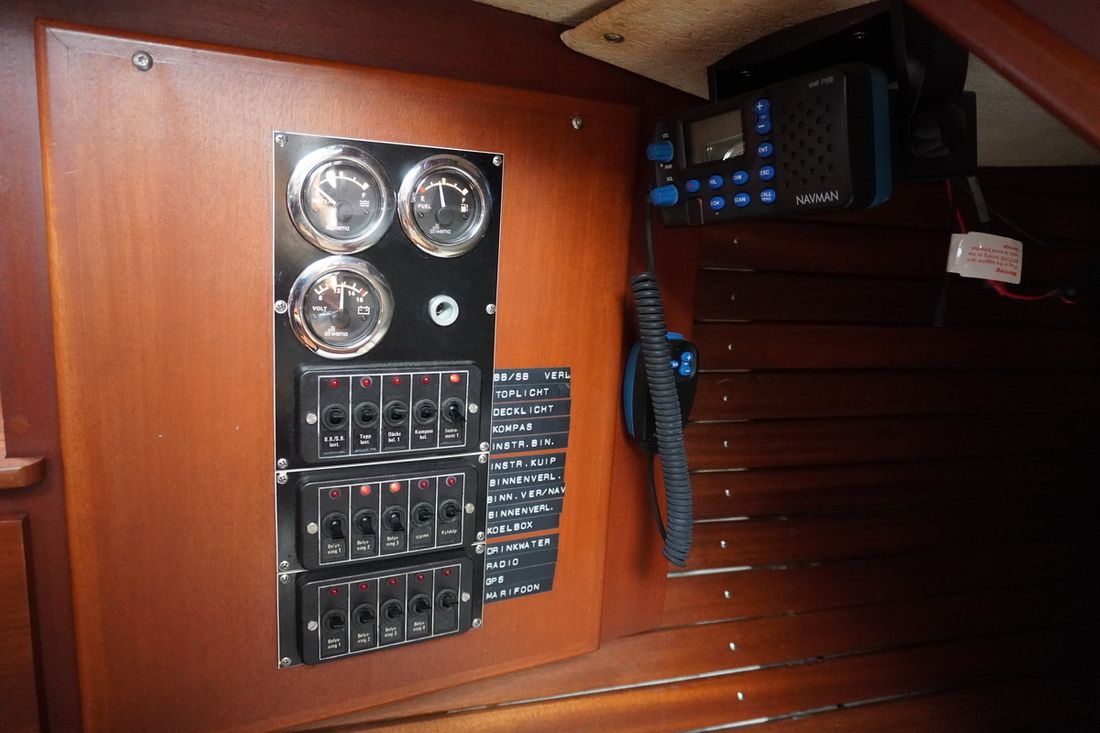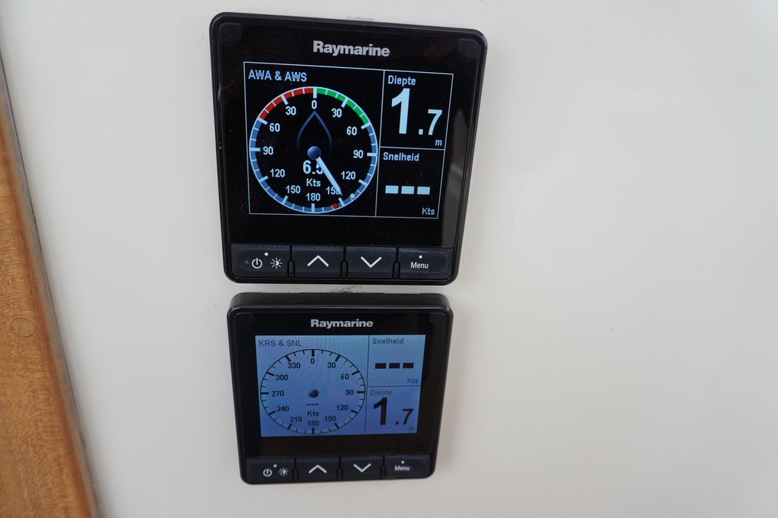 Basishulpmiddelen Kompas Merk kompas Sestrel Log/snelheid Merk log/snelheid Raymarine I70 Dieptemeter Merk dieptemeter Raymarine I70 Windmeter Merk windmeter Raymarine I70 Navigatieverlichting Moderne elektronica Autopilot Merk autopilot Autohelm ST4000 met afstandbediening Kaartplotter Merk kaartplotter Raymarine ITC5 Communicatie Marifoon Merk marifoon Navman VHF 7100 -