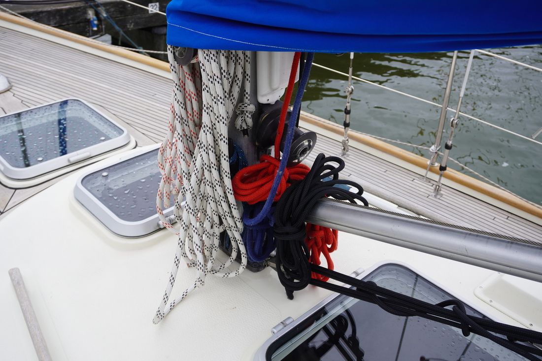 Algemeen Type tuigage masttop Aantal masten 1 Mast materiaal aluminium Opmerkingen Mast materiaal Selden Verstaging staaldraad Zeiloppervlak 55 m² Aantal zeilen 4 Zeilen materiaal dacron Merk Miedema/ Schokker Groot- en achterzeilen Grootzeil Zeilmaker 2x (Miedema, Schokker) Voorzeilen Genua Merk Genua 2x( Miedema en Schokker) Voorzeil rolsysteem Merk Voorzeil rolsysteem Furlex Lieren Lieren 2x Enkes 22S en 3x Lewmar -