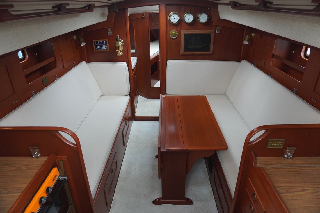 Nieuw geleverd Ontwerper Olle Enderlein Werf Hallberg Rassy Zweden Bouwnummer 163 Romp, dek en opbouw Rompvorm semi s-spant Rompkleur wit Dek en opbouw kleur wit Dek en opbouw materiaal polyester Kuip achterkuip Ramen polycabonaat Afmetingen en gewichten Waterverplaatsing 4900 kg Besturing en driftbeperking Besturing stuurwiel Opmerkingen Besturing kabels Roer enkel Kiel/zwaard doorlopende kiel -