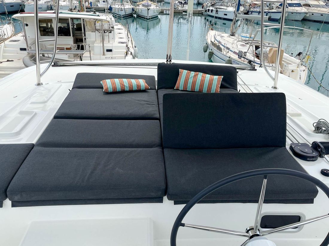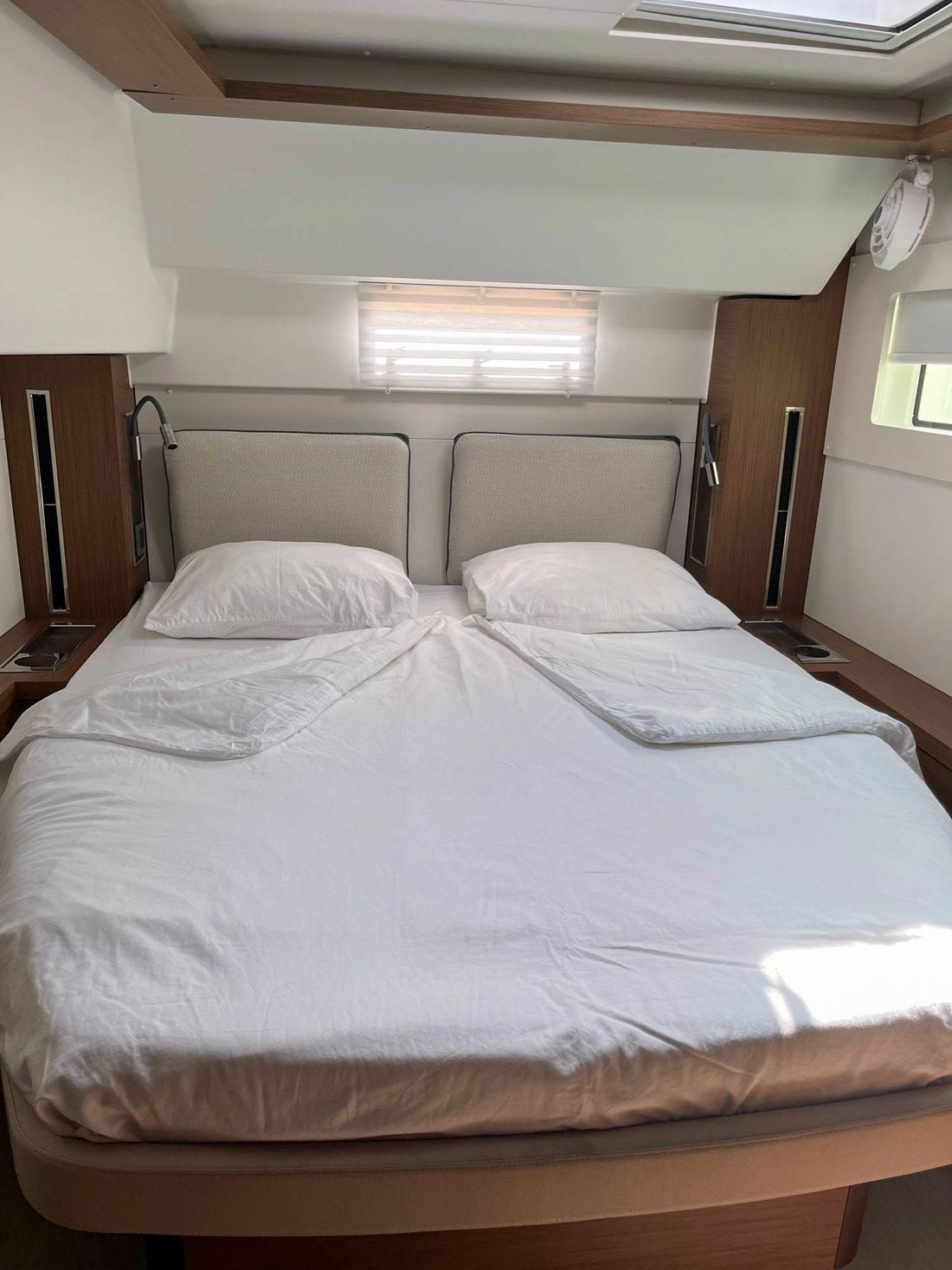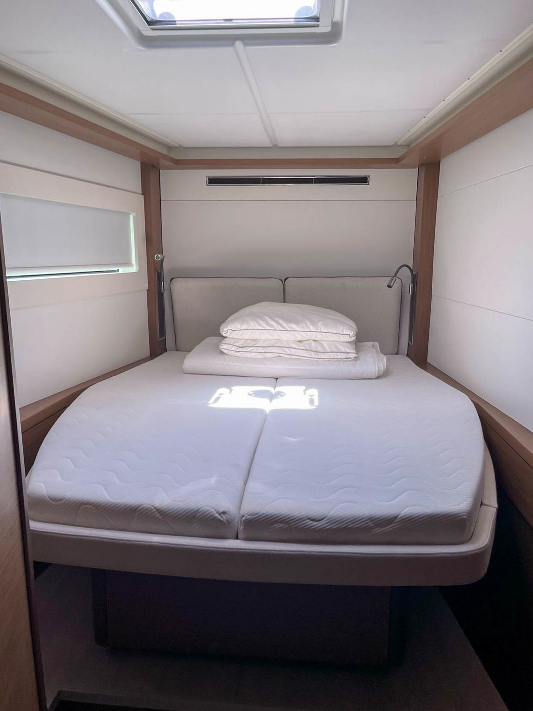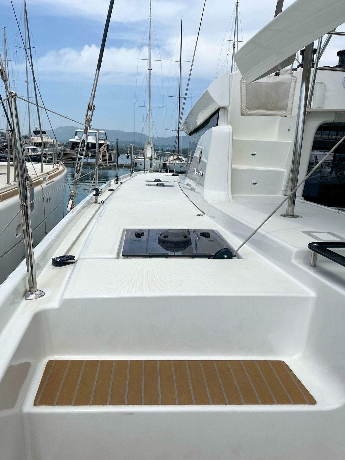 LAGOON 46 OWNERS VERSION, FULLY EQUIPPED - LIKE NEW! VERSION 3 CABINS, 3 HEADS ELECTRICAL Version 220 V 50 Hz Interior wood in Alpi Walnut with Asburgo floor ELEGANCE LINE - ALPI WALNUT Fabric headlining, Bed valance in fabric, Leather & s/steel accessories at bedhead, Leather and s/steel storage at bedhead, Bedhead in fabric, Leather finishing in bookshelf, Leather finishing on salon sides, Grey composite finishing in Galley furniture, Corian finishing in showers FOR 3-CABIN VERSION COMFORT EQUIPMENT CONFIGURATION - Alpi Walnut 1 battery charger 40Amp + 1 battery charger 60Amp 3 additional service batteries 140A + battery controller Electrical circuit 220V Deck courtesy lights in cockpits, transoms and flybridge Indirect lighting in cabins and salon USB sockets in salon and cabins Extra fridge 90L/ freezer 65L at starboard (drawers) S/steel dinghy hoist system & manual winch Electrical manoeuvre winch 50.2 STEA Deck wash pump sea water / fresh water Sea water electrical pump, with dedicated tap Freshwater dock inlet Owner's head: Helm seat - dark grey Port hole and window in aft cabins with blind Pulpits with wooden seats Fusion RA70N + 6 loudspeakers in salon, cockpit and fly Navigation pack B&G 2020 INTERIOR UPHOLSTERY (salon & settees)GRAND COMFORT MARBLE ADDITIONAL GRAND COMFORT MARBLE STOOL AFT COCKPIT CUSHIONS FORWARD COCKPIT CUSHIONS SUNBATH CUSHIONS WITH LIFTING BACKREST FOR FLYBRIDGE LAZY BAG FOR STANDARD ALUMINIUM BOOM ? GRAPHITE SAILS NEW UPGRADED nORTH SAIL SAILS UPGRADERD BOOM FURLING SYSTEM CODE 0 RIG AND POLE & FURLER ALL ELECTRIC FLYBRIDGE WINCHES IN LIEU OF STANDARD + FLATWINDER FOR MAINSAIL TRAVELLER EXTRA FOR DACRON SQUARE TOP MAINSAIL 4 UNDER WATER SPOT LIGHTS FOLDING CARBON GANGPLANK 2,60m / 8,53ft WITH COVER + 2 SOCKETS ICE MAKER 220V IN COCKPIT TENDERLIFT PLATFORM WITH FOLDING WINGS SINK IN THE COCKPIT - ALPI WALNUT LARGE FOLDABLE TEAK TABLE WITH COVER ? GRAPHITE EXTRA FOR SLIDING COCKPIT BENCH 12V COCKPIT FRIDGE 80L / 21US Gal COCKPIT SIDES & AFT SUN CANVAS - GRAPHITE SIDES AROUND AFT COCKPIT WITH WINDOWS ? GRAPHITE FLYBRIDGE COMPOSITE BIMINI WITH WINDSCREEN WINDLASS REMOTE CONTROL AT HELM STATION WITH CHAIN COUNTER HELM STATION COVER ? GRAPHITE SIDES AROUND COMPOSITE BIMINI WITH WINDOWS ? GRAPHITE ENGINES upgrade from 2 x 45 HP to 2 x 57 HP (Yanmar 4JH57) ELECTRONIC ENGINE THROTTLES AT HELM STATION - YANMAR 4JH57 PAIR OF 3-BLADES FOLDING PROPELLERS FOR YANMAR 4JH57 ONAN GENSET 11Kva 220V / 50Hz + COCOON AGM DUAL BATTERIES IN LIEU OF ACID BATTERIES INVERTER 12 / 220V - 2000VA WATERMAKER 100L (26US Gal)/H 12/220V QUIET FLUSH ELECTRIC TOILETS FOR 3-CABIN VERSION DOUBLE BERTH IN SALOON SMART SHARK LARGE SLIDING FORWARD ROOF WINDOW FANS IN SALON AND CABINS MICROWAVE OVEN WITH GRILL 220V DISH-WASHER 220V (6 crockery set) EXTRA FOR FORCE 10 STAINLESS STEEL OVEN EXTRA FOR FORCE 10 4 BURNER COOCKING TABLE ROLLER BLINDS (cabins) FOR 3-CABIN VERSION UNDER BED SLATS, FOR 3-CABIN VERSION REVERSE CYCLE CRUISAIR AIR CONDITIONING 220 V ZEUS 3 16" DISPLAY AT HELM STATION WITH POD ZEUS 3 12" DISPLAY AT NAV. STATION WITH LEATHER AUTOPILOT REMOTE B&G (Essential Equipment compulsory) 2 B&G CAMERAS UNDER FLYBRIDGE AIS 500 B&G TRANSCEIVER WITH ANTENNA COUPLING RADAR B&G 20G (display and VHF compulsory) VHF B&G V90S WIRED SINGLE HANDSET 2nd H50 WIRELESS HANDSET FOR VHF V90S READY TO SAIL - CHIC AND CHILL IN (Classic) READY TO SAIL - CHIC AND CHILL OUT (Classic) ENGLISH OWNER'S MANUAL LAUNCHED, RIGGED (4 dock lines, 6 fenders, diesel, anchor set) CODE 0 IN CZ MATERIAL LOGO BLUEFISH IN THE CODE 0 (2 SIDES) ELECTRICAL BOWTHRUSTER 24 VOLT + BATTERIES AND BATTERIE CHARGER ATLANTIC LIFERAFT IN CONTAINER 8 PERSONS (45 KG) FLEXITEEK ON BATHING PLATFORM COCKPITFLOOR AND FORWARD COCKPITFLOOR PEPWAVE BR1 MINI 4G ROUTER WITH DUAL SIM OPTION AND EXTERNAL ANTENNA'S PLUS WIFI ACCES POINT TEAK OIL TREATMENT (2x) ON THE COCKPITTABLE MANTUS 38 KG ANCHOR WITH SS SWIVEL HIGHFIELD CLASSIC 340 DeLUXE WITH HONDA BF20LRTU AND INCLUSIVE A CUSTOMIZED COVER EXTRA HANDRAILS ON TOP OF BIMINI TO GET EASY ACCESS WASHMACHINE IN THE FORWARD COMPARTMENT ON STARBOARD EXTRA PLU 220 VOLT IN OUTSIDE GALLEY EXTRA SHELF UNDER THE WASHBASIN IN THE GALLEY TRANSFORMATION OF 3 TOILETS FOR FRESH WATER FLUSHING Fresh water toilet system 12V ANCHOR CHAIN CONNECTOR GALVANIZED 6-8mm LEAD CHAIN GALVANIZED 8mm WINCH HANDLE POCKET ANCHOR FORTRESS FX37 plus STOWAWAY BAG FX37 ENGINE ROOM AUTOMATIC EXTINGUISHER ENSEMBLE AUTOMATIC EXTINGUISHER WITH CABLE FOR MANUAL UTILISATION The catamaran is ready and equipped to sail around the world and has been regularly maintained and serviced. Elektronische navigatie-instrumenten: AIS (B&G), Dieptemeter (B&G), GPS (B&G), Log (B&G), Navtex (weerschrijver), Autopiloot (B&G), Kaartplotter (B&G), Radar (B&G), Marifoon (B&G), SSB, Windmeter (B&G). Technische- en dekuitrusting: Alternator, Anker (Mantus anker - Galvanized), 7 Accu's, Acculader (100 A - 1x40 A + 1x60 A), Trailer, Buitendouche (deck), Windgenerator, Zonnepanelen, Platform (2x), Handmatige bilgepomp, Teakdek, Walaansluiting 230V, Elektrische ankerlier, Zwemtrap, Stabilisatoren, Kuiptafel, Bijboot (Highfield - 20 hp), 5 Elektrische lier, Hydraulische lier. Huishoudelijke apparatuur aan boord: Airconditioning (Reverse Cycle Cruisair Air Conditioning), Warmwater boiler, Satellietinternetverbinding, Watermaker (100 l/h), Omvormer (2000 Watt), 3 Elektrisch toilet. Veiligheidsuitrusting: Navigatiekaarten, Reddingsvesten, Signaalraketten, Reddingsboei. Vermaak: Blu-ray, Radio AM/FM, Satelliet ontvanger. Keuken & Apparatuur: Vriezer (65 l), 4 Fornuis (Gas), Koelkast (90 l). Bekleding: Bimini (Hardtop), Kuiptent, Kussens, Boothoes. Opmerkingen over accessoires: Specs > Navigatie en elektronica ? Roerstandaanwijzer: ? Specs > Tuigage ? Type tuigage: Sloep ? Boegspriet: ? ? Boegspriet type: Vast ? Verstaging: Staaldraad ? Aantal zeilen: 3 ? Meer info grootzeil: Furling boom with new upgraded North Sail ? Rolgrootzeil: ? ? Meer info rolgrootzeil: Furling