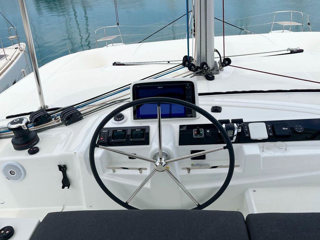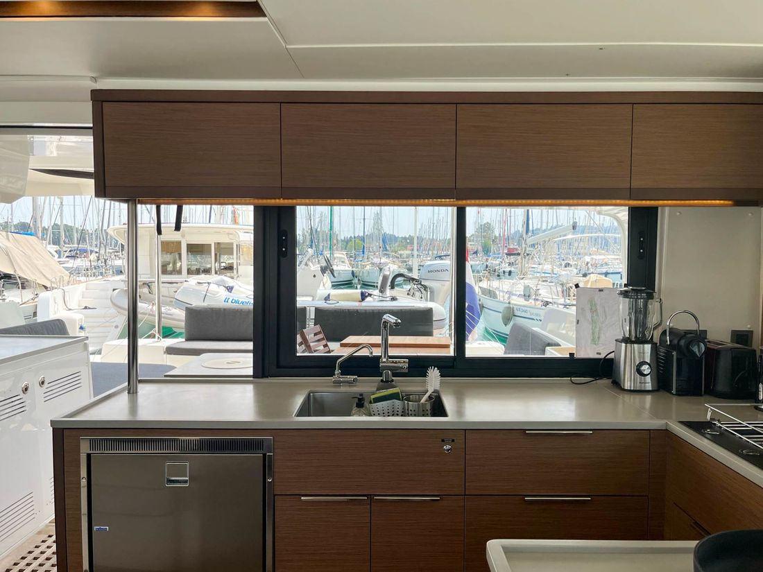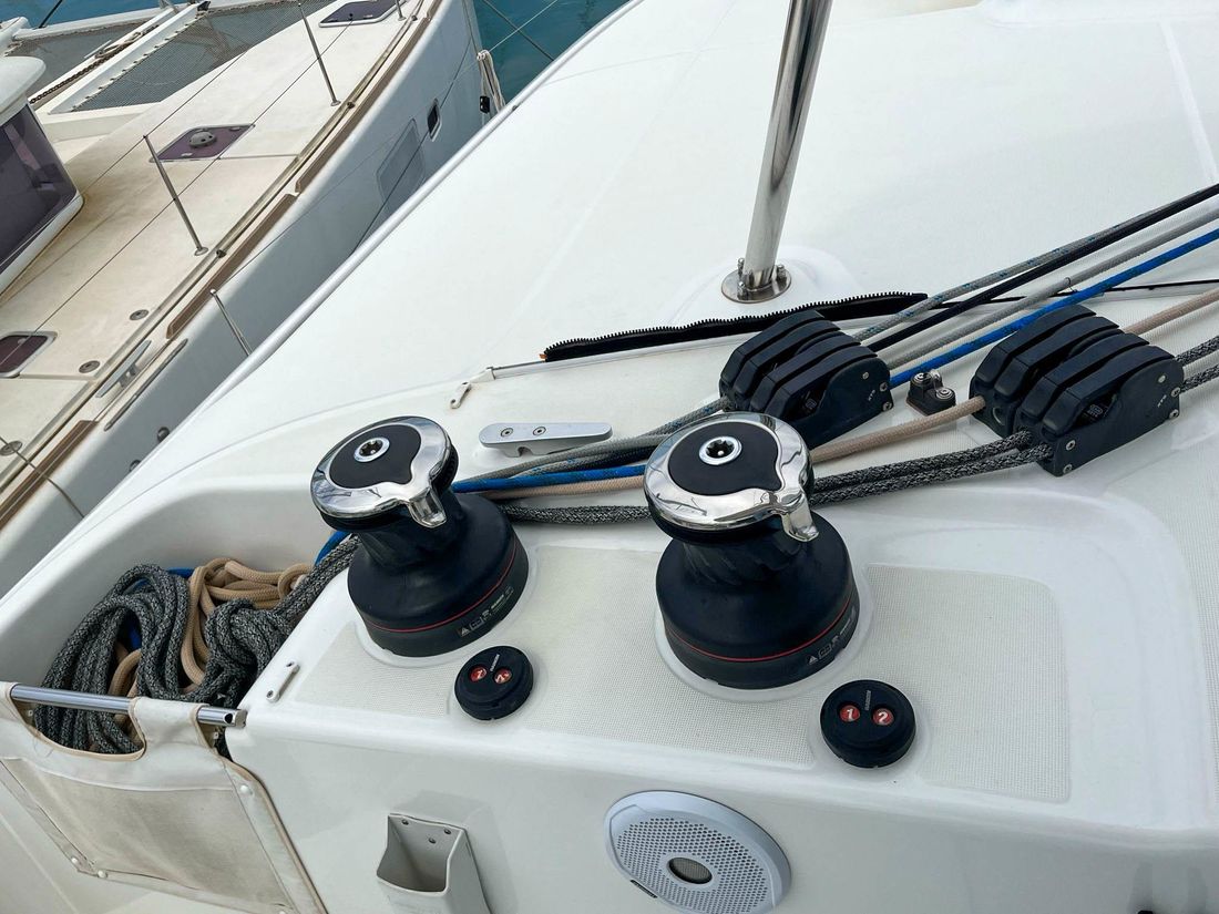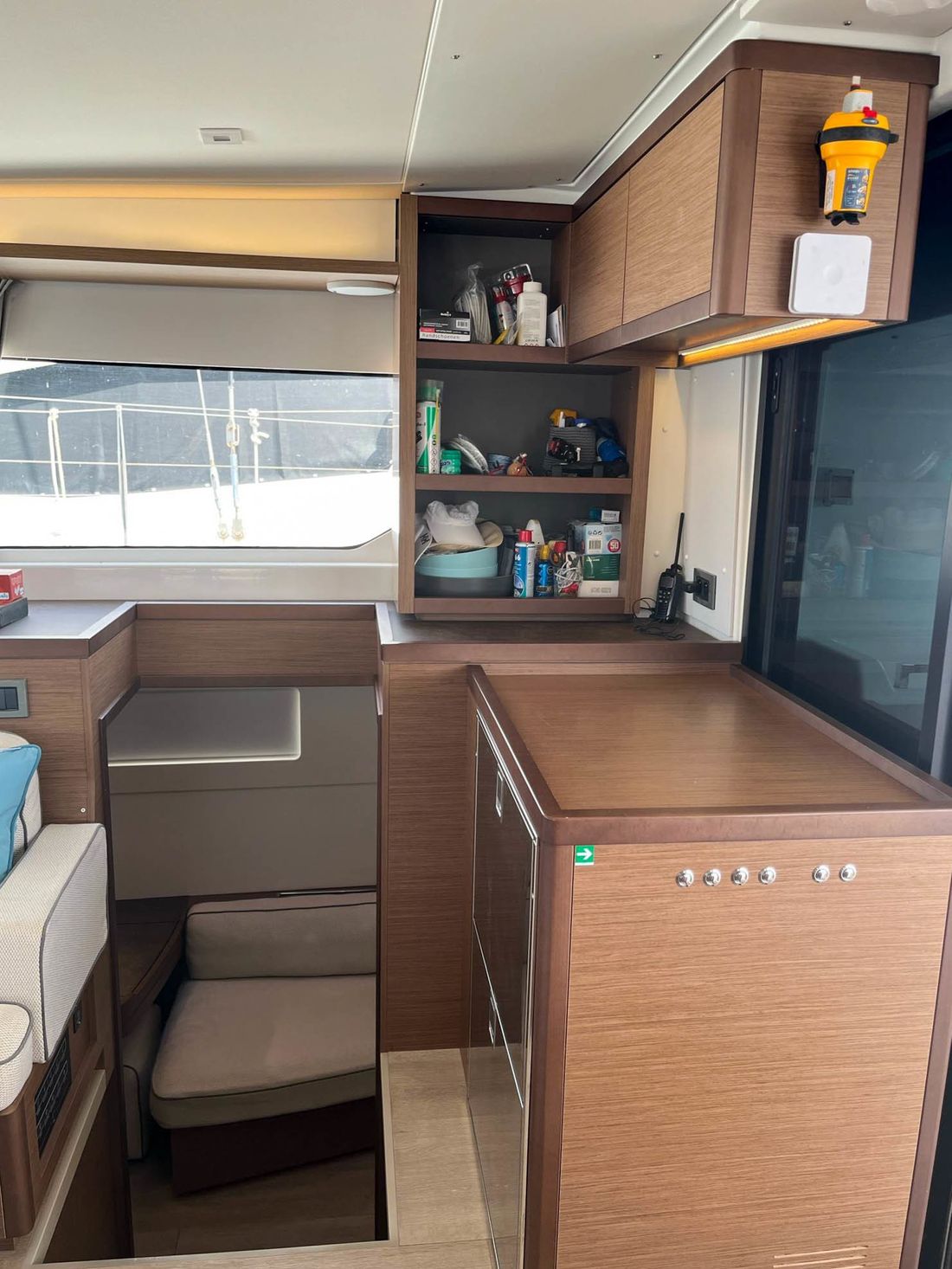LAGOON 46 OWNERS VERSION, FULLY EQUIPPED - LIKE NEW! VERSION 3 CABINS, 3 HEADS ELECTRICAL Version 220 V 50 Hz Interior wood in Alpi Walnut with Asburgo floor ELEGANCE LINE - ALPI WALNUT Fabric headlining, Bed valance in fabric, Leather & s/steel accessories at bedhead, Leather and s/steel storage at bedhead, Bedhead in fabric, Leather finishing in bookshelf, Leather finishing on salon sides, Grey composite finishing in Galley furniture, Corian finishing in showers FOR 3-CABIN VERSION COMFORT EQUIPMENT CONFIGURATION - Alpi Walnut 1 battery charger 40Amp + 1 battery charger 60Amp 3 additional service batteries 140A + battery controller Electrical circuit 220V Deck courtesy lights in cockpits, transoms and flybridge Indirect lighting in cabins and salon USB sockets in salon and cabins Extra fridge 90L/ freezer 65L at starboard (drawers) S/steel dinghy hoist system & manual winch Electrical manoeuvre winch 50.2 STEA Deck wash pump sea water / fresh water Sea water electrical pump, with dedicated tap Freshwater dock inlet Owner's head: Helm seat - dark grey Port hole and window in aft cabins with blind Pulpits with wooden seats Fusion RA70N + 6 loudspeakers in salon, cockpit and fly Navigation pack B&G 2020 INTERIOR UPHOLSTERY (salon & settees)GRAND COMFORT MARBLE ADDITIONAL GRAND COMFORT MARBLE STOOL AFT COCKPIT CUSHIONS FORWARD COCKPIT CUSHIONS SUNBATH CUSHIONS WITH LIFTING BACKREST FOR FLYBRIDGE LAZY BAG FOR STANDARD ALUMINIUM BOOM ? GRAPHITE SAILS NEW UPGRADED nORTH SAIL SAILS UPGRADERD BOOM FURLING SYSTEM CODE 0 RIG AND POLE & FURLER ALL ELECTRIC FLYBRIDGE WINCHES IN LIEU OF STANDARD + FLATWINDER FOR MAINSAIL TRAVELLER EXTRA FOR DACRON SQUARE TOP MAINSAIL 4 UNDER WATER SPOT LIGHTS FOLDING CARBON GANGPLANK 2,60m / 8,53ft WITH COVER + 2 SOCKETS ICE MAKER 220V IN COCKPIT TENDERLIFT PLATFORM WITH FOLDING WINGS SINK IN THE COCKPIT - ALPI WALNUT LARGE FOLDABLE TEAK TABLE WITH COVER ? GRAPHITE EXTRA FOR SLIDING COCKPIT BENCH 12V COCKPIT FRIDGE 80L / 21US Gal COCKPIT SIDES & AFT SUN CANVAS - GRAPHITE SIDES AROUND AFT COCKPIT WITH WINDOWS ? GRAPHITE FLYBRIDGE COMPOSITE BIMINI WITH WINDSCREEN WINDLASS REMOTE CONTROL AT HELM STATION WITH CHAIN COUNTER HELM STATION COVER ? GRAPHITE SIDES AROUND COMPOSITE BIMINI WITH WINDOWS ? GRAPHITE ENGINES upgrade from 2 x 45 HP to 2 x 57 HP (Yanmar 4JH57) ELECTRONIC ENGINE THROTTLES AT HELM STATION - YANMAR 4JH57 PAIR OF 3-BLADES FOLDING PROPELLERS FOR YANMAR 4JH57 ONAN GENSET 11Kva 220V / 50Hz + COCOON AGM DUAL BATTERIES IN LIEU OF ACID BATTERIES INVERTER 12 / 220V - 2000VA WATERMAKER 100L (26US Gal)/H 12/220V QUIET FLUSH ELECTRIC TOILETS FOR 3-CABIN VERSION DOUBLE BERTH IN SALOON SMART SHARK LARGE SLIDING FORWARD ROOF WINDOW FANS IN SALON AND CABINS MICROWAVE OVEN WITH GRILL 220V DISH-WASHER 220V (6 crockery set) EXTRA FOR FORCE 10 STAINLESS STEEL OVEN EXTRA FOR FORCE 10 4 BURNER COOCKING TABLE ROLLER BLINDS (cabins) FOR 3-CABIN VERSION UNDER BED SLATS, FOR 3-CABIN VERSION REVERSE CYCLE CRUISAIR AIR CONDITIONING 220 V ZEUS 3 16" DISPLAY AT HELM STATION WITH POD ZEUS 3 12" DISPLAY AT NAV. STATION WITH LEATHER AUTOPILOT REMOTE B&G (Essential Equipment compulsory) 2 B&G CAMERAS UNDER FLYBRIDGE AIS 500 B&G TRANSCEIVER WITH ANTENNA COUPLING RADAR B&G 20G (display and VHF compulsory) VHF B&G V90S WIRED SINGLE HANDSET 2nd H50 WIRELESS HANDSET FOR VHF V90S READY TO SAIL - CHIC AND CHILL IN (Classic) READY TO SAIL - CHIC AND CHILL OUT (Classic) ENGLISH OWNER'S MANUAL LAUNCHED, RIGGED (4 dock lines, 6 fenders, diesel, anchor set) CODE 0 IN CZ MATERIAL LOGO BLUEFISH IN THE CODE 0 (2 SIDES) ELECTRICAL BOWTHRUSTER 24 VOLT + BATTERIES AND BATTERIE CHARGER ATLANTIC LIFERAFT IN CONTAINER 8 PERSONS (45 KG) FLEXITEEK ON BATHING PLATFORM COCKPITFLOOR AND FORWARD COCKPITFLOOR PEPWAVE BR1 MINI 4G ROUTER WITH DUAL SIM OPTION AND EXTERNAL ANTENNA'S PLUS WIFI ACCES POINT TEAK OIL TREATMENT (2x) ON THE COCKPITTABLE MANTUS 38 KG ANCHOR WITH SS SWIVEL HIGHFIELD CLASSIC 340 DeLUXE WITH HONDA BF20LRTU AND INCLUSIVE A CUSTOMIZED COVER EXTRA HANDRAILS ON TOP OF BIMINI TO GET EASY ACCESS WASHMACHINE IN THE FORWARD COMPARTMENT ON STARBOARD EXTRA PLU 220 VOLT IN OUTSIDE GALLEY EXTRA SHELF UNDER THE WASHBASIN IN THE GALLEY TRANSFORMATION OF 3 TOILETS FOR FRESH WATER FLUSHING Fresh water toilet system 12V ANCHOR CHAIN CONNECTOR GALVANIZED 6-8mm LEAD CHAIN GALVANIZED 8mm WINCH HANDLE POCKET ANCHOR FORTRESS FX37 plus STOWAWAY BAG FX37 ENGINE ROOM AUTOMATIC EXTINGUISHER ENSEMBLE AUTOMATIC EXTINGUISHER WITH CABLE FOR MANUAL UTILISATION The catamaran is ready and equipped to sail around the world and has been regularly maintained and serviced. Elektronische navigatie-instrumenten: AIS (B&G), Dieptemeter (B&G), GPS (B&G), Log (B&G), Navtex (weerschrijver), Autopiloot (B&G), Kaartplotter (B&G), Radar (B&G), Marifoon (B&G), SSB, Windmeter (B&G). Technische- en dekuitrusting: Alternator, Anker (Mantus anker - Galvanized), 7 Accu's, Acculader (100 A - 1x40 A + 1x60 A), Trailer, Buitendouche (deck), Windgenerator, Zonnepanelen, Platform (2x), Handmatige bilgepomp, Teakdek, Walaansluiting 230V, Elektrische ankerlier, Zwemtrap, Stabilisatoren, Kuiptafel, Bijboot (Highfield - 20 hp), 5 Elektrische lier, Hydraulische lier. Huishoudelijke apparatuur aan boord: Airconditioning (Reverse Cycle Cruisair Air Conditioning), Warmwater boiler, Satellietinternetverbinding, Watermaker (100 l/h), Omvormer (2000 Watt), 3 Elektrisch toilet. Veiligheidsuitrusting: Navigatiekaarten, Reddingsvesten, Signaalraketten, Reddingsboei. Vermaak: Blu-ray, Radio AM/FM, Satelliet ontvanger. Keuken & Apparatuur: Vriezer (65 l), 4 Fornuis (Gas), Koelkast (90 l). Bekleding: Bimini (Hardtop), Kuiptent, Kussens, Boothoes. Opmerkingen over accessoires: Specs > Navigatie en elektronica ? Roerstandaanwijzer: ? Specs > Tuigage ? Type tuigage: Sloep ? Boegspriet: ? ? Boegspriet type: Vast ? Verstaging: Staaldraad ? Aantal zeilen: 3 ? Meer info grootzeil: Furling boom with new upgraded North Sail ? Rolgrootzeil: ? ? Meer info rolgrootzeil: Furling