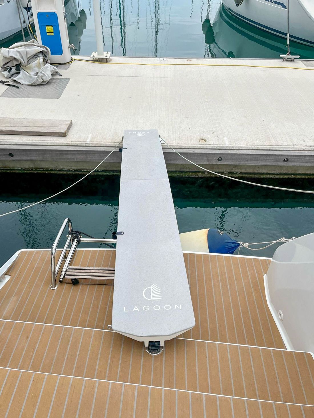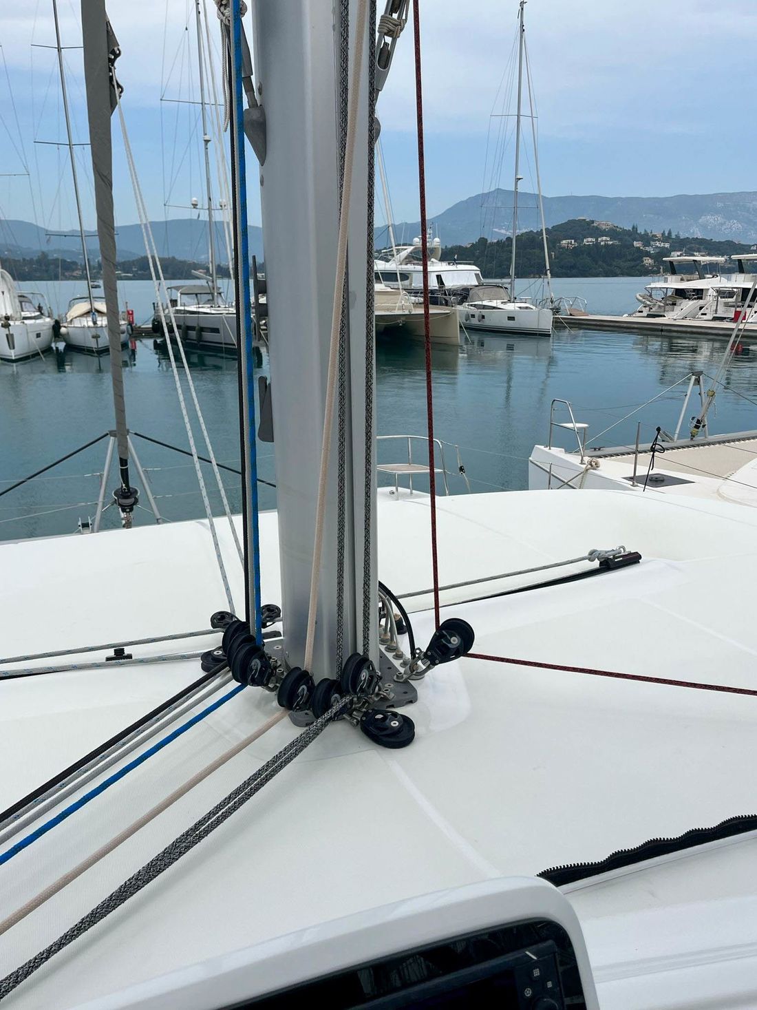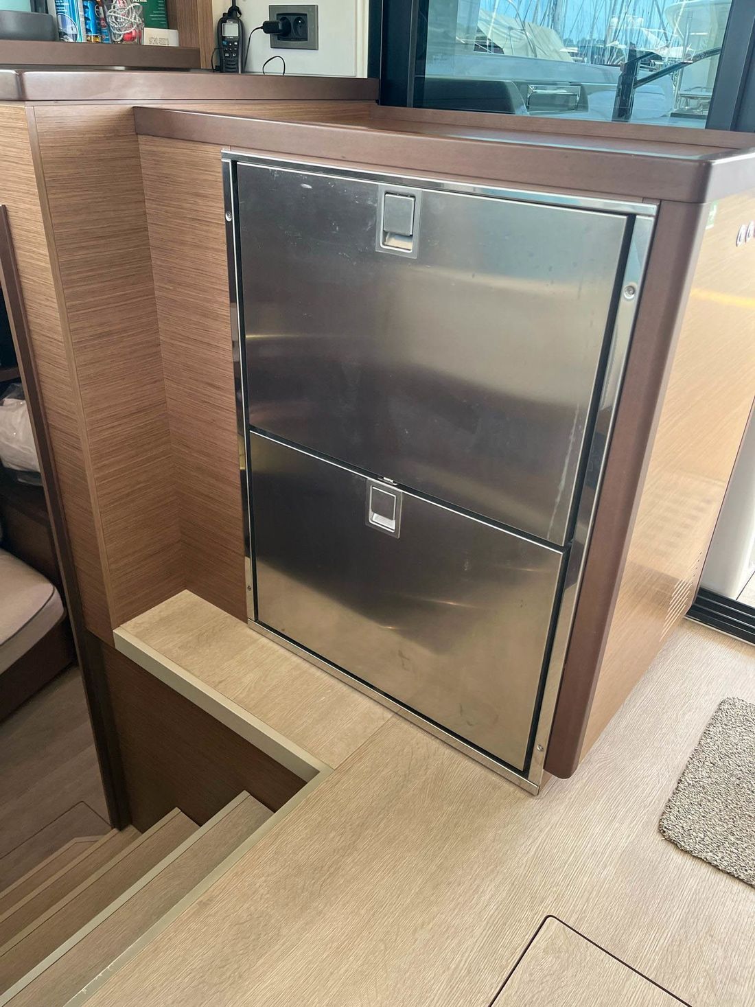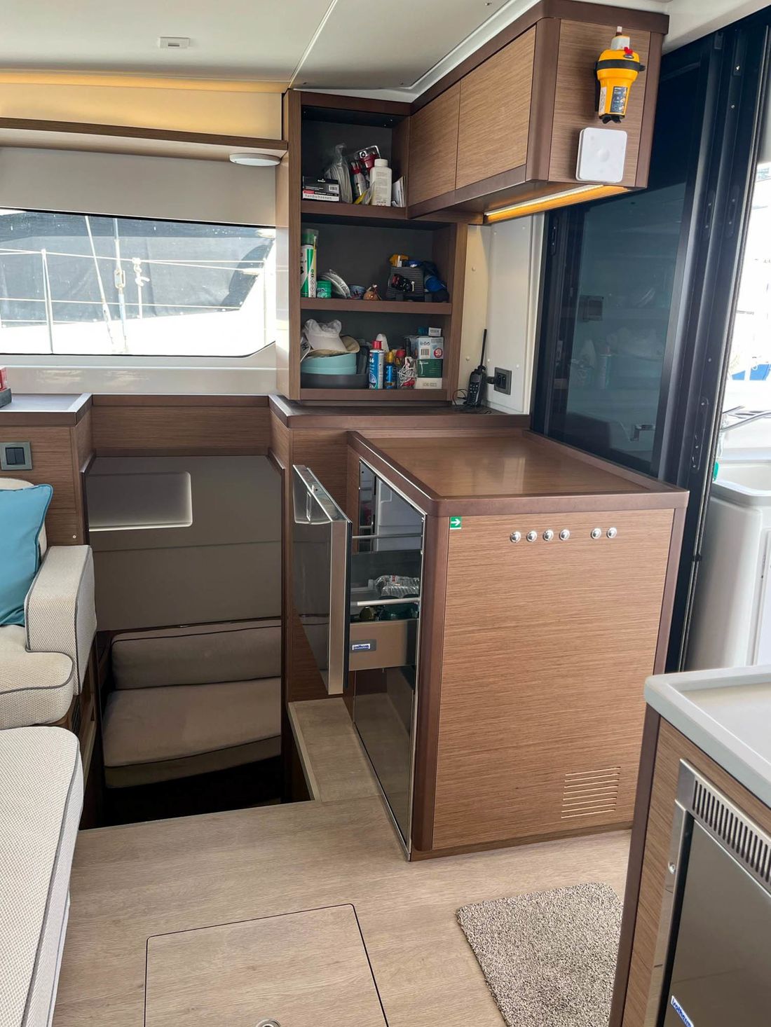 LAGOON 46 OWNERS VERSION, FULLY EQUIPPED - LIKE NEW! VERSION 3 CABINS, 3 HEADS ELECTRICAL Version 220 V 50 Hz Interior wood in Alpi Walnut with Asburgo floor ELEGANCE LINE - ALPI WALNUT Fabric headlining, Bed valance in fabric, Leather & s/steel accessories at bedhead, Leather and s/steel storage at bedhead, Bedhead in fabric, Leather finishing in bookshelf, Leather finishing on salon sides, Grey composite finishing in Galley furniture, Corian finishing in showers FOR 3-CABIN VERSION COMFORT EQUIPMENT CONFIGURATION - Alpi Walnut 1 battery charger 40Amp + 1 battery charger 60Amp 3 additional service batteries 140A + battery controller Electrical circuit 220V Deck courtesy lights in cockpits, transoms and flybridge Indirect lighting in cabins and salon USB sockets in salon and cabins Extra fridge 90L/ freezer 65L at starboard (drawers) S/steel dinghy hoist system & manual winch Electrical manoeuvre winch 50.2 STEA Deck wash pump sea water / fresh water Sea water electrical pump, with dedicated tap Freshwater dock inlet Owner's head: Helm seat - dark grey Port hole and window in aft cabins with blind Pulpits with wooden seats Fusion RA70N + 6 loudspeakers in salon, cockpit and fly Navigation pack B&G 2020 INTERIOR UPHOLSTERY (salon & settees)GRAND COMFORT MARBLE ADDITIONAL GRAND COMFORT MARBLE STOOL AFT COCKPIT CUSHIONS FORWARD COCKPIT CUSHIONS SUNBATH CUSHIONS WITH LIFTING BACKREST FOR FLYBRIDGE LAZY BAG FOR STANDARD ALUMINIUM BOOM ? GRAPHITE SAILS NEW UPGRADED nORTH SAIL SAILS UPGRADERD BOOM FURLING SYSTEM CODE 0 RIG AND POLE & FURLER ALL ELECTRIC FLYBRIDGE WINCHES IN LIEU OF STANDARD + FLATWINDER FOR MAINSAIL TRAVELLER EXTRA FOR DACRON SQUARE TOP MAINSAIL 4 UNDER WATER SPOT LIGHTS FOLDING CARBON GANGPLANK 2,60m / 8,53ft WITH COVER + 2 SOCKETS ICE MAKER 220V IN COCKPIT TENDERLIFT PLATFORM WITH FOLDING WINGS SINK IN THE COCKPIT - ALPI WALNUT LARGE FOLDABLE TEAK TABLE WITH COVER ? GRAPHITE EXTRA FOR SLIDING COCKPIT BENCH 12V COCKPIT FRIDGE 80L / 21US Gal COCKPIT SIDES & AFT SUN CANVAS - GRAPHITE SIDES AROUND AFT COCKPIT WITH WINDOWS ? GRAPHITE FLYBRIDGE COMPOSITE BIMINI WITH WINDSCREEN WINDLASS REMOTE CONTROL AT HELM STATION WITH CHAIN COUNTER HELM STATION COVER ? GRAPHITE SIDES AROUND COMPOSITE BIMINI WITH WINDOWS ? GRAPHITE ENGINES upgrade from 2 x 45 HP to 2 x 57 HP (Yanmar 4JH57) ELECTRONIC ENGINE THROTTLES AT HELM STATION - YANMAR 4JH57 PAIR OF 3-BLADES FOLDING PROPELLERS FOR YANMAR 4JH57 ONAN GENSET 11Kva 220V / 50Hz + COCOON AGM DUAL BATTERIES IN LIEU OF ACID BATTERIES INVERTER 12 / 220V - 2000VA WATERMAKER 100L (26US Gal)/H 12/220V QUIET FLUSH ELECTRIC TOILETS FOR 3-CABIN VERSION DOUBLE BERTH IN SALOON SMART SHARK LARGE SLIDING FORWARD ROOF WINDOW FANS IN SALON AND CABINS MICROWAVE OVEN WITH GRILL 220V DISH-WASHER 220V (6 crockery set) EXTRA FOR FORCE 10 STAINLESS STEEL OVEN EXTRA FOR FORCE 10 4 BURNER COOCKING TABLE ROLLER BLINDS (cabins) FOR 3-CABIN VERSION UNDER BED SLATS, FOR 3-CABIN VERSION REVERSE CYCLE CRUISAIR AIR CONDITIONING 220 V ZEUS 3 16" DISPLAY AT HELM STATION WITH POD ZEUS 3 12" DISPLAY AT NAV. STATION WITH LEATHER AUTOPILOT REMOTE B&G (Essential Equipment compulsory) 2 B&G CAMERAS UNDER FLYBRIDGE AIS 500 B&G TRANSCEIVER WITH ANTENNA COUPLING RADAR B&G 20G (display and VHF compulsory) VHF B&G V90S WIRED SINGLE HANDSET 2nd H50 WIRELESS HANDSET FOR VHF V90S READY TO SAIL - CHIC AND CHILL IN (Classic) READY TO SAIL - CHIC AND CHILL OUT (Classic) ENGLISH OWNER'S MANUAL LAUNCHED, RIGGED (4 dock lines, 6 fenders, diesel, anchor set) CODE 0 IN CZ MATERIAL LOGO BLUEFISH IN THE CODE 0 (2 SIDES) ELECTRICAL BOWTHRUSTER 24 VOLT + BATTERIES AND BATTERIE CHARGER ATLANTIC LIFERAFT IN CONTAINER 8 PERSONS (45 KG) FLEXITEEK ON BATHING PLATFORM COCKPITFLOOR AND FORWARD COCKPITFLOOR PEPWAVE BR1 MINI 4G ROUTER WITH DUAL SIM OPTION AND EXTERNAL ANTENNA'S PLUS WIFI ACCES POINT TEAK OIL TREATMENT (2x) ON THE COCKPITTABLE MANTUS 38 KG ANCHOR WITH SS SWIVEL HIGHFIELD CLASSIC 340 DeLUXE WITH HONDA BF20LRTU AND INCLUSIVE A CUSTOMIZED COVER EXTRA HANDRAILS ON TOP OF BIMINI TO GET EASY ACCESS WASHMACHINE IN THE FORWARD COMPARTMENT ON STARBOARD EXTRA PLU 220 VOLT IN OUTSIDE GALLEY EXTRA SHELF UNDER THE WASHBASIN IN THE GALLEY TRANSFORMATION OF 3 TOILETS FOR FRESH WATER FLUSHING Fresh water toilet system 12V ANCHOR CHAIN CONNECTOR GALVANIZED 6-8mm LEAD CHAIN GALVANIZED 8mm WINCH HANDLE POCKET ANCHOR FORTRESS FX37 plus STOWAWAY BAG FX37 ENGINE ROOM AUTOMATIC EXTINGUISHER ENSEMBLE AUTOMATIC EXTINGUISHER WITH CABLE FOR MANUAL UTILISATION The catamaran is ready and equipped to sail around the world and has been regularly maintained and serviced. Elektronische navigatie-instrumenten: AIS (B&G), Dieptemeter (B&G), GPS (B&G), Log (B&G), Navtex (weerschrijver), Autopiloot (B&G), Kaartplotter (B&G), Radar (B&G), Marifoon (B&G), SSB, Windmeter (B&G). Technische- en dekuitrusting: Alternator, Anker (Mantus anker - Galvanized), 7 Accu's, Acculader (100 A - 1x40 A + 1x60 A), Trailer, Buitendouche (deck), Windgenerator, Zonnepanelen, Platform (2x), Handmatige bilgepomp, Teakdek, Walaansluiting 230V, Elektrische ankerlier, Zwemtrap, Stabilisatoren, Kuiptafel, Bijboot (Highfield - 20 hp), 5 Elektrische lier, Hydraulische lier. Huishoudelijke apparatuur aan boord: Airconditioning (Reverse Cycle Cruisair Air Conditioning), Warmwater boiler, Satellietinternetverbinding, Watermaker (100 l/h), Omvormer (2000 Watt), 3 Elektrisch toilet. Veiligheidsuitrusting: Navigatiekaarten, Reddingsvesten, Signaalraketten, Reddingsboei. Vermaak: Blu-ray, Radio AM/FM, Satelliet ontvanger. Keuken & Apparatuur: Vriezer (65 l), 4 Fornuis (Gas), Koelkast (90 l). Bekleding: Bimini (Hardtop), Kuiptent, Kussens, Boothoes. Opmerkingen over accessoires: Specs > Navigatie en elektronica ? Roerstandaanwijzer: ? Specs > Tuigage ? Type tuigage: Sloep ? Boegspriet: ? ? Boegspriet type: Vast ? Verstaging: Staaldraad ? Aantal zeilen: 3 ? Meer info grootzeil: Furling boom with new upgraded North Sail ? Rolgrootzeil: ? ? Meer info rolgrootzeil: Furling
