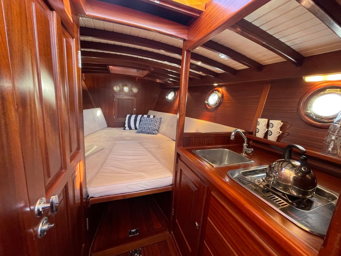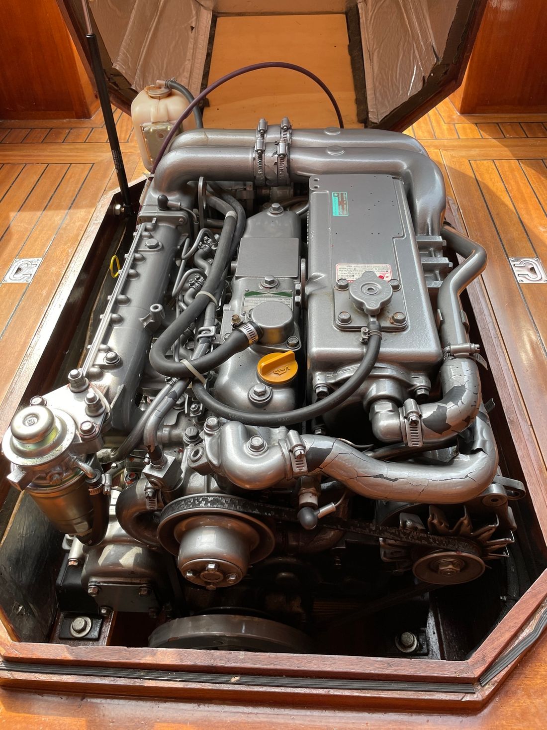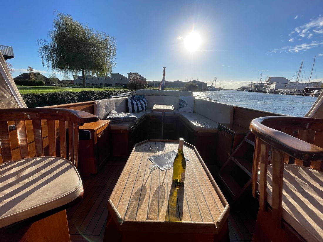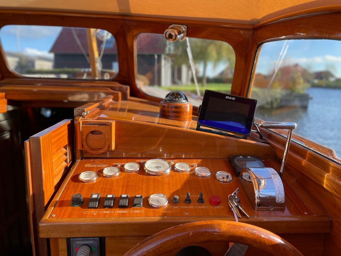Motorisatie Aantal identieke motoren 1 Start type elektrisch Hoofdmotor Type binnenboord Merk Yanmar Bouwjaar 2001 Aantal cilinders 4 Vermogen 100 pk Urenteller Brandstof diesel Aandrijving Overbrenging schroefas Voortstuwing schroef Koeling indirect Tank Brandstoftank aantal Aantal 1 Totale inhoud brandstoftank(s) 120 liter Prestaties Max snelheid 12 knopen Meetinstrumenten motor Brandstoftankmeter Toerenteller Oliedrukmeter Temperatuurmeter Boeg- en hekschroef Boegschroef elektrisch Elektriciteit Accu Aantal 2 Acculader Omvormer Walstroom Walstroomkabel 12V -