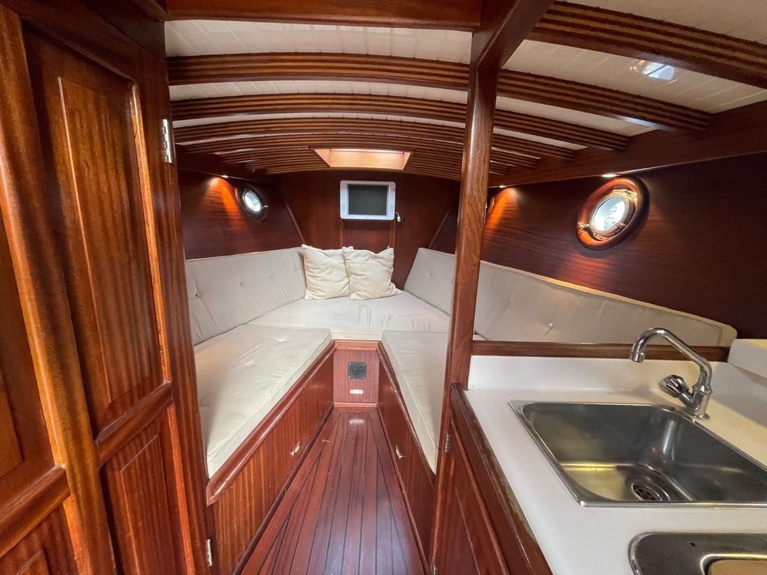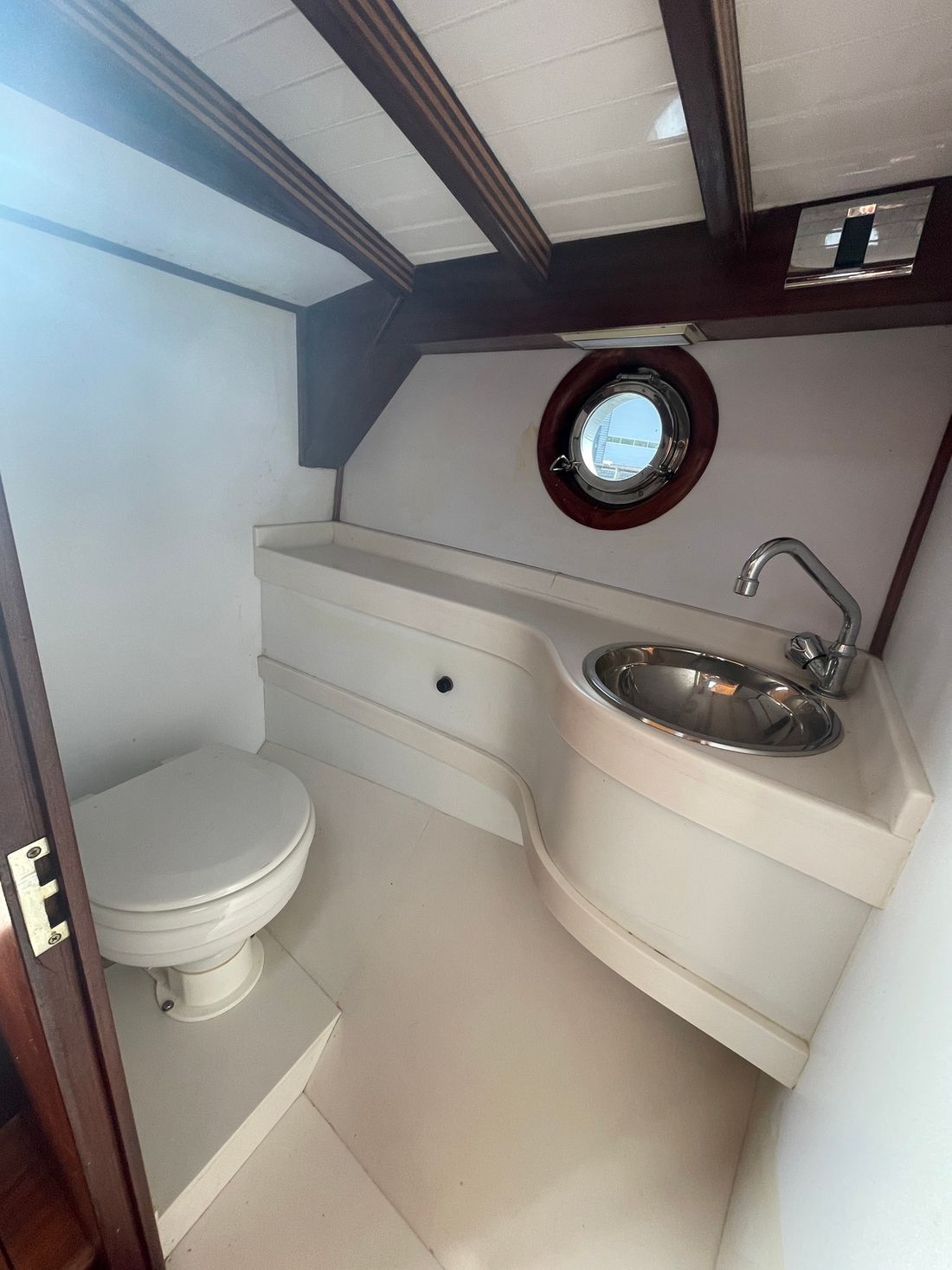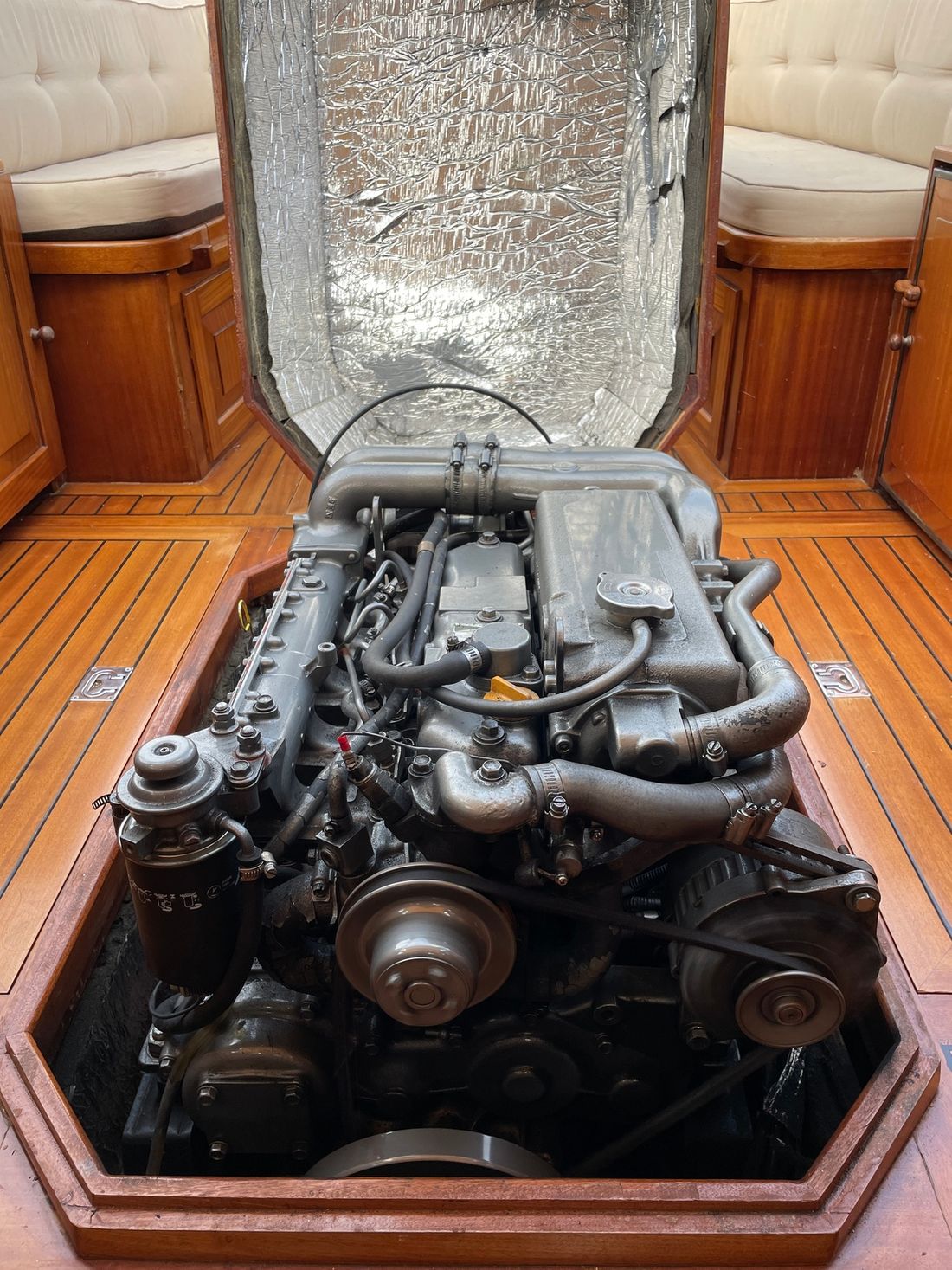 Motorisatie Aantal identieke motoren 1 Start type elektrisch Hoofdmotor Type binnenboord Merk Yanmar Model 4JH3-HTE Serienummer E20476 Bouwjaar 2000 Aantal cilinders 4 Vermogen 100 pk Urenteller Brandstof diesel Aandrijving Overbrenging schroefas Voortstuwing schroef Koeling indirect Tank Brandstoftank aantal Aantal 1 Totale inhoud brandstoftank(s) 120 liter Prestaties Max snelheid 12 knopen Meetinstrumenten motor Brandstoftankmeter Merk brandstoftankmeter VDO Toerenteller Merk toerenteller VDO Oliedrukmeter Merk oliedrukmeter VDO Temperatuurmeter Merk temperatuurmeter VDO Elektriciteit Accu Aantal 2 Acculader Walstroom Walstroomkabel 12V -