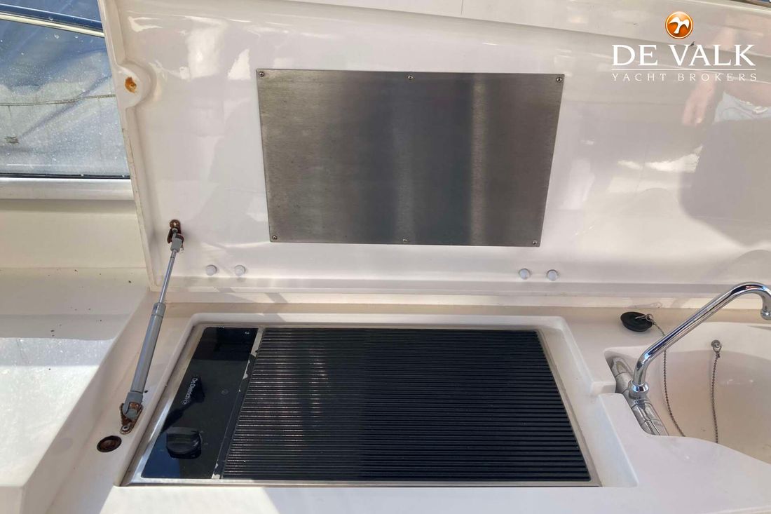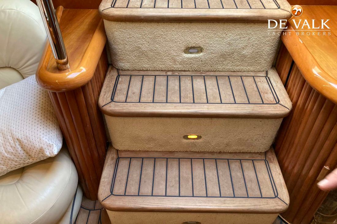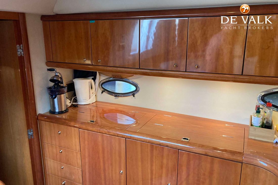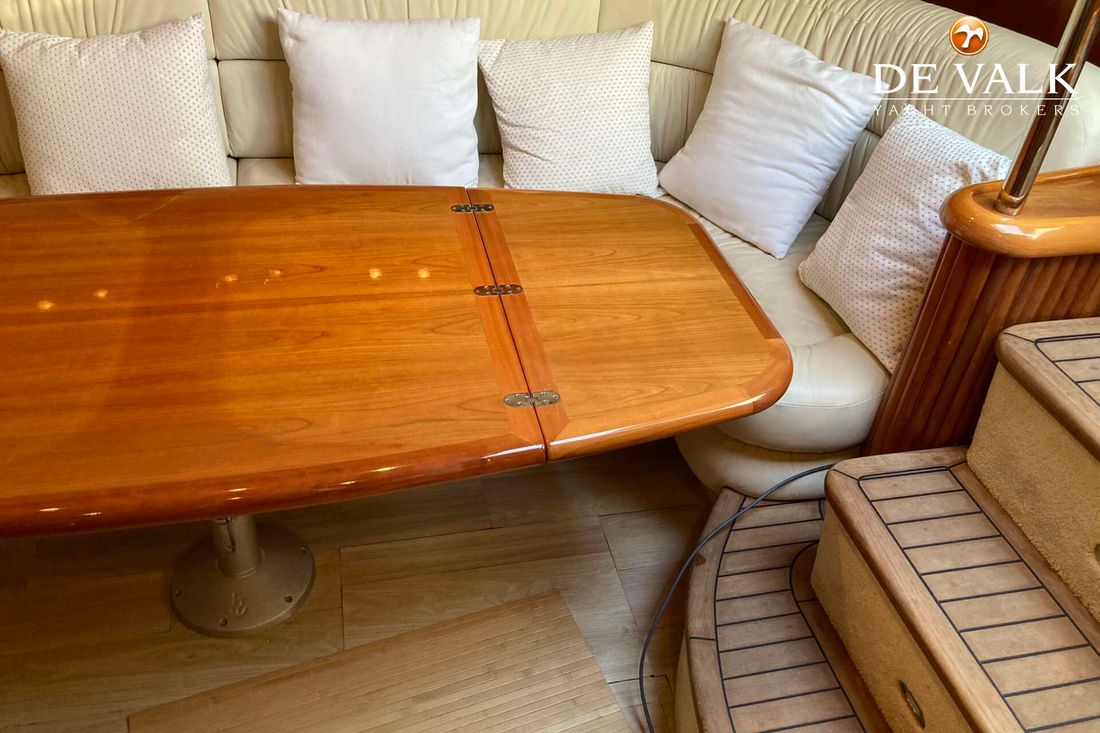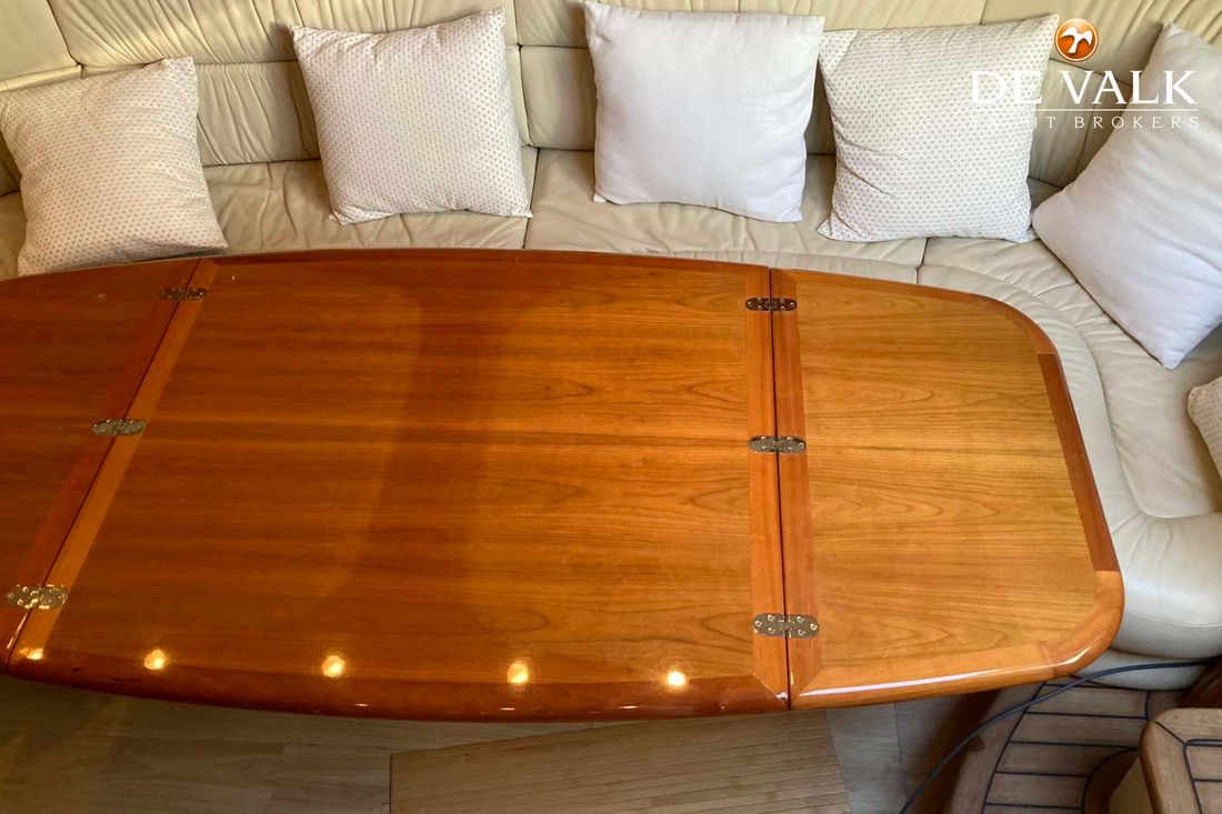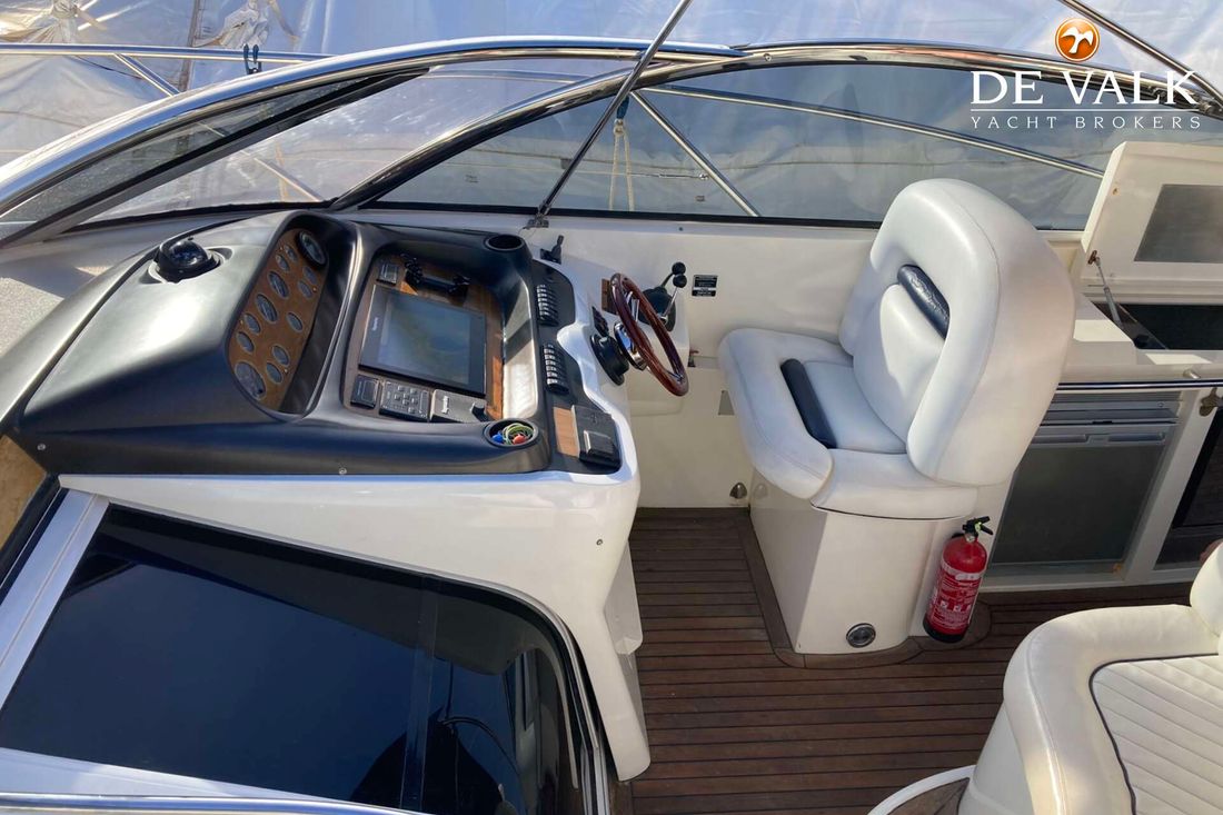 Enjoy the summer breeze with this Sunseeker Camarque 50 (2000). This first-class sports cruiser rides naturally level and has a very soft ride offshore. The hardtop with sunroof lets you cruise for views in fair weather and foul and change the ambience from dayboat to champagne cruiser at the flick of switch. The 50-footer has other big-boat features: a garage for the jet-powered RIB, a superyacht radar arch, and an amenities center along the entire starboard side of the cockpit.