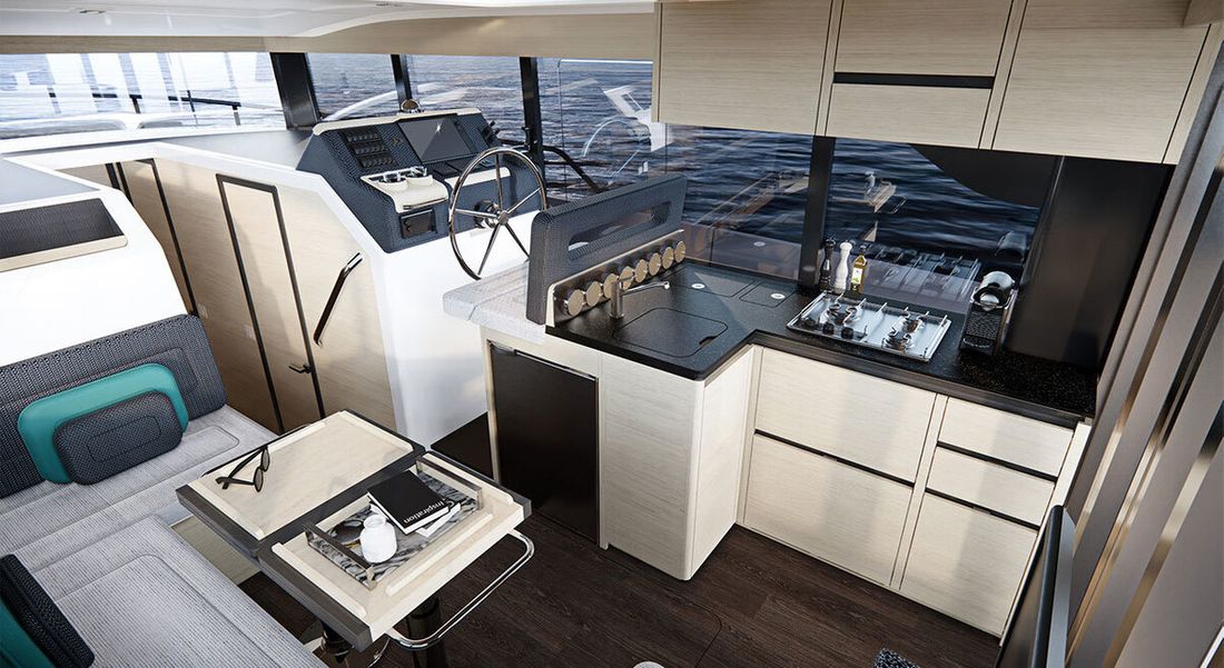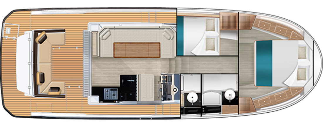 Ruimtes Salon Opmerkingen Stahoogte 195 cm Eethoek Machinekamer Hutten 2 Opmerkingen Hutten Optioneel 1,2 of 3 cabine Salon Aankleding Type interieur Modern, licht Opmerkingen Type interieur Optioneel: 'Sand', 'Navy' of 'Carbon' Kleur stoffering grijs Matrassen Kussens Gordijnen Water Watertank & materiaal Inhoud 380 liter Watertankmeter Inhoud 170 liter Vuilwatertank & materiaal Opmerkingen Vuilwatertank & materiaal Optioneel extra grijswatertank van 170L Vuilwatertankmeter Vuilwatertank afvoerpomp Watersysteem Pressure system Warm water buitendouche Sanitair Aantal douches 1 Toiletten 2 Elektrisch Entertainment Radio/CD-speler Keuken Kooktoestel & brandstof Opmerkingen Kooktoestel & brandstof Keramisch 2 pits ook mogelijk Aantal 3 Kookbrandstof gas Oven Opmerkingen Oven Optioneel Magnetron Opmerkingen Magnetron Optioneel Koelkast & voeding Opmerkingen Koelkast & voeding Optioneel extra 30L koelkast binnen of op de Flybridge Inhoud Koelkast 130 liter Vriezer Klimaatregeling kachel Opmerkingen Verwarming Webasto kachel (niet beschikbaar bij elektrische uitvoering!) Airconditioning Opmerkingen Airconditioning Optioneel met uitgangen in de salon en cabines -