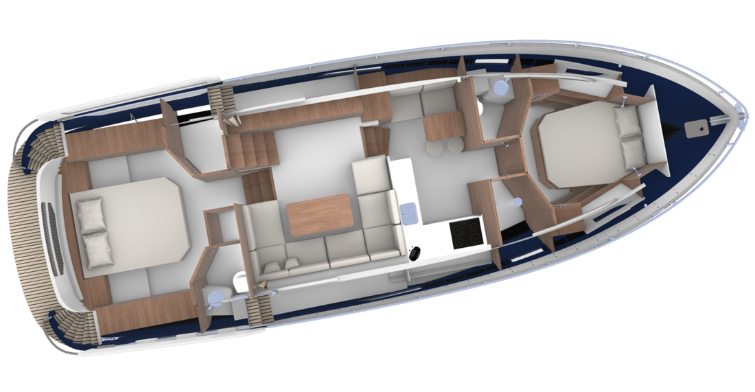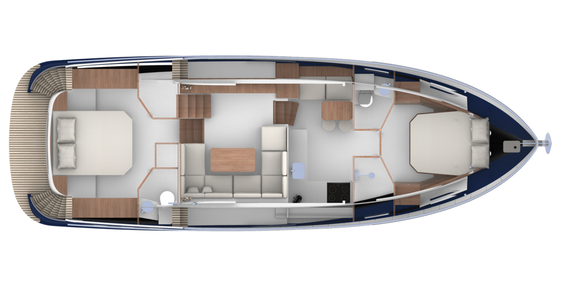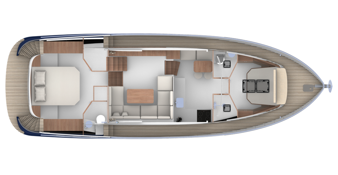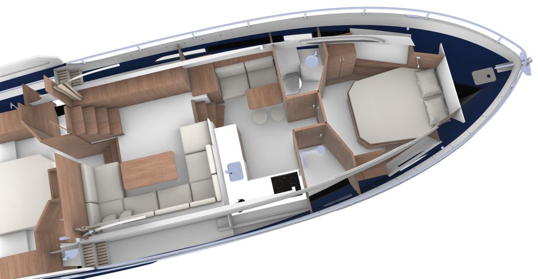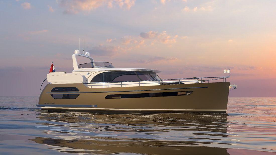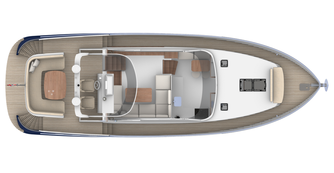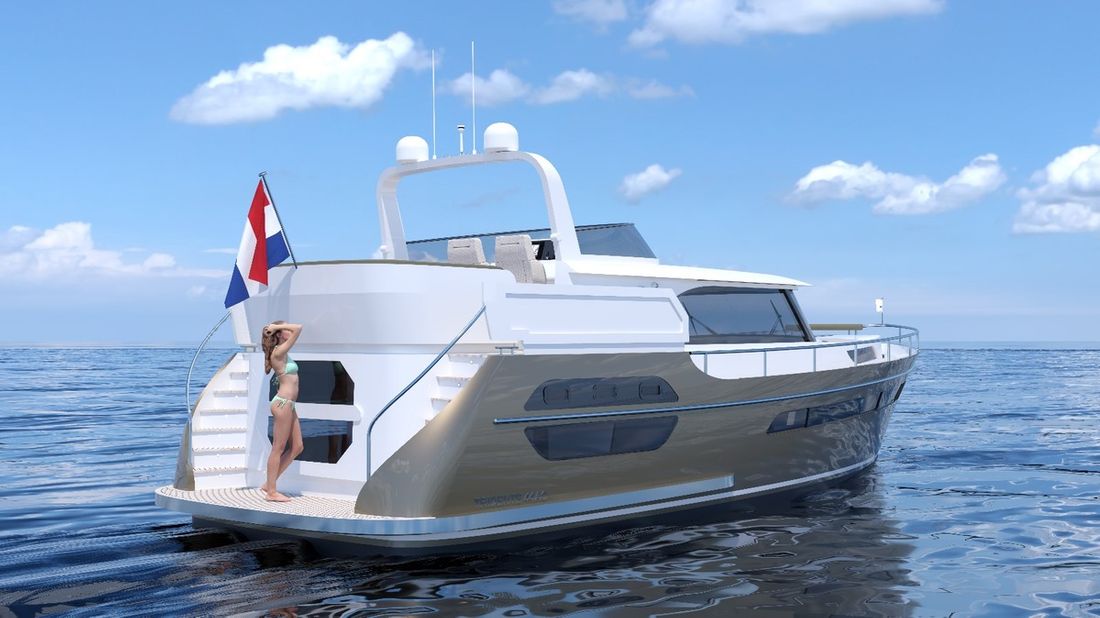 Nieuw geleverd Ontwerper Babro Yachting Werf Babro Yachting, Hendrik Bulthuisweg 14 A, 8606 KB, Sneek CE B Opmerkingen CE Ce categorie B. CE max gewicht 21000 kg CE max motor 250 pk CE aantal opvarenden 6 CE-normering B Romp, dek en opbouw Rompvorm multiknik Opmerkingen Rompvorm Multiknikspant rompvorm met zeer goede vaareigenschappen Achterkajuit (AK) Opbouw vorm, materiaal Staal, een opbouw met veel rondingen en een dak die 3 demencionaal gebogen is Ramen Structureel beglazing. Afmetingen en gewichten Opmerkingen Doorvaarthoogte Doorvaarthoogte rond 2.95 meter. Met alles afgebouwd Diepgang maximaal 125 cm Diepgang minimaal 125 cm Lengte waterlijn 1260 cm Waterverplaatsing 21 ton