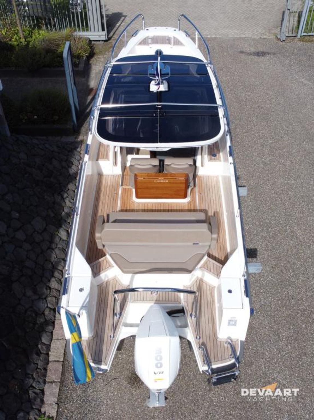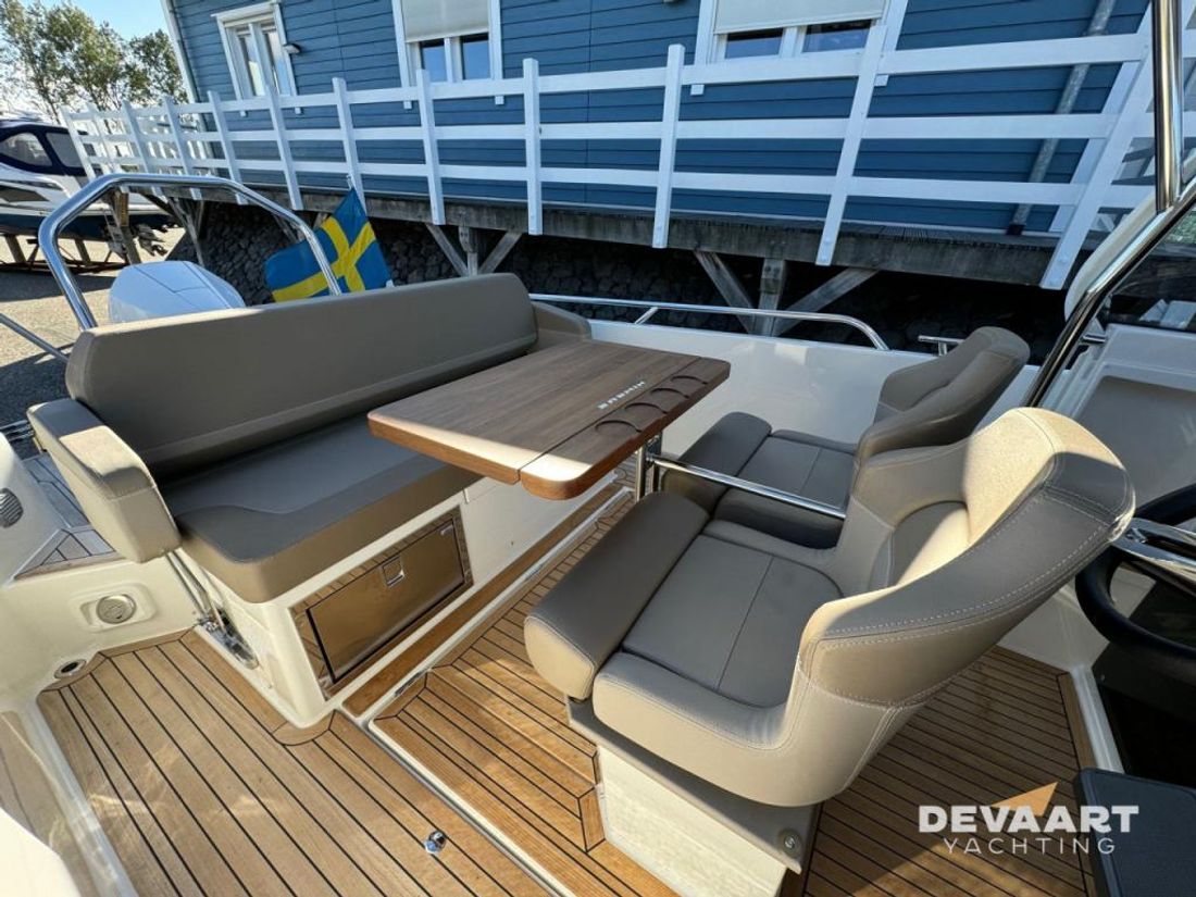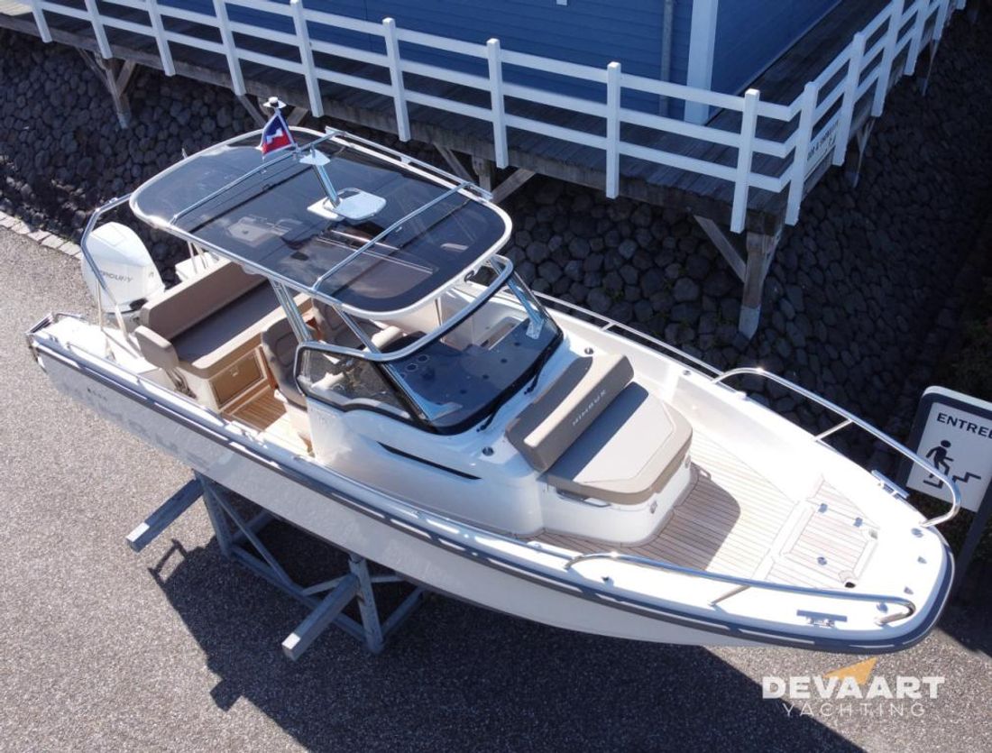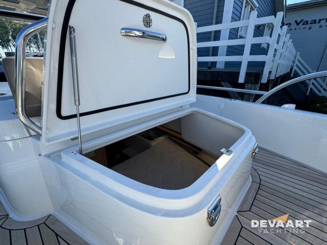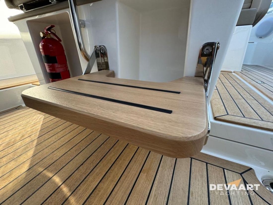 Nimbus T8 T-Top met Mercury Verado V8 300pk , stoffering BEIGE, compleet uitgerust incl. warm water, verwarming, plotter, zonnescherm en zonnebed voordek, waterski pole, traileroog, dakdragers en teakdek. Met deze sportieve Nimbus T8 ben u er helemaal klaar voor om er op uit te trekken. Of het nu is om snel naar een bestemming te varen, een lange afstand over groot water /zee te overbruggen of heerlijk even te gaan zwemmen/watersporten, deze Nimbus T8 is er voor uitgerust. Met zijn gestepte romp vaart hij vlot en comfortabel. Alle passagiers kunnen zittend in de vaarrichting meekijken en het windscherm van de cockpit geeft voldoende beschutting tegen wind, waarbij u met de zijdelen de T-Top ook nog kunt afsluiten. Met de flexibele dekindeling van de zitplaatsen maakt u van de loungezit in een handomdraai een zonnebed. Door de vrije rondloopt loopt u gemakkelijk naar het zonnebed en de zitbank op het voordek. De Nimbus T8 is trailerbaar. Inruil bespreekbaar Meer informatie over dit motorjacht vindt u op onze website www.devaartyachting.com of bel ons op +31 (0)320 21 23 41. De Vaart Yachting is dealer van Nimbus, Sealine, Paragon en Aquador Boats. Daarnaast zijn wij specialist in pre-owned motorjachten van de Scandinavische jachtwerven en Broom Boats en een internationaal actieve jachtmakelaar. In onze showrooms vindt u een groot aanbod aan nieuwe en pre-owned motorjachten. Op www.devaartyachting.com vindt u ons actuele aanbod van nieuwe en gebruikte boten.